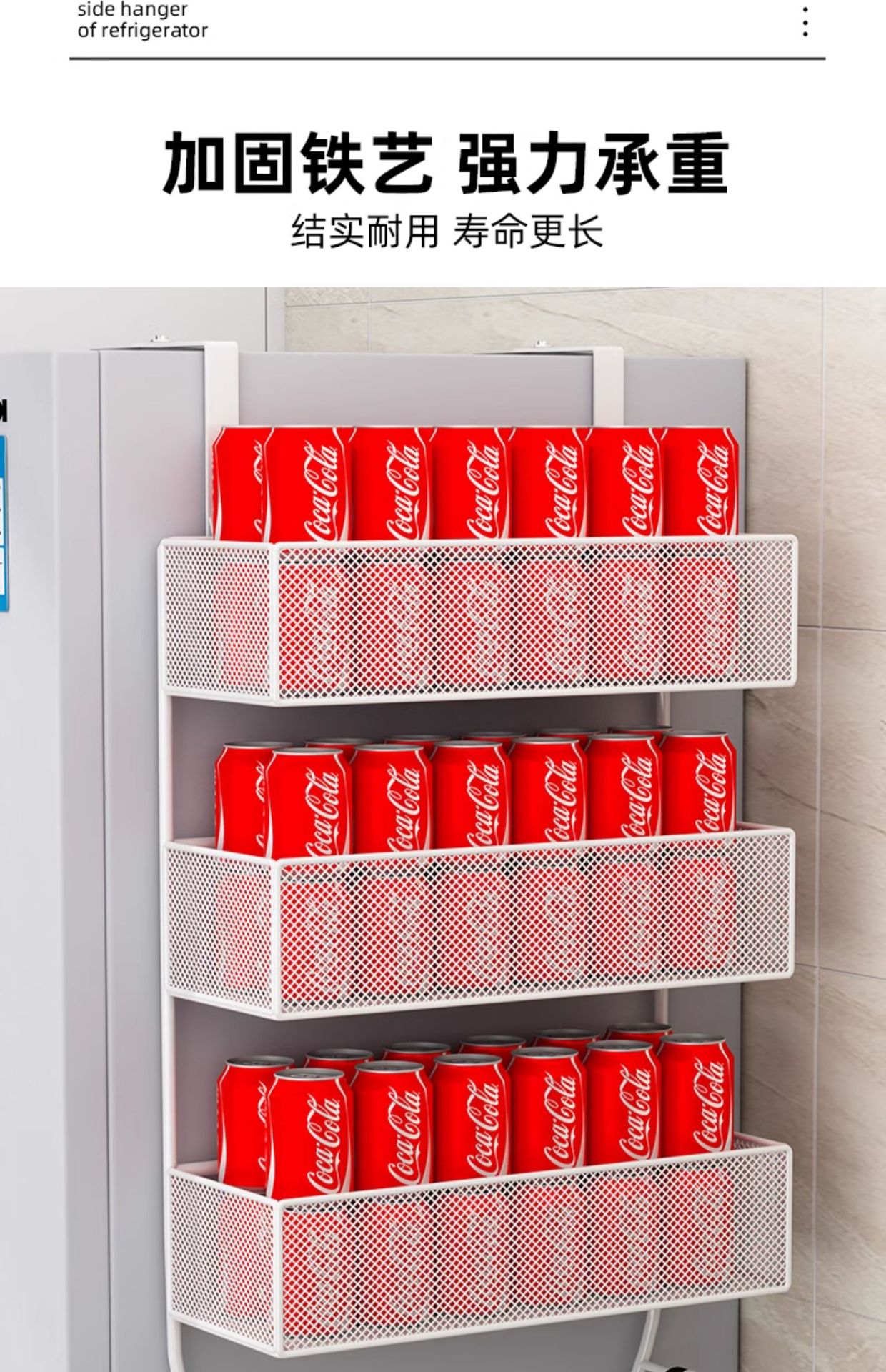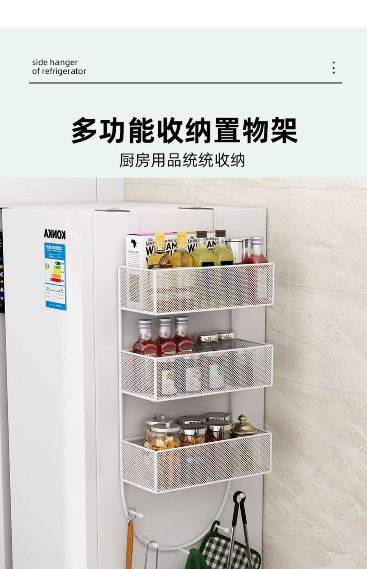 냉장고 선반 측면 수납 측면 선반 주방 용품 다층 측면 후크 측면 벽걸이 선반