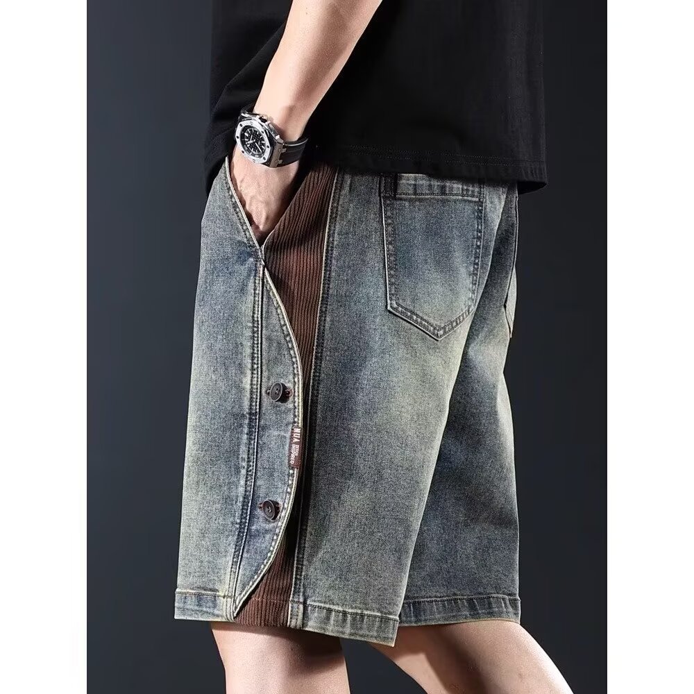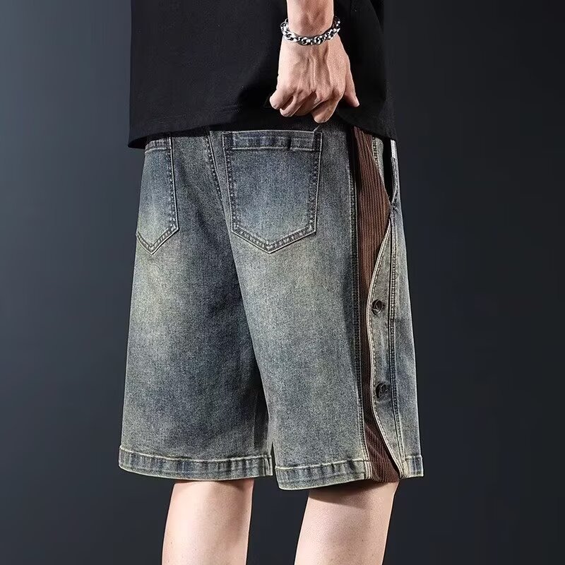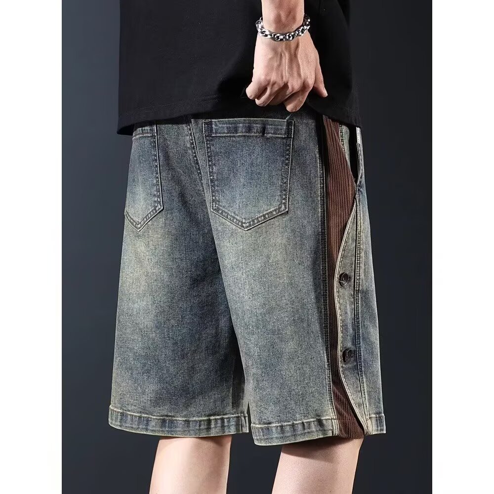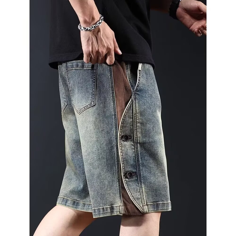 아메리칸 트렌디 브랜드 남성용 데님 반바지, 여름 루즈한 빅사이즈 워크웨어 5부 팬츠, 핸섬 슬림 스트레이트 아우터 바지스토어 가기