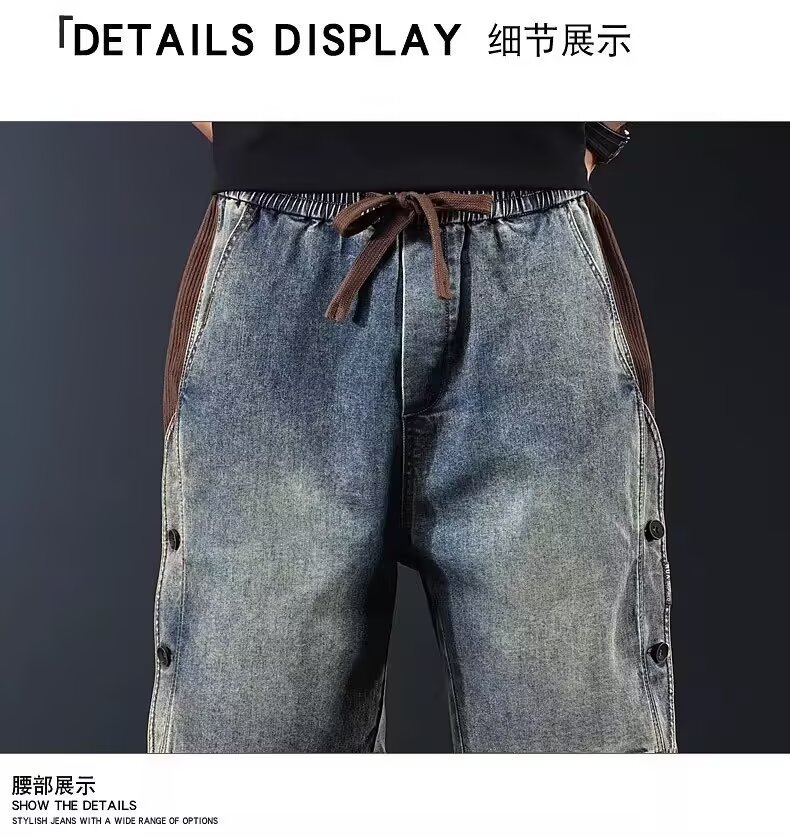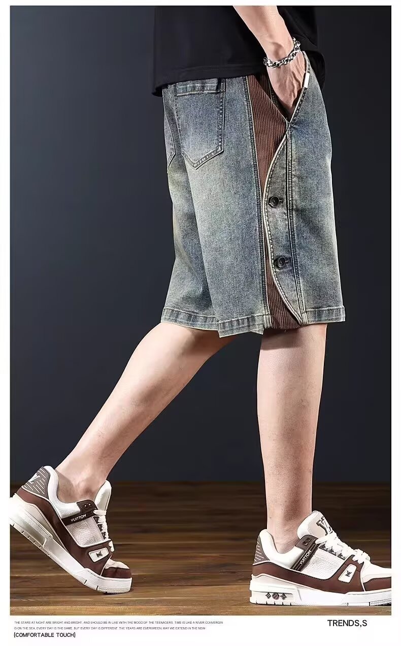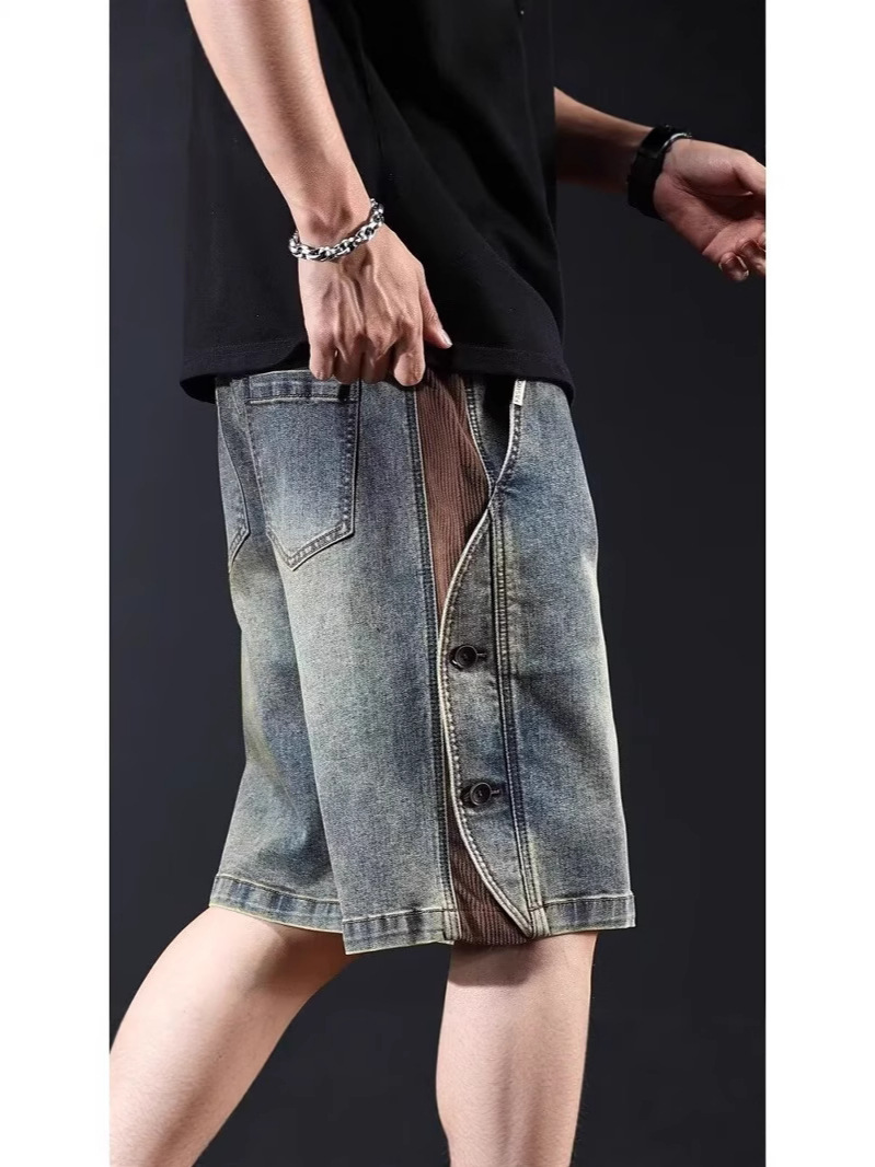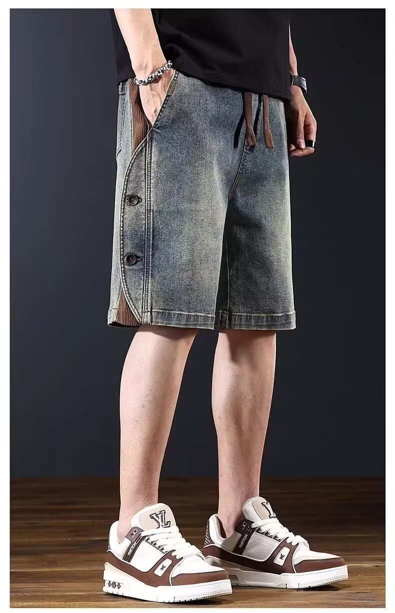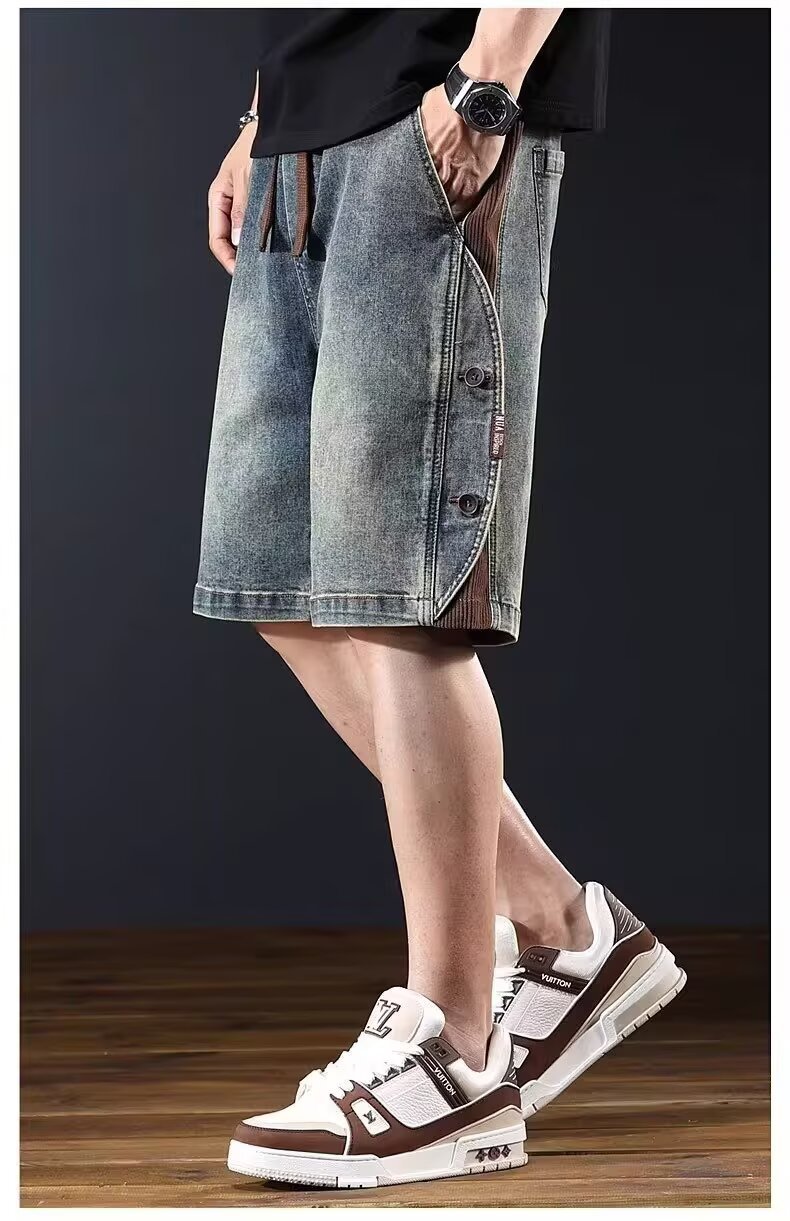 아메리칸 트렌디 브랜드 남성용 데님 반바지, 여름 루즈한 빅사이즈 워크웨어 5부 팬츠, 핸섬 슬림 스트레이트 아우터 바지스토어 가기