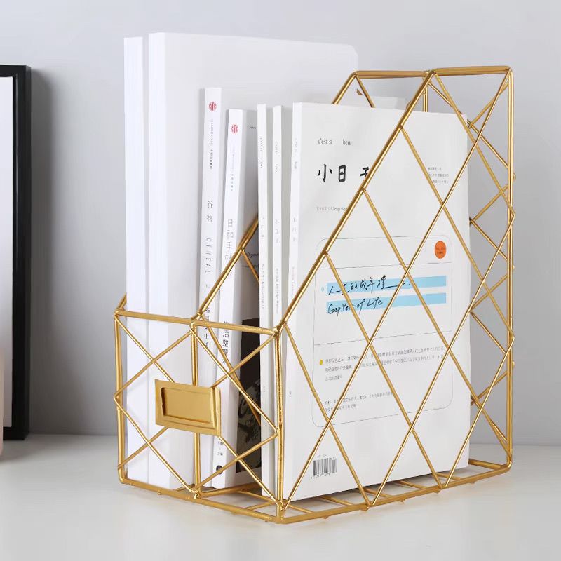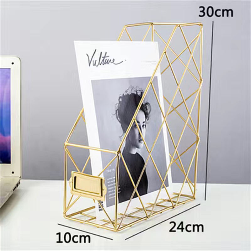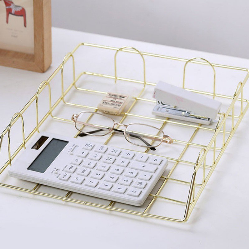 • 단층 A4 용지 파일 바구니 - 전기도금 골드 (겹쳐 쌓기 가능) ⚑