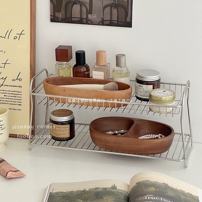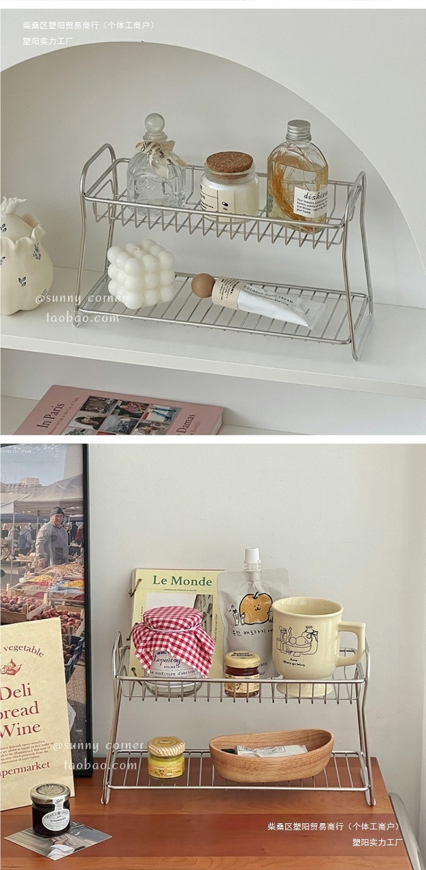 수납 선반 데스크탑 정리 금속 컵 홀더 조리대 수납 선반 더블 레이어 간단한 화장품 스테인레스 스틸 잡화스토어 가기