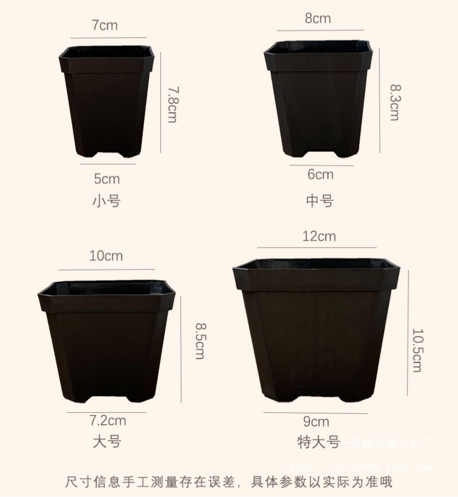 인기 판매 팔각형 두꺼운 작은 흰색 사각형 다육 화분, 매우 두꺼운 플라스틱 사각형 식물 잎 삽입 모종 화분, 큰 검은 사각형 화분스토어 가기
