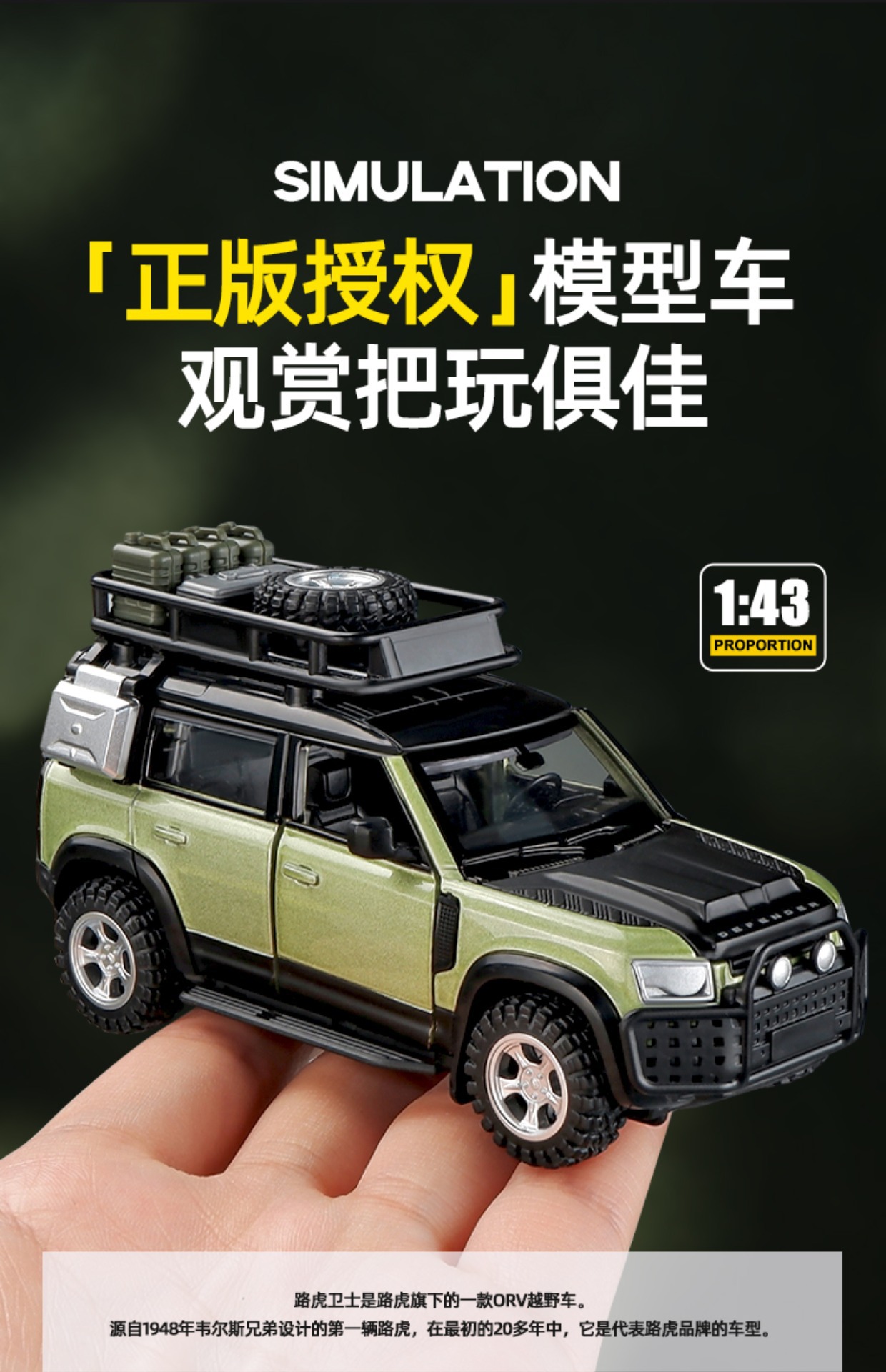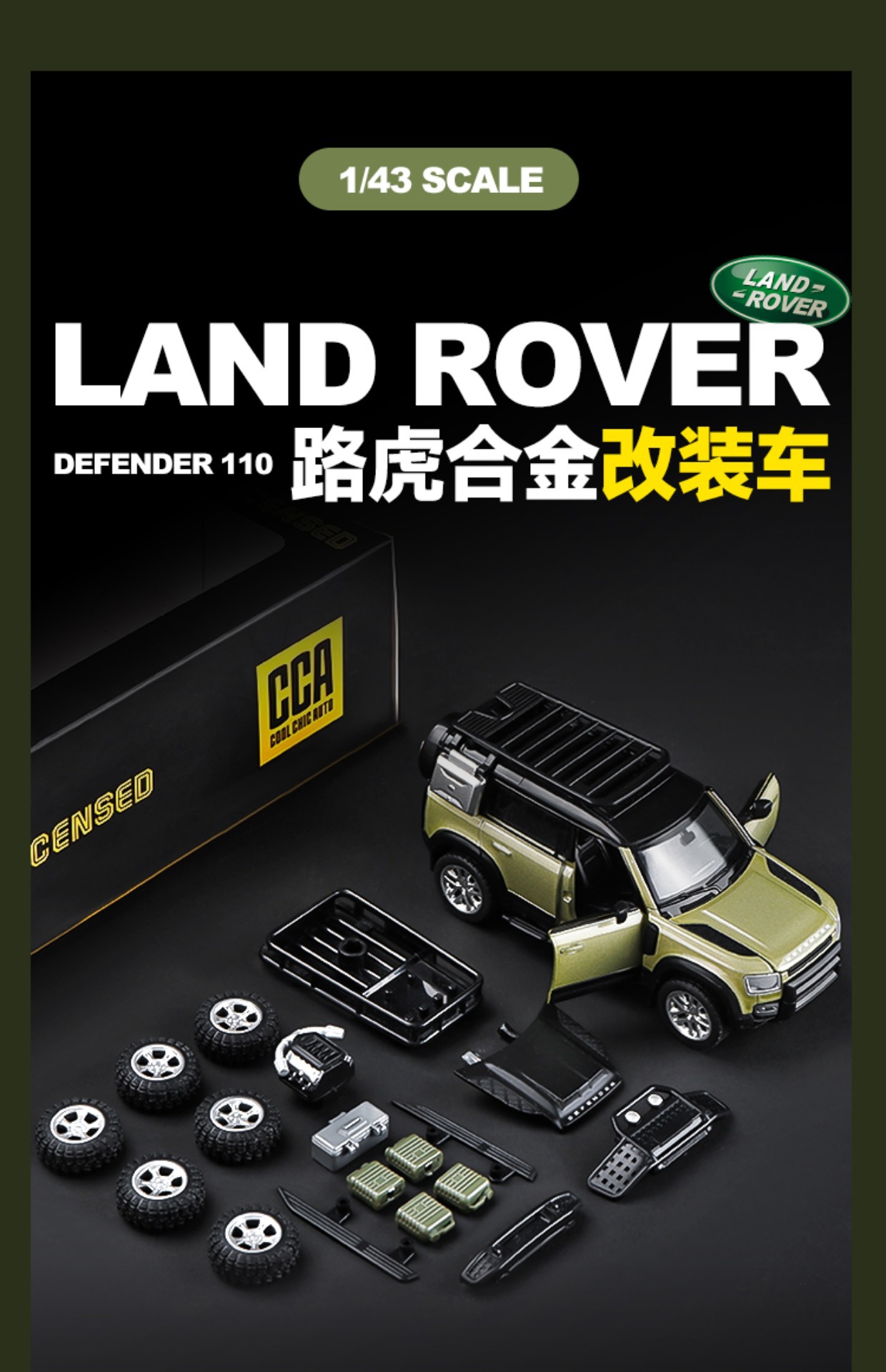 Caibo Chengzhen 1:43CCA 합금 랜드 로버 디펜더 자동차 모델 수정 및 조립 오프로드 차량 어린이 장난감스토어 가기