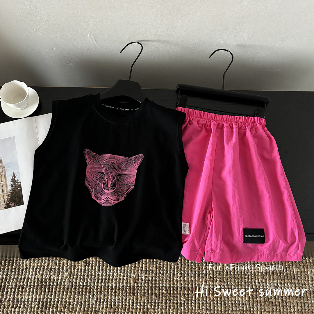 어린이 여름 순면 조끼 정장, 큰 어린이 도파민 아동복, 소년 낙하산 바지, 한국식 스타일 투피스 세트