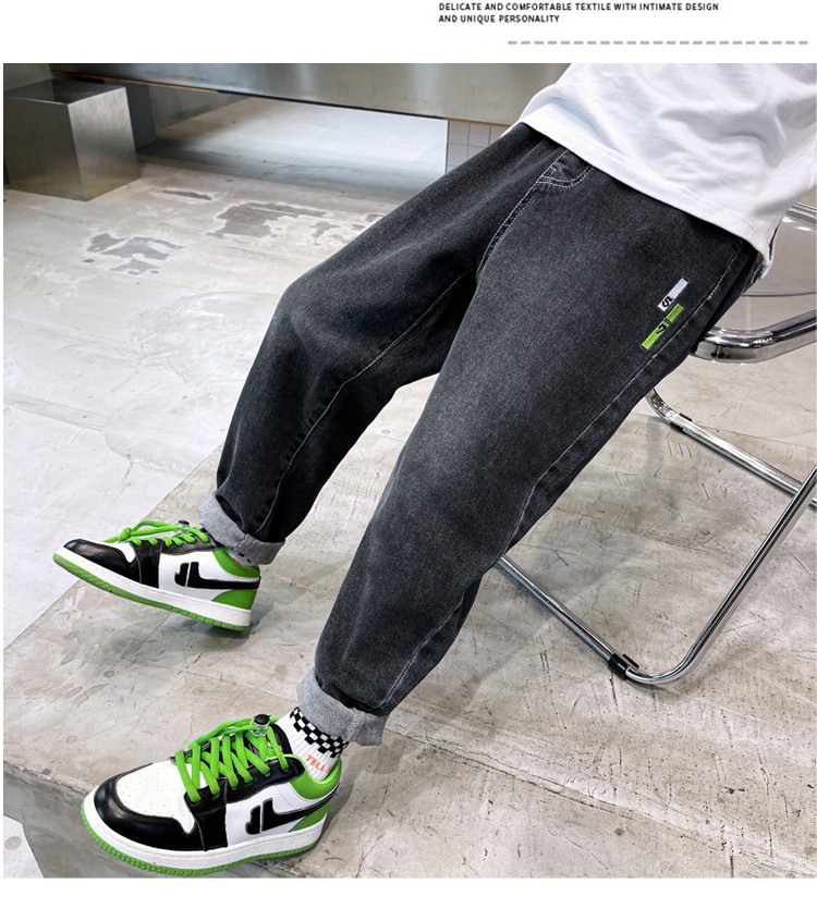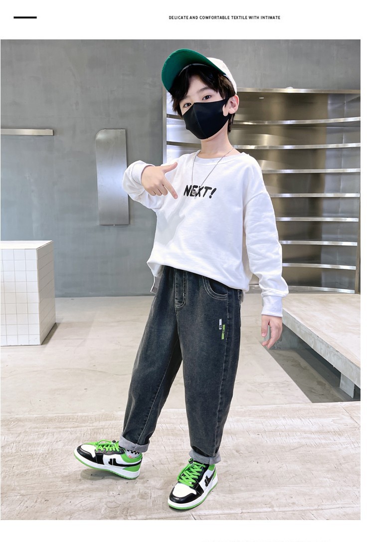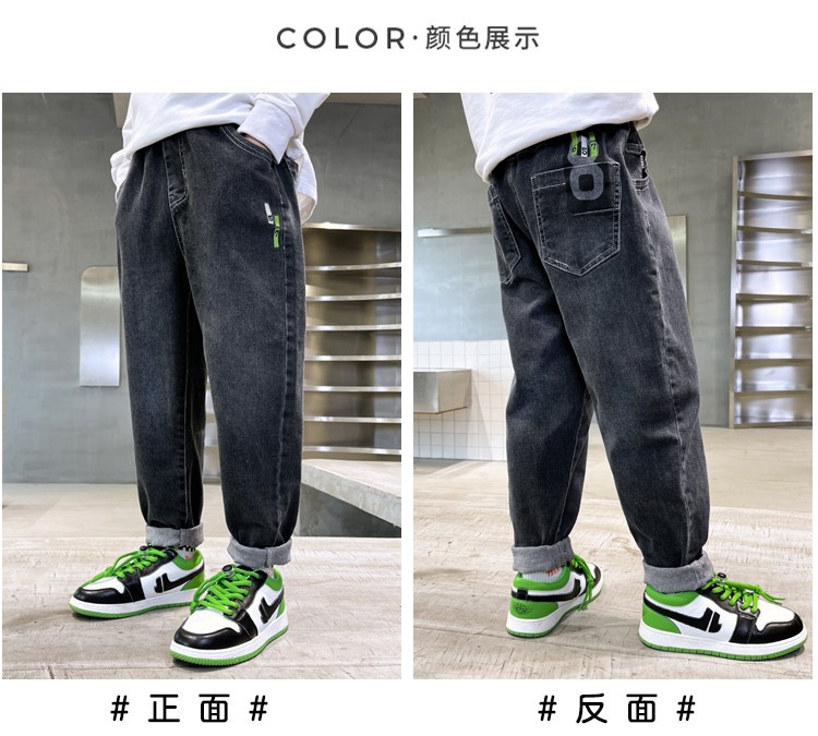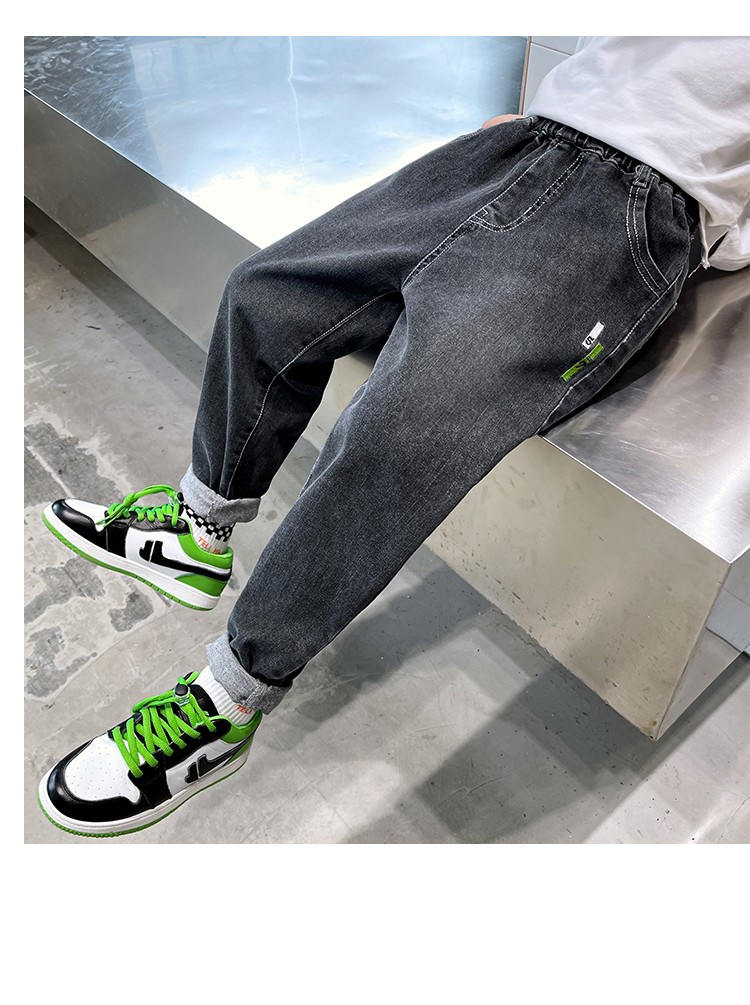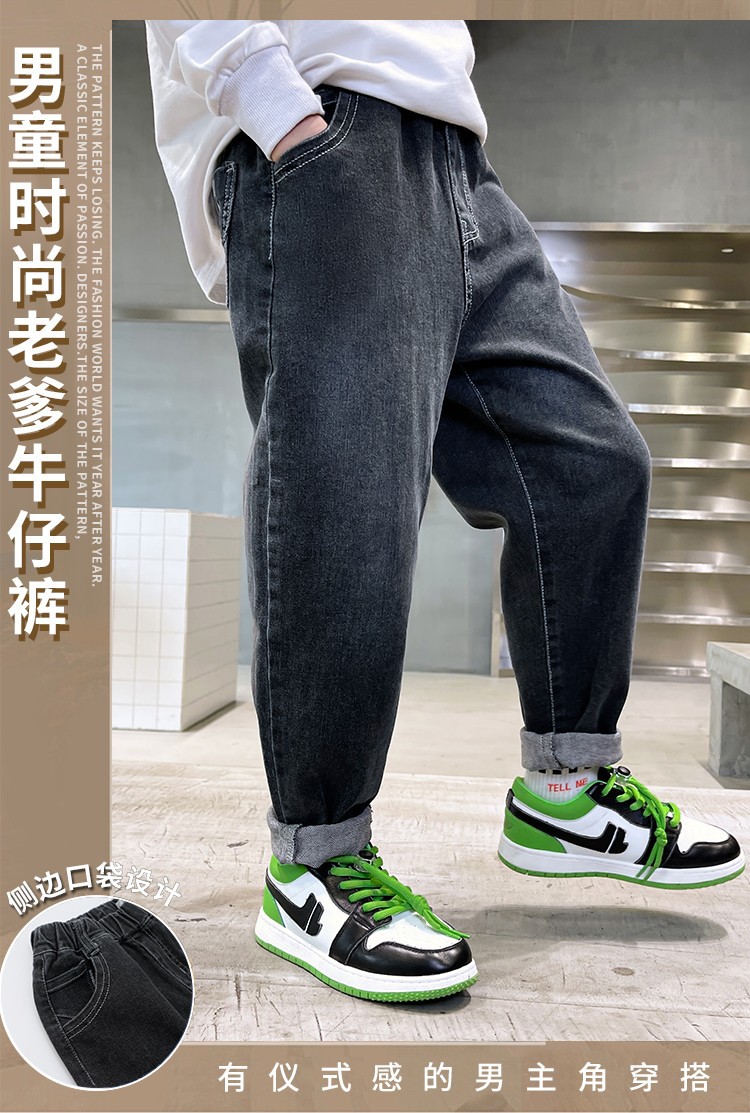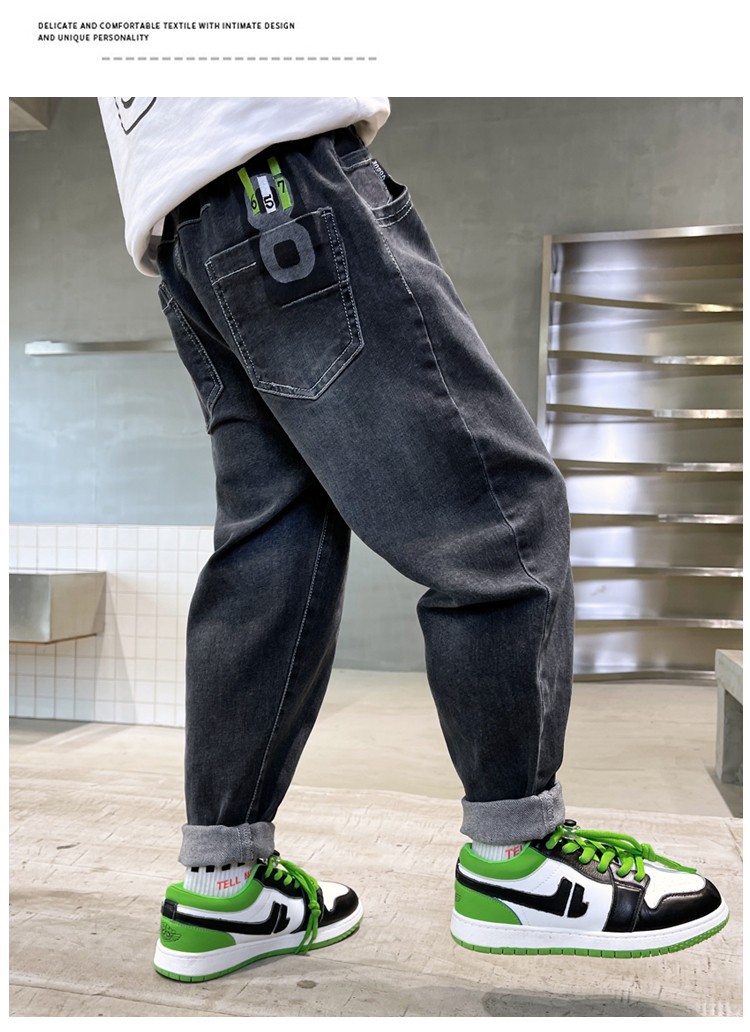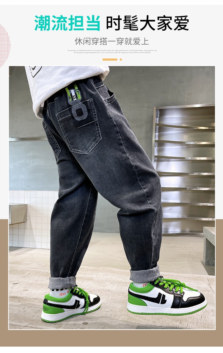 아동복 남아용 청바지 가을 겨울용 긴바지 중대형 남아용 가을 겨울용 캐주얼 바지 트렌디하고 편안한 착용감