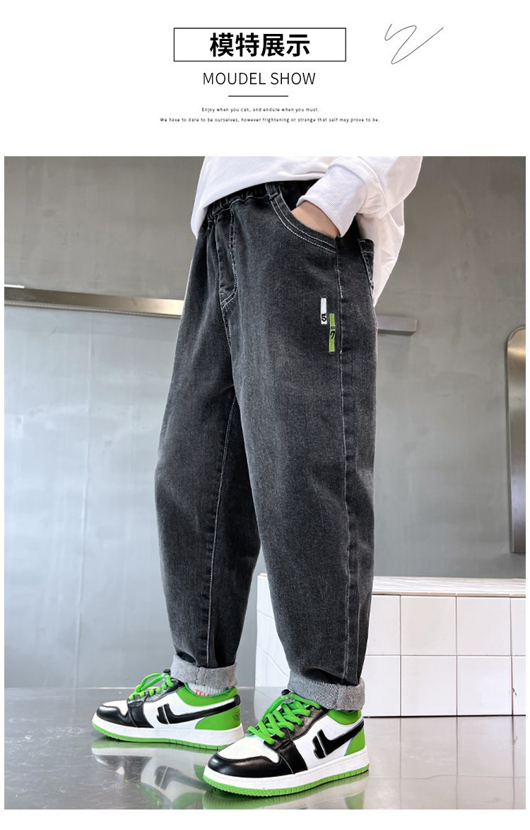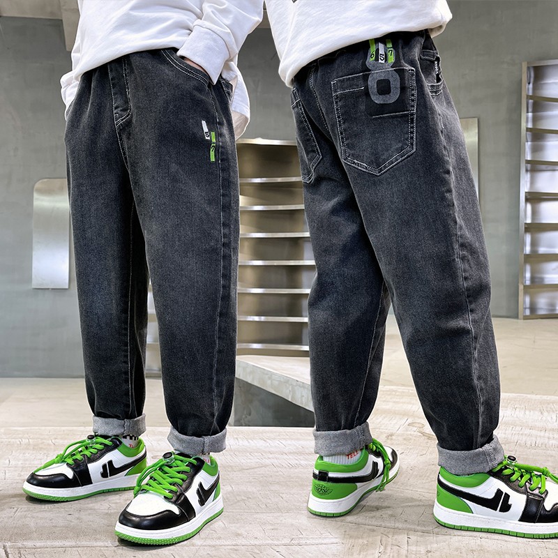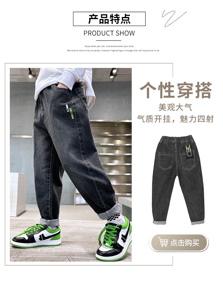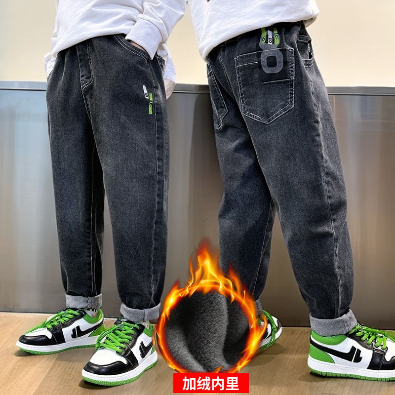 아동복 남아용 청바지 가을 겨울용 긴바지 중대형 남아용 가을 겨울용 캐주얼 바지 트렌디하고 편안한 착용감스토어 가기