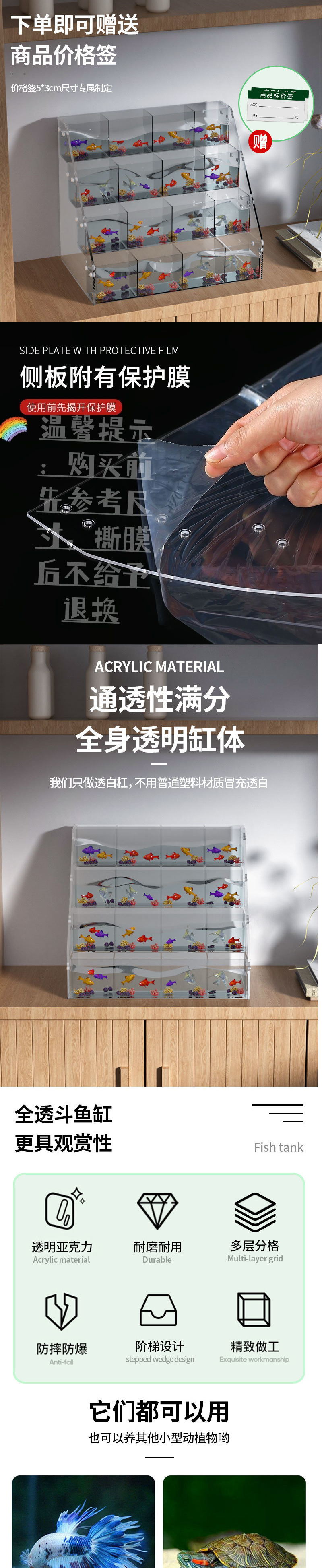 투명 아크릴 벨벳 어항, 멀티 그리드 조합 수경 어항, 데스크탑 일체형 어항, 소형 행운의 물고기스토어 가기
