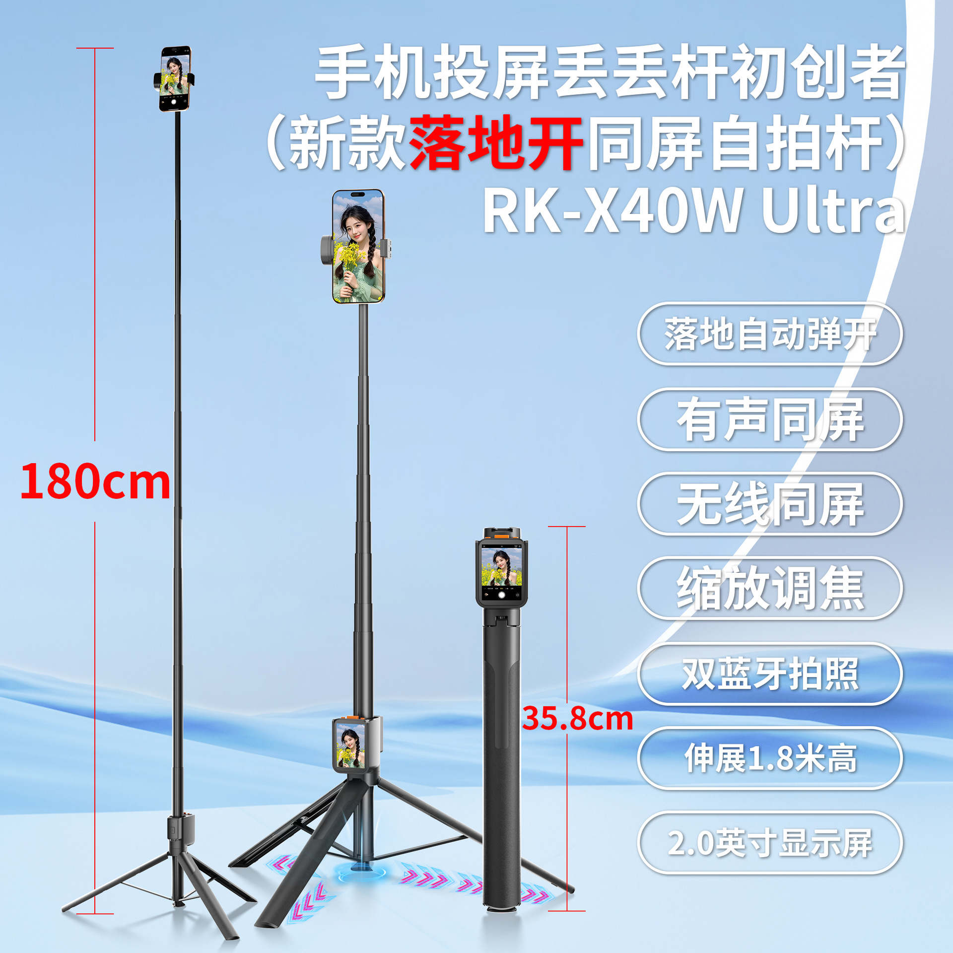 【RK-X40W Ultra投屏落地自拍杆|1.8米高全能新体验】
