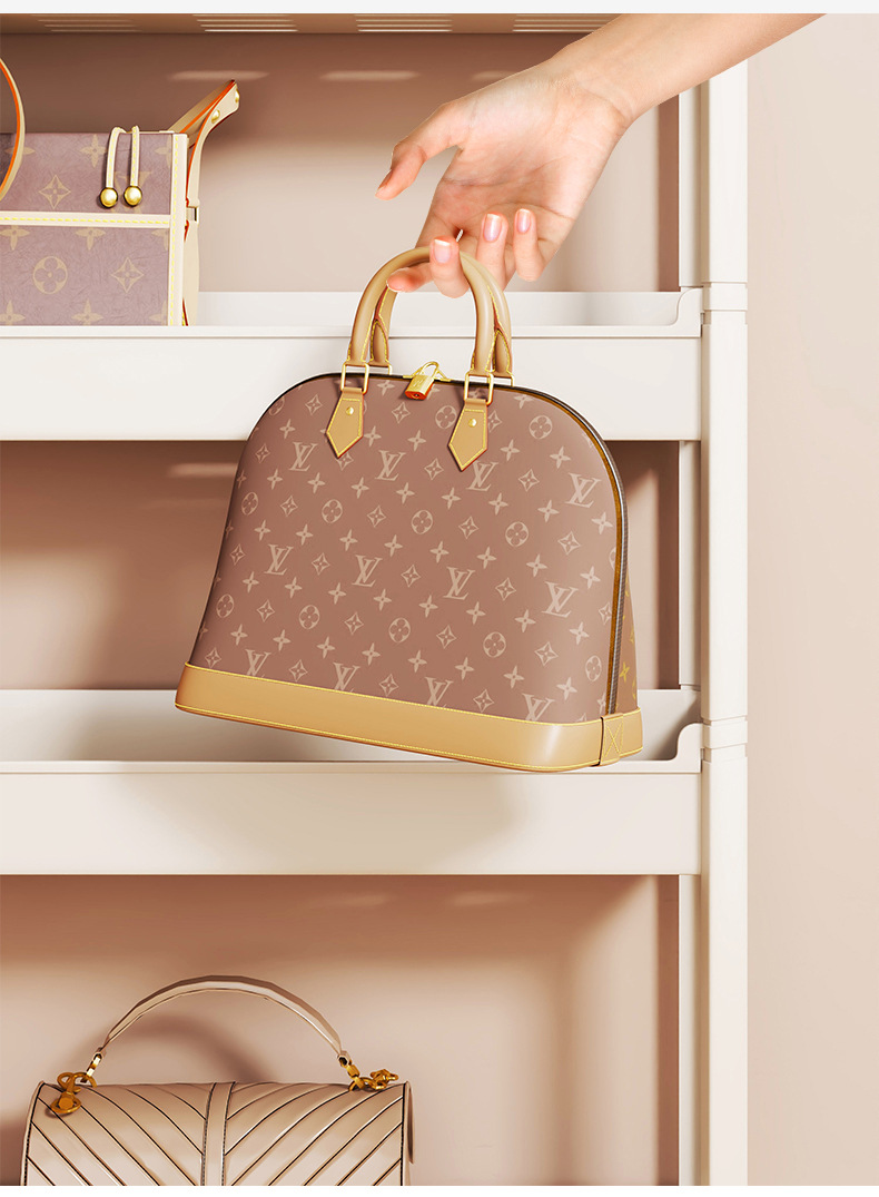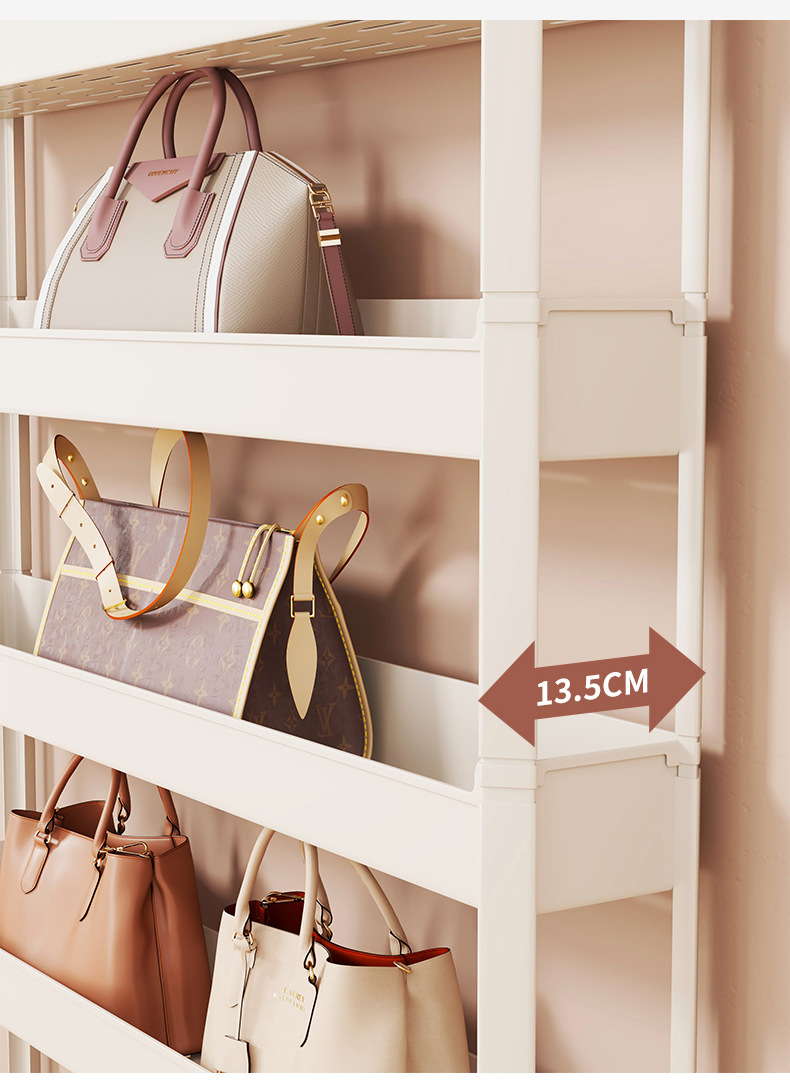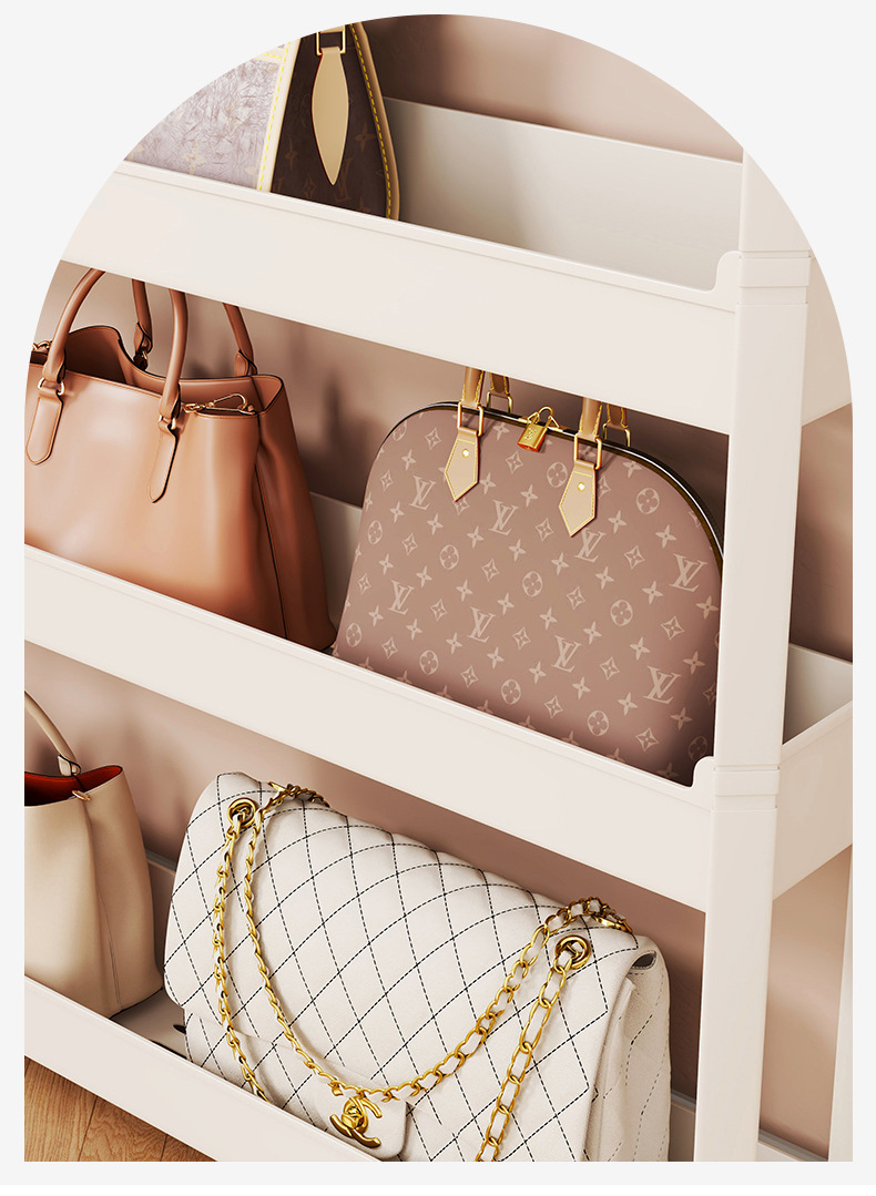 문 뒤에 있는 가방 보관함, 가정용 다층 틈새 보관함, 바닥에 있는 계층형 가방 보관함, 가죽 가방 디스플레이 선반