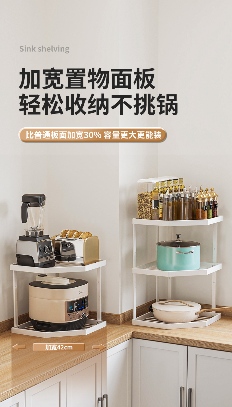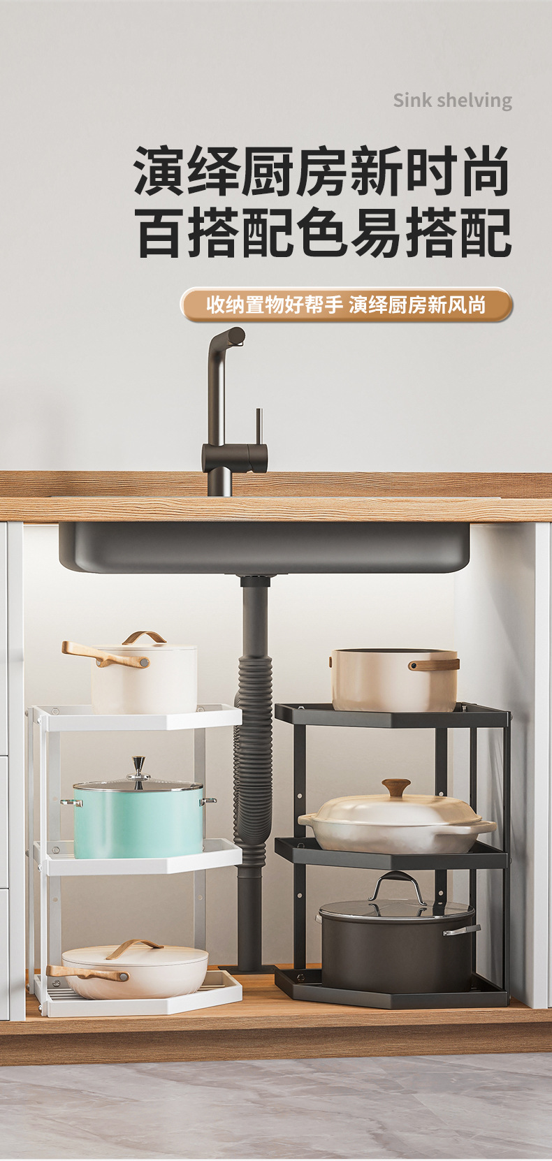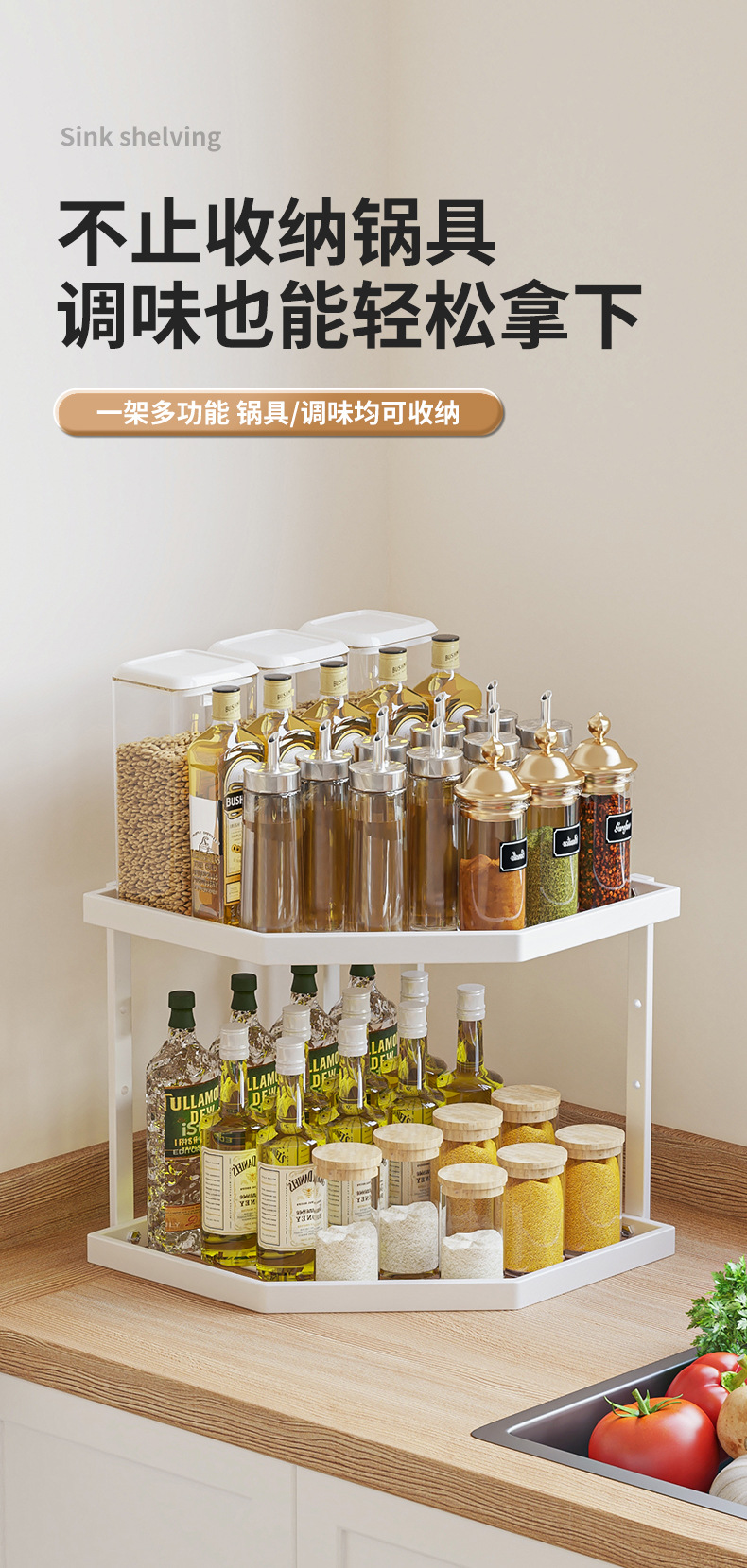 주방수납선반, 수납선반, 계층선반, 싱크대 하부 캐비닛, 냄비걸이 내장선반, 조미료 조리대 다기능선반