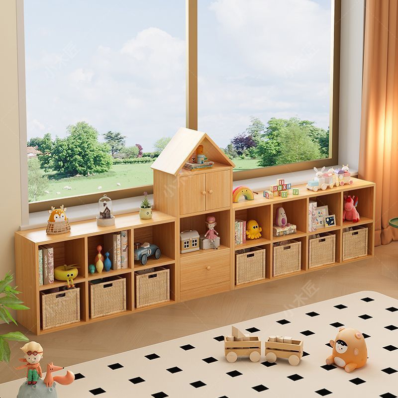 단단한 나무 어린이 책장 보관함 바닥 장난감 보관함 낮은 책장 보관 캐비닛 거실 격자 캐비닛 그림책 선반스토어 가기