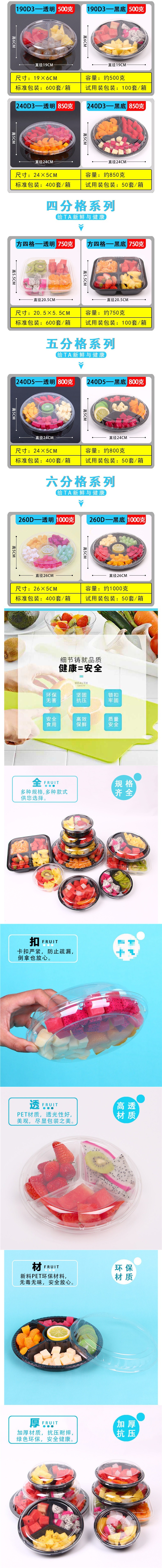 일회용 과일 상자 플라스틱 칸막이 신선한 과일 컷 샐러드 플래터 뚜껑이 있는 둥근 투명 과일 포장 상자스토어 가기