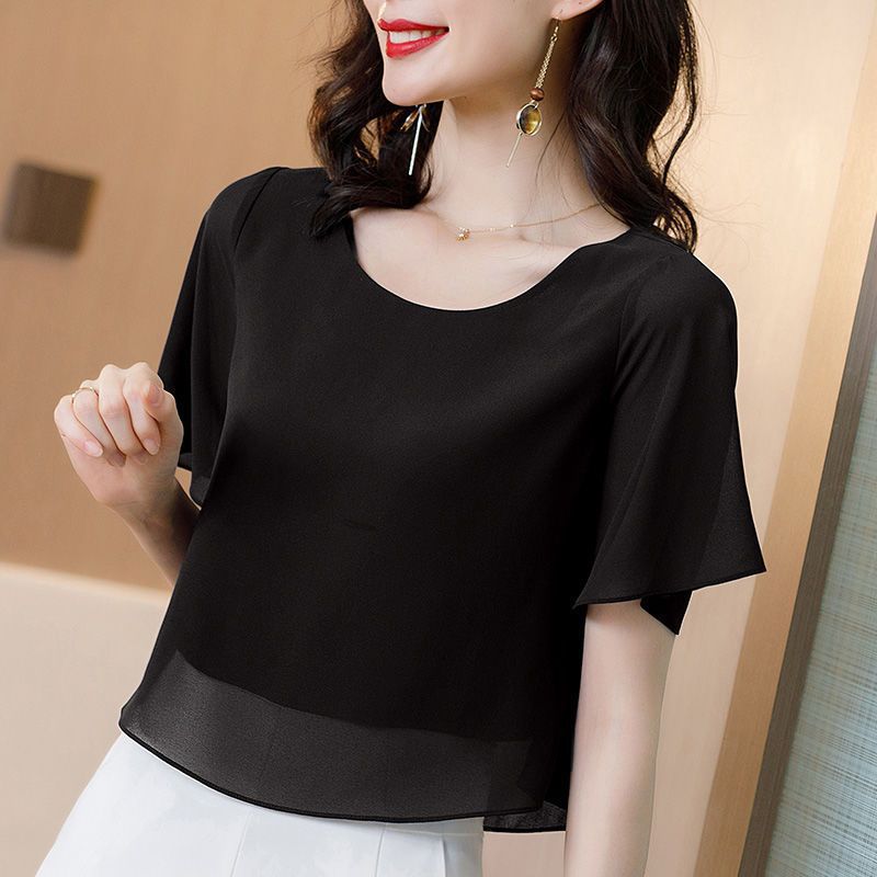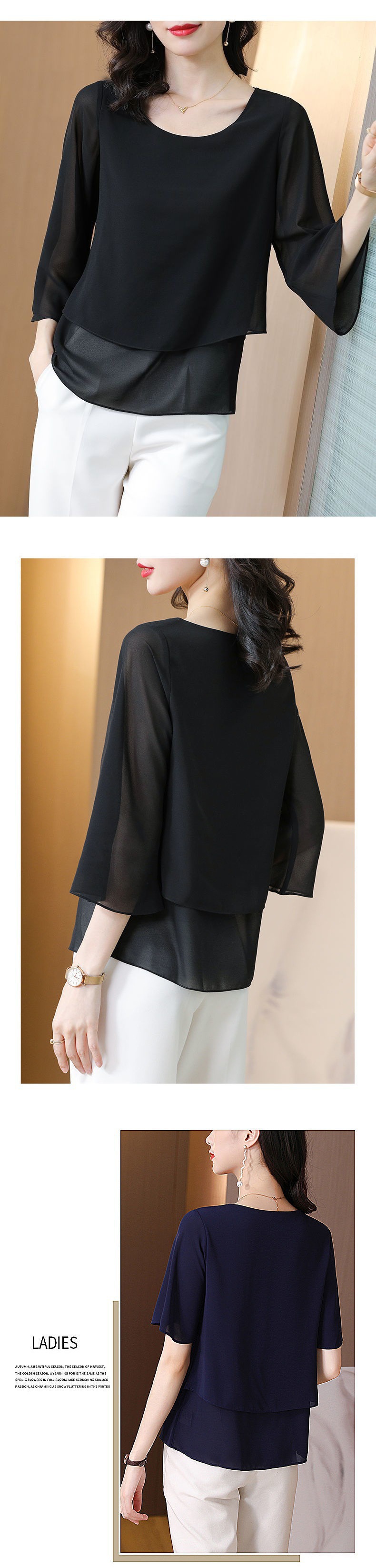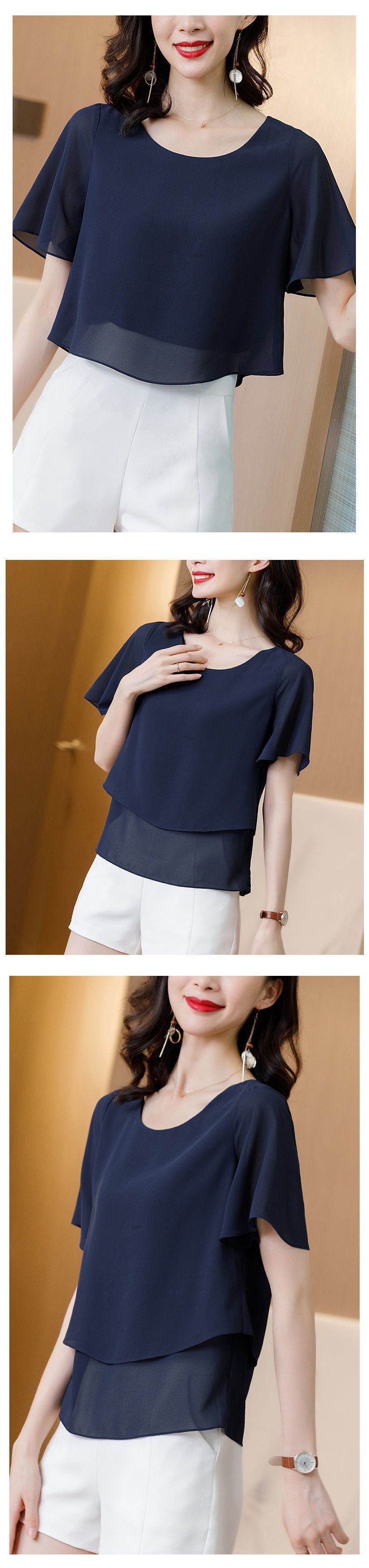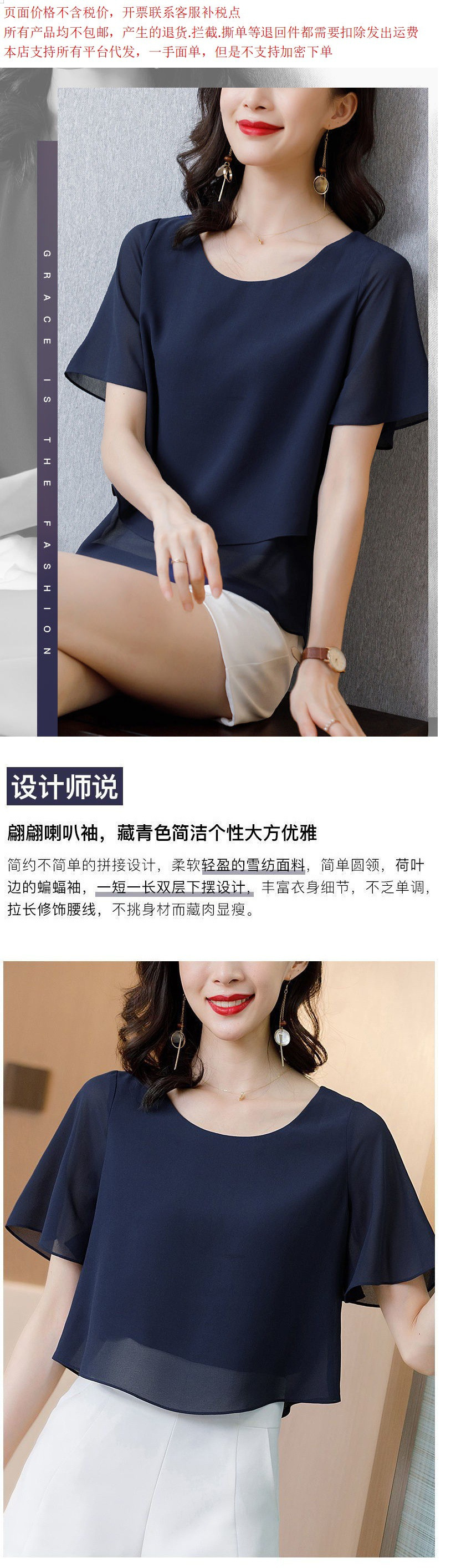 시폰 셔츠 여성용 탑 반팔 2023 중년 어머니 가짜 투피스 뚱뚱한 mm 패션 연령 감소스토어 가기