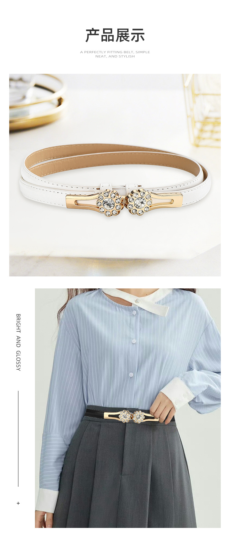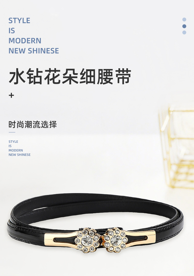 조정 가능한 라인스톤 꽃 얇은 벨트 여성 장식 다목적 드레스 정장 벨트 스웨터 허리 체인 액세서리 유행스토어 가기