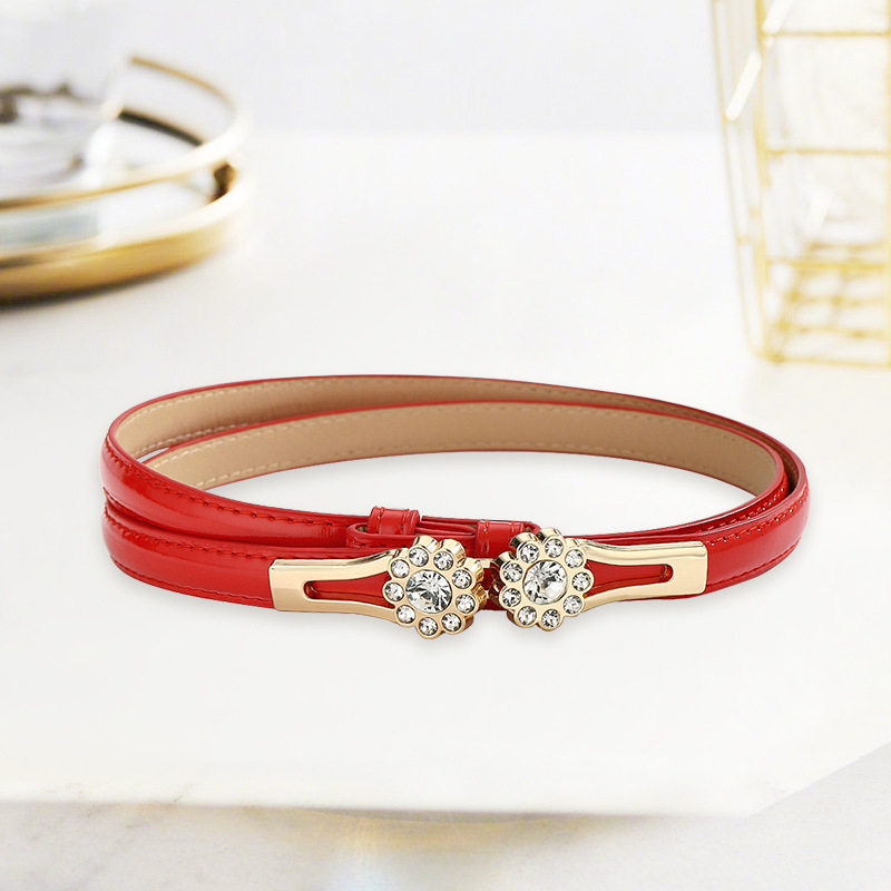 조정 가능한 라인스톤 꽃 얇은 벨트 여성 장식 다목적 드레스 정장 벨트 스웨터 허리 체인 액세서리 유행