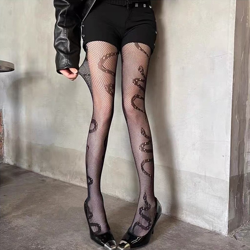 봄 여름 인터넷 연예인 섹시한 검은색 실크 망사 중공 바닥 양말 뱀 무늬 복고풍 자카드 핫 소녀 순수한 욕망 팬티 스타킹스토어 가기