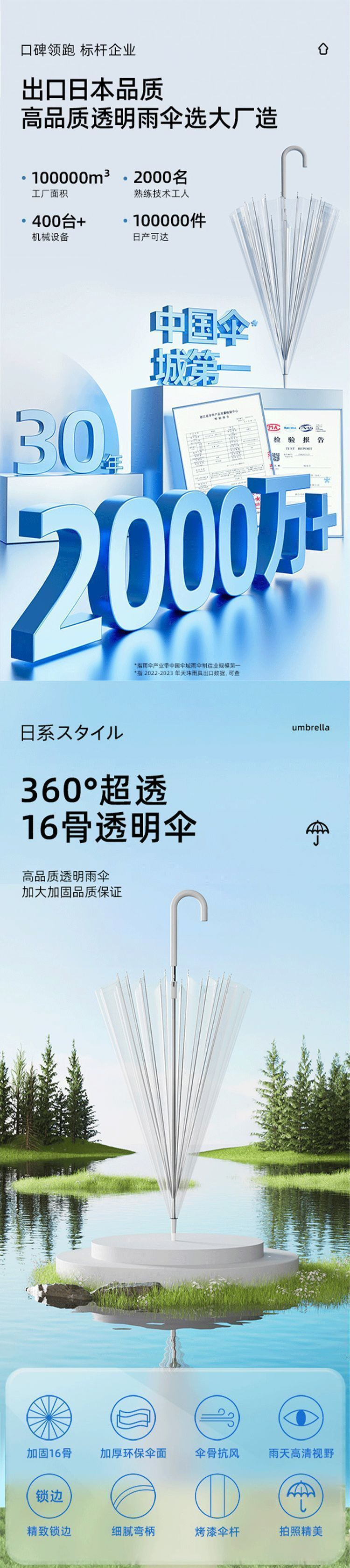 매장에서 가장 잘 팔리는 16본 투명 우산, 긴 손잡이 우산, 대형 더블 여성용 흰색 인터넷 연예인 일본식 고가치 우산스토어 가기