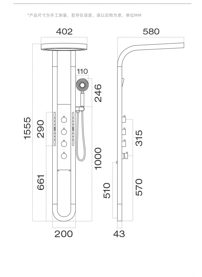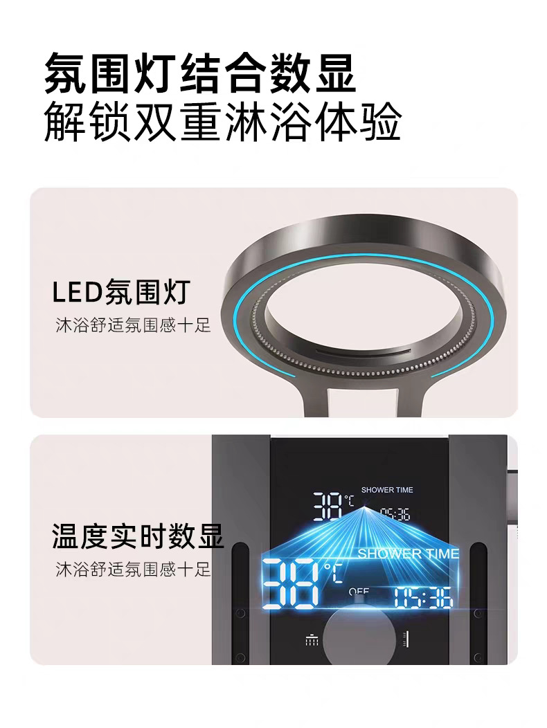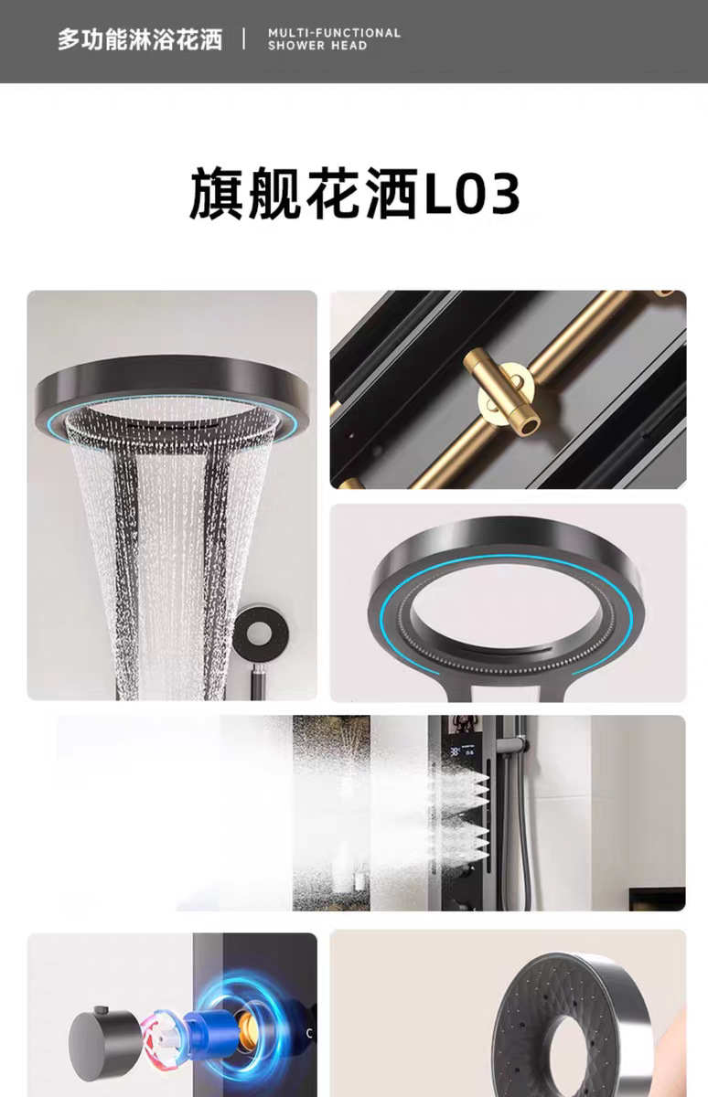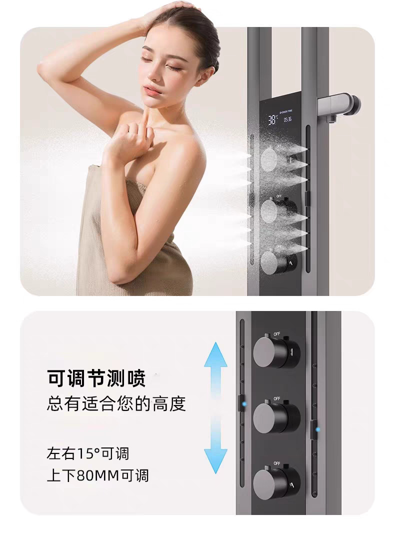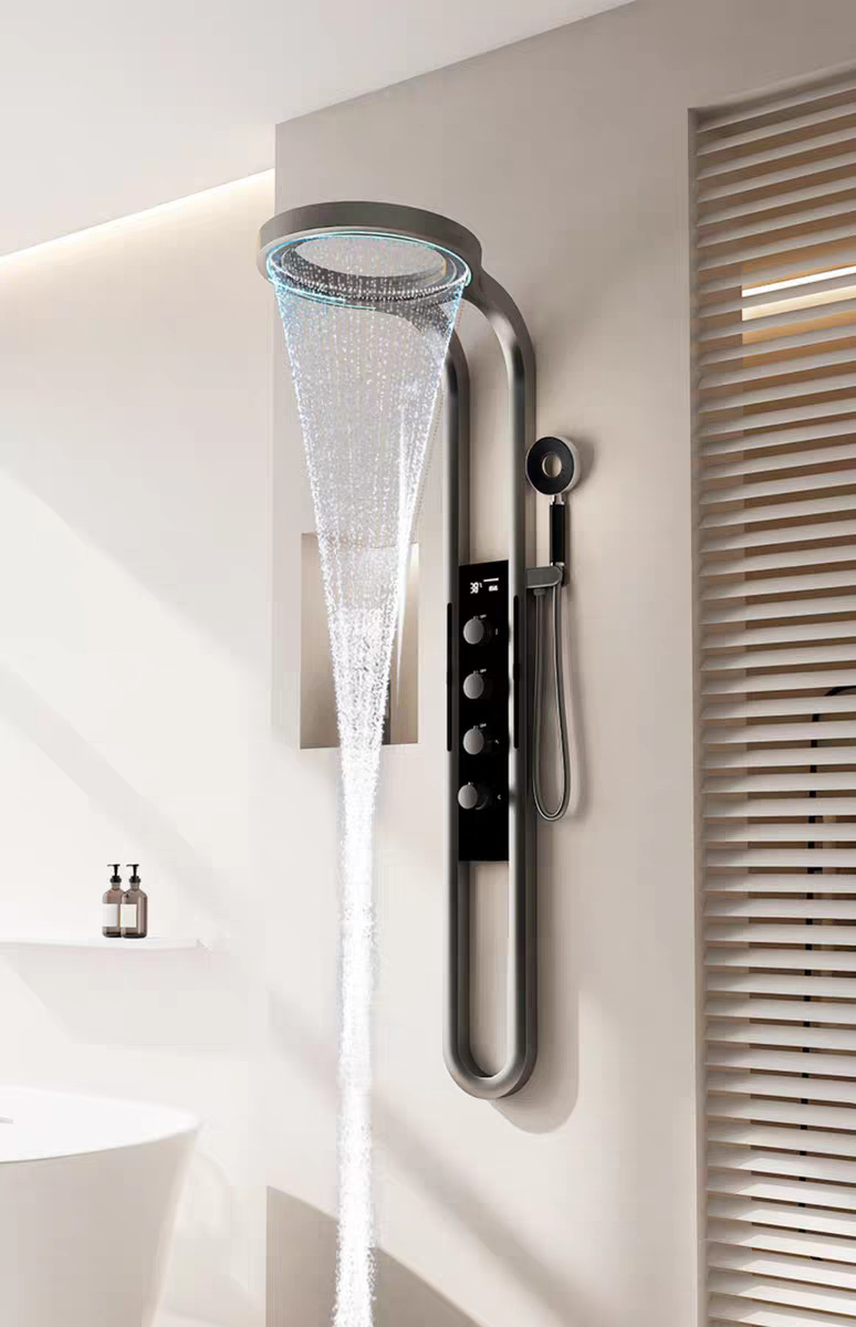 폭포 샤워 샤워 세트 가정용 디지털 디스플레이 맞춤형 스테인레스 스틸 구리 바디 샤워 스크린