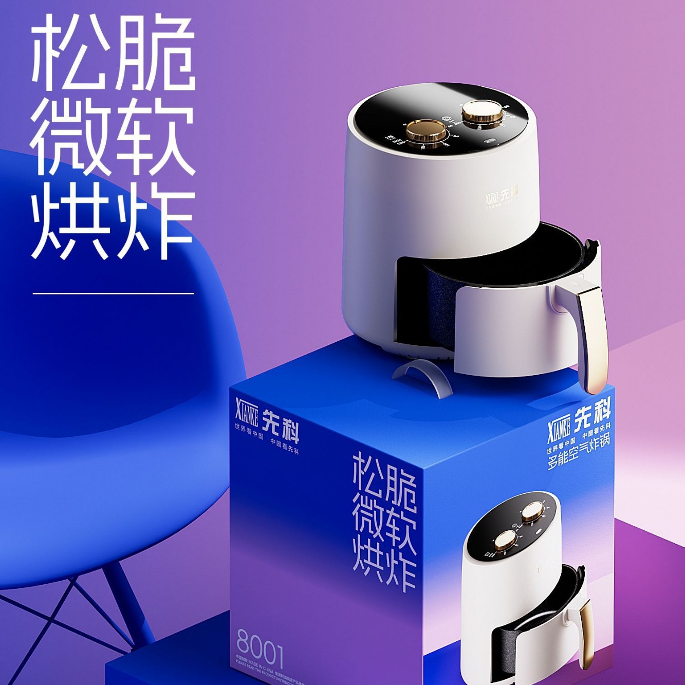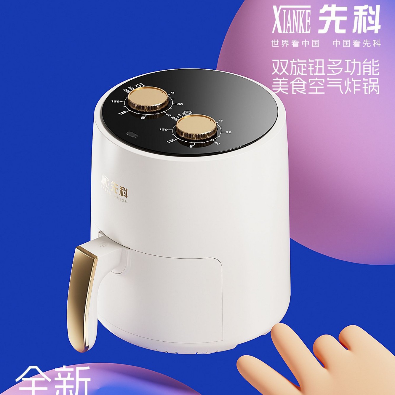 • Xianke 에어프라이어 8001 화이트☆[손잡이형 + 타이머 + 뒤집지 않고 굽기] 선물형