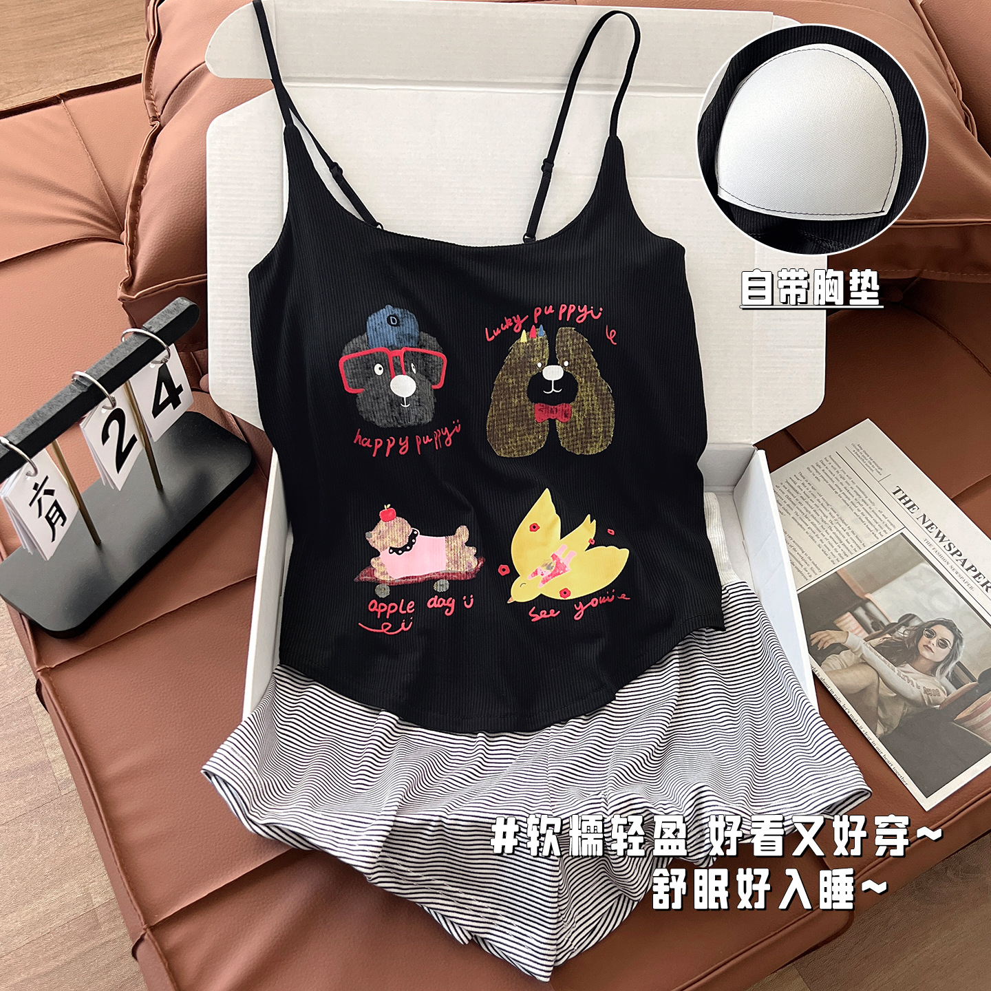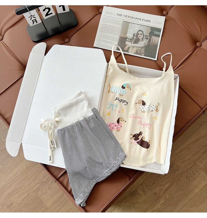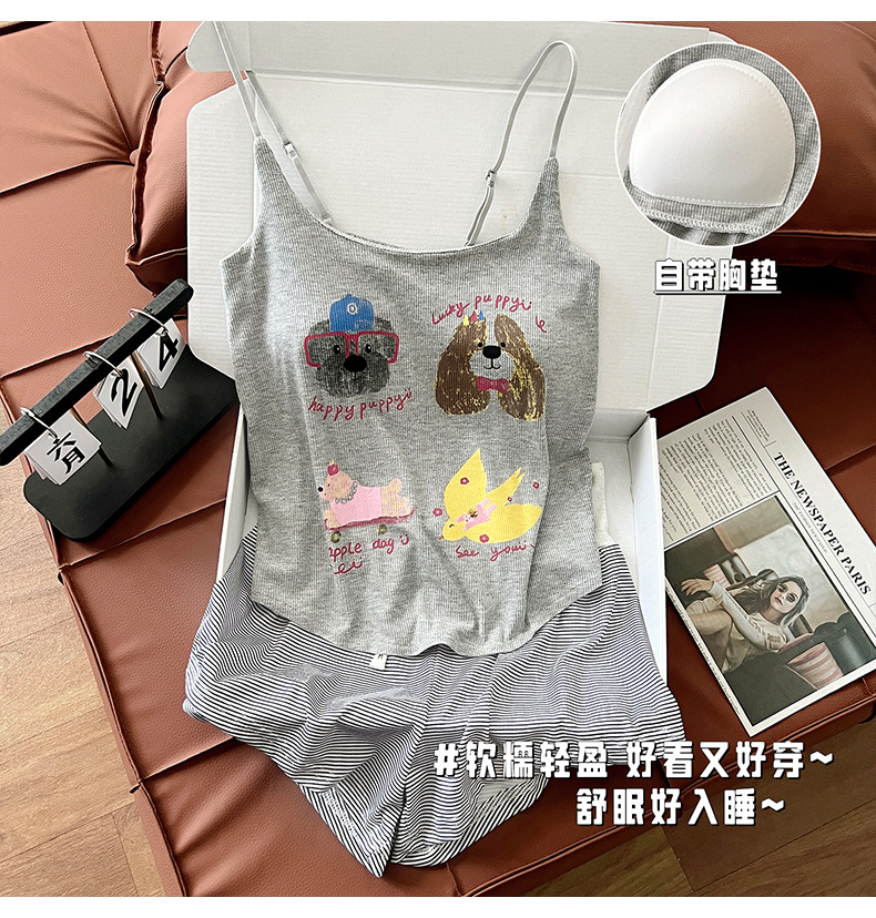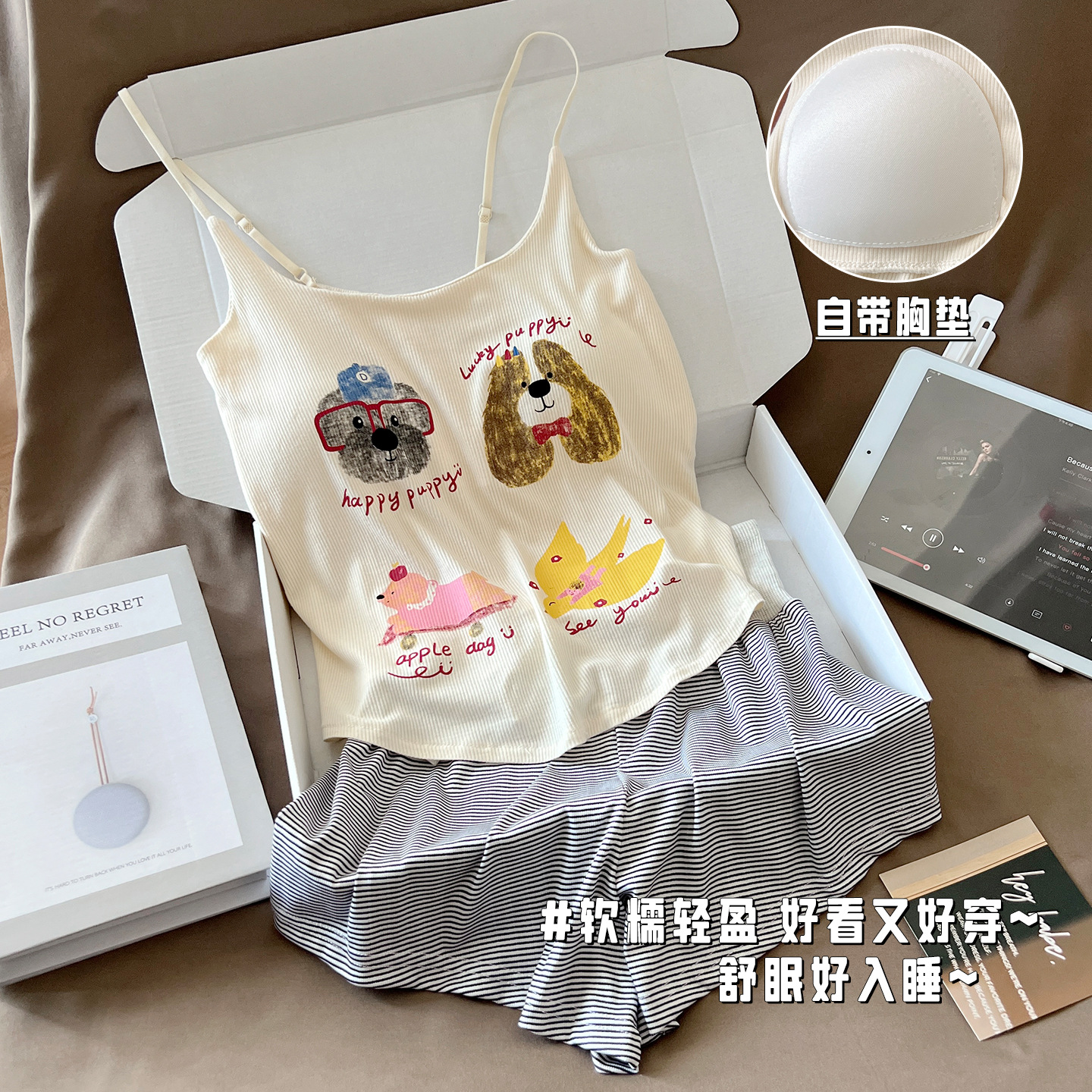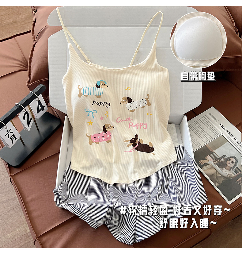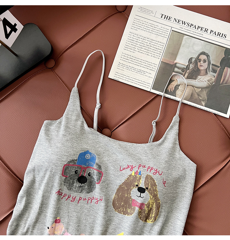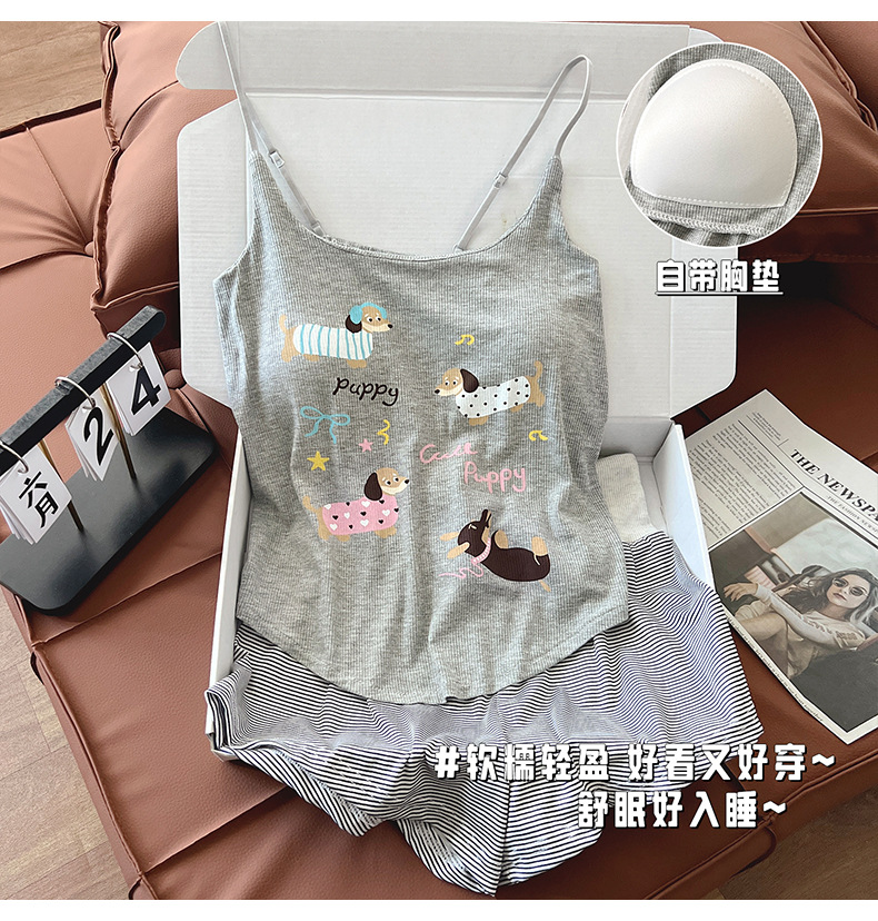 소녀를 위한 닥스훈트 잠옷, 가슴 패드가 있는 여름 민소매 캐미솔, 섹시한 여름 스위트 홈웨어 세트스토어 가기