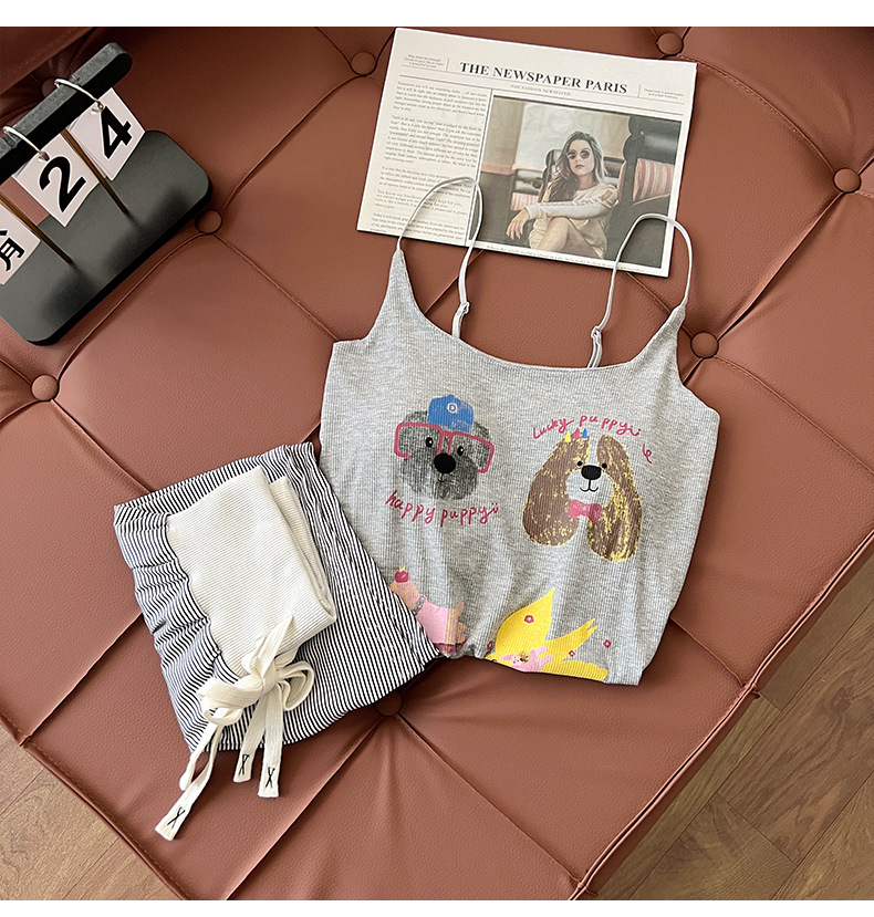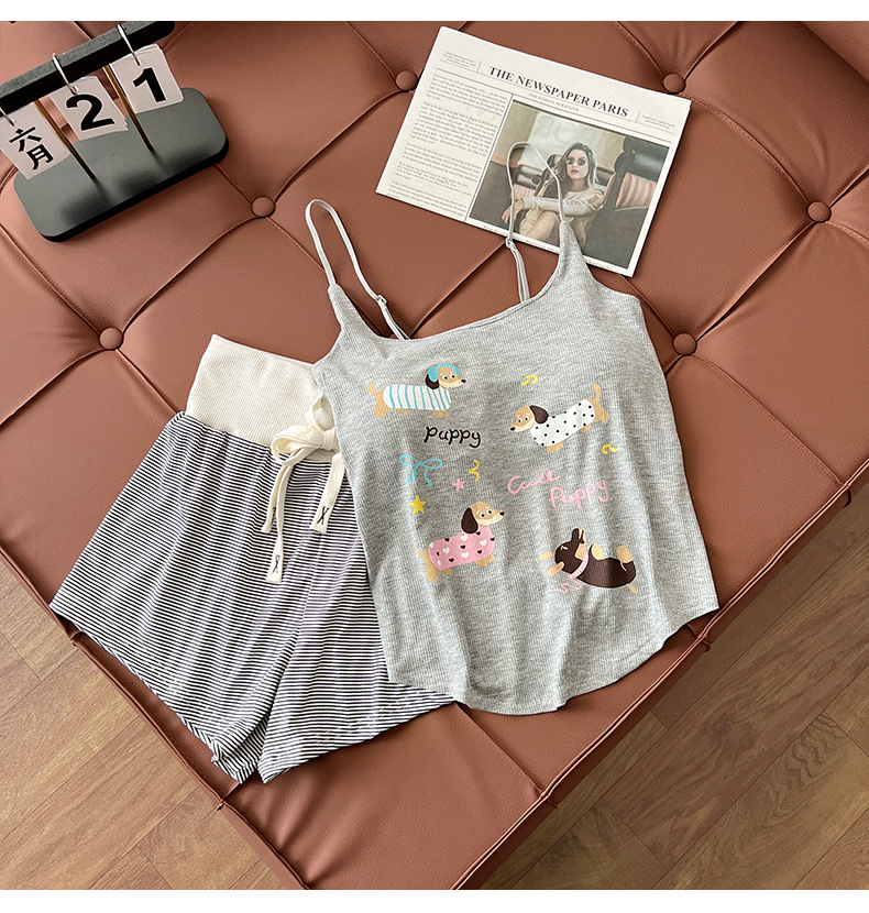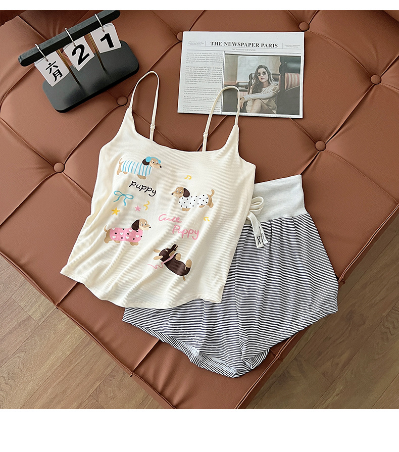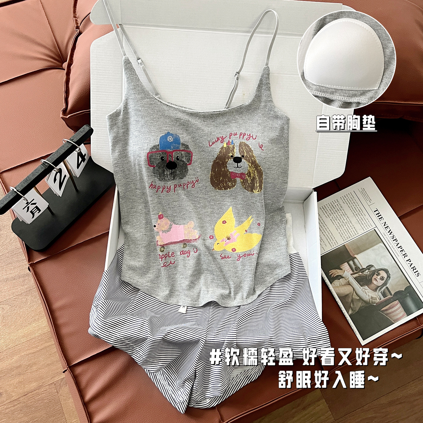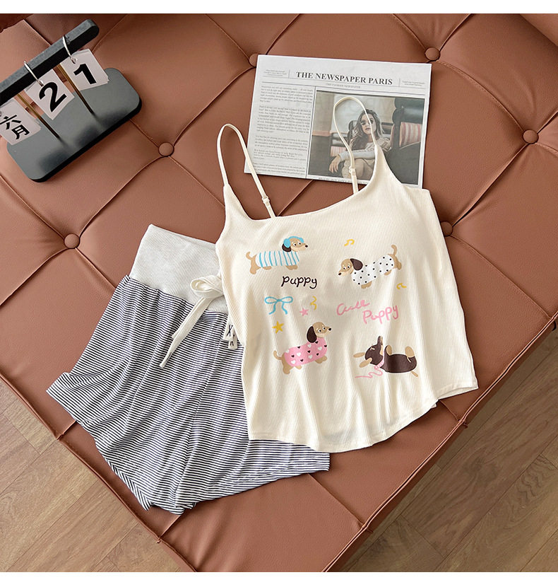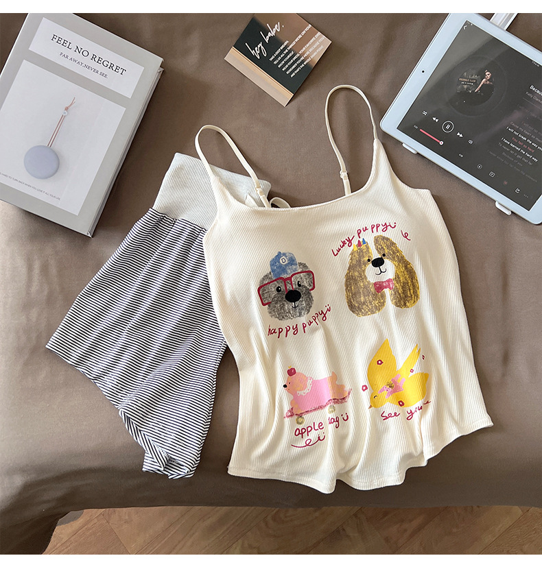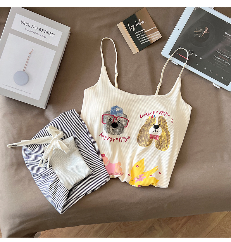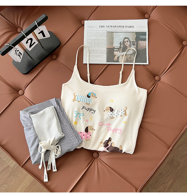 소녀를 위한 닥스훈트 잠옷, 가슴 패드가 있는 여름 민소매 캐미솔, 섹시한 여름 스위트 홈웨어 세트스토어 가기