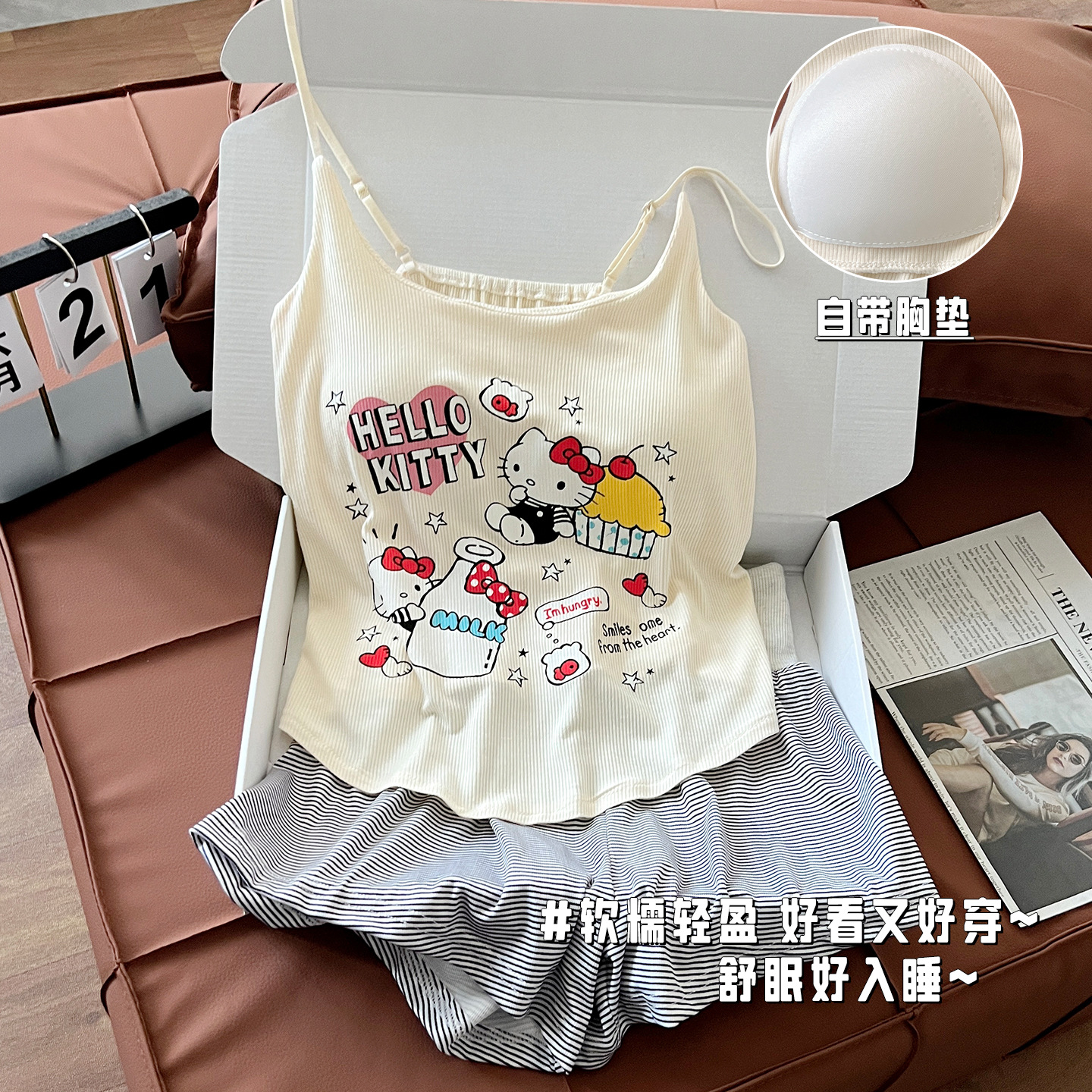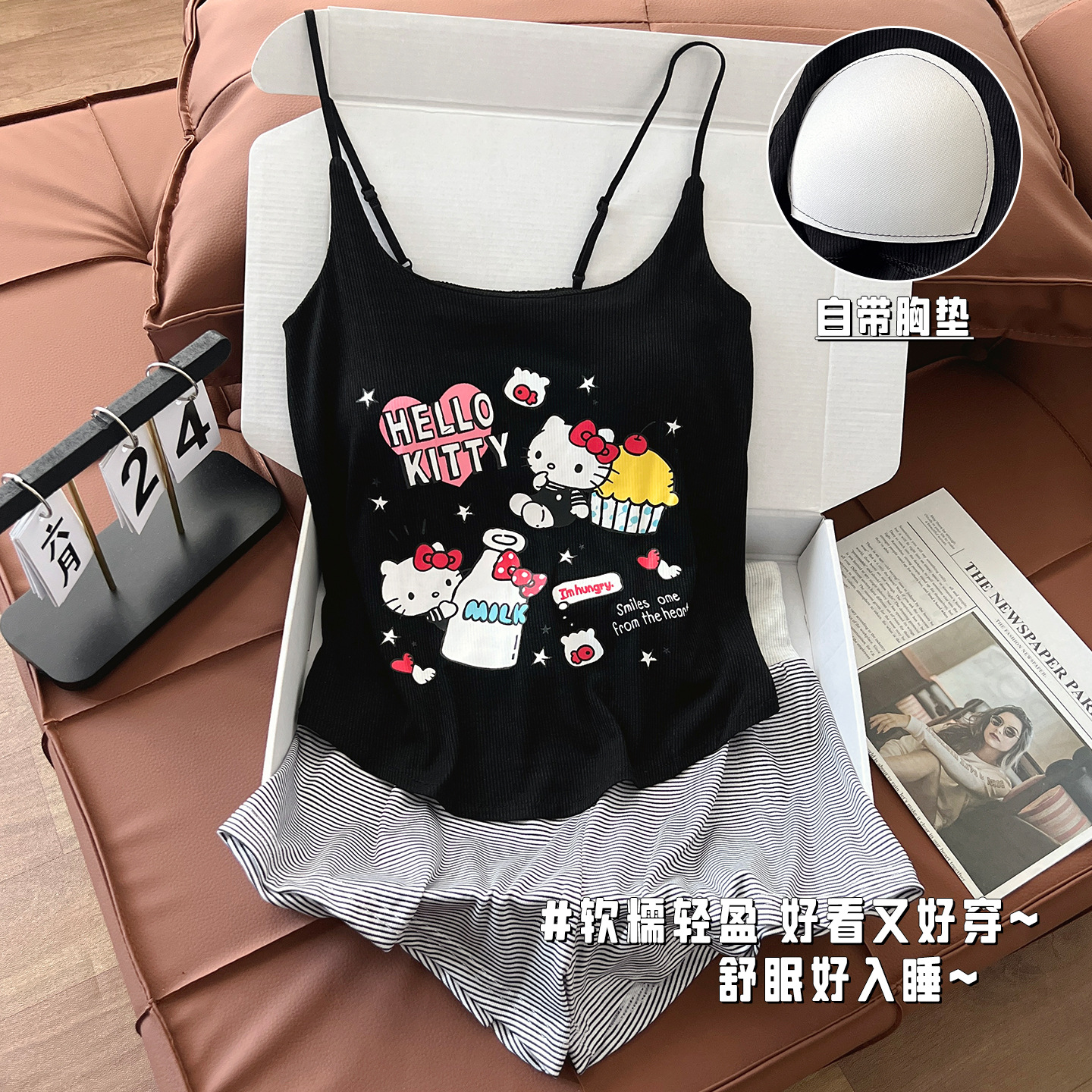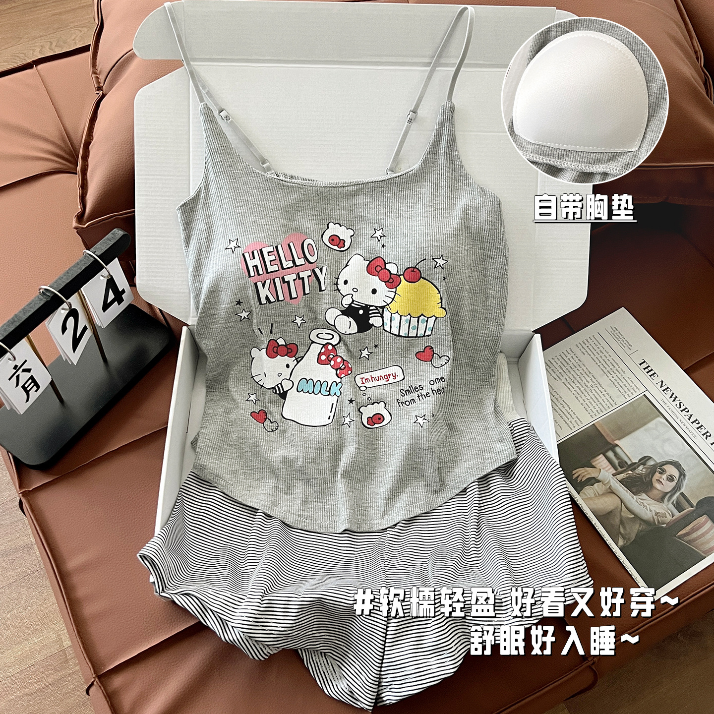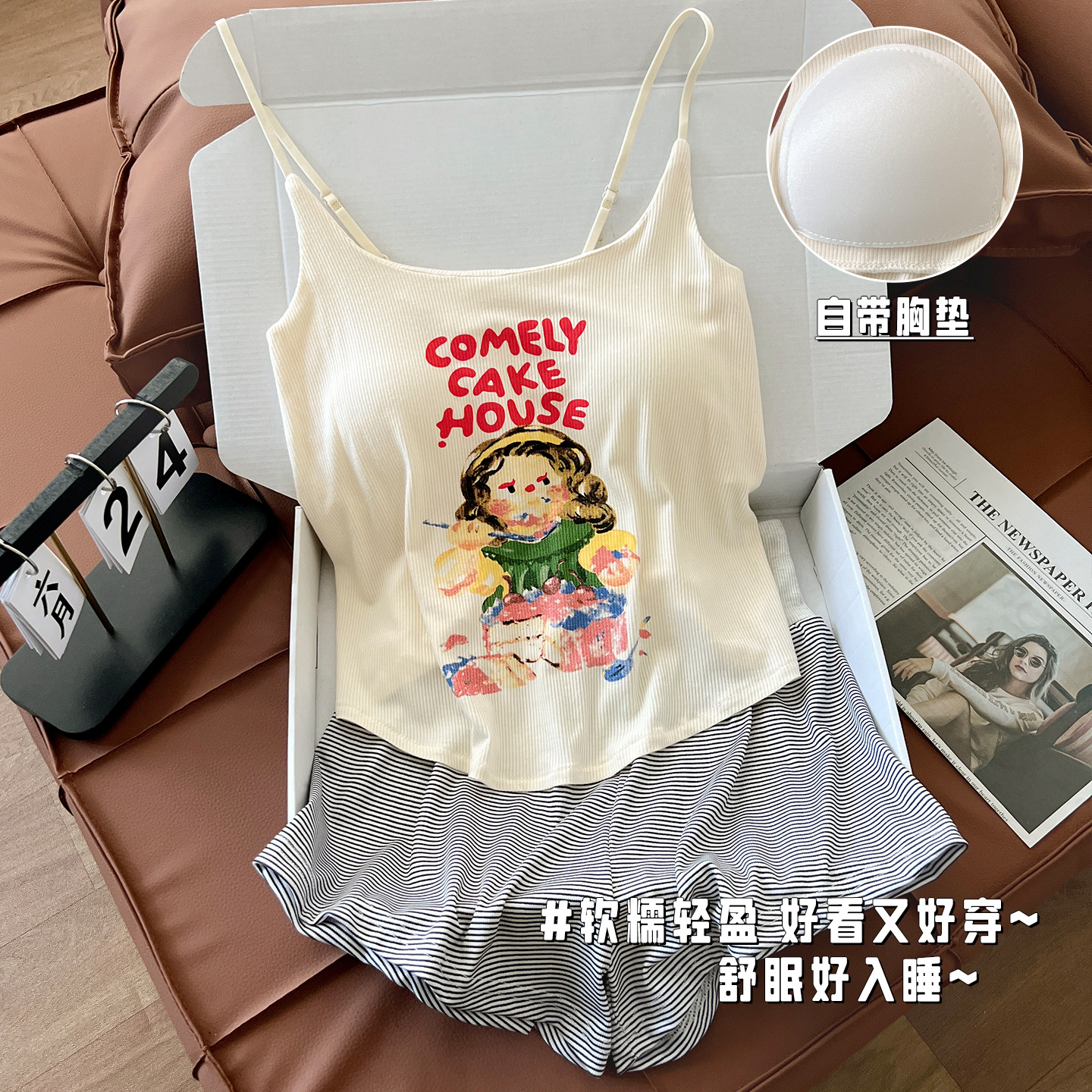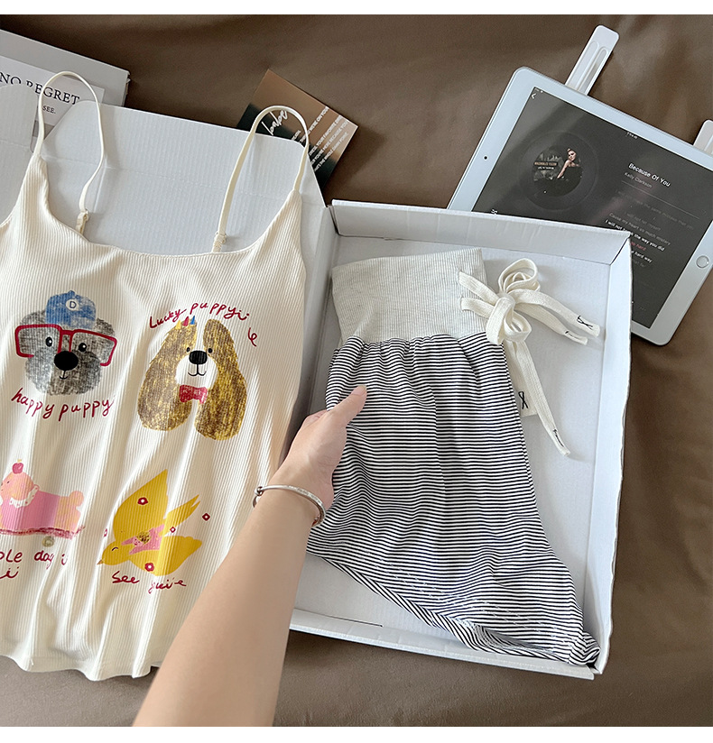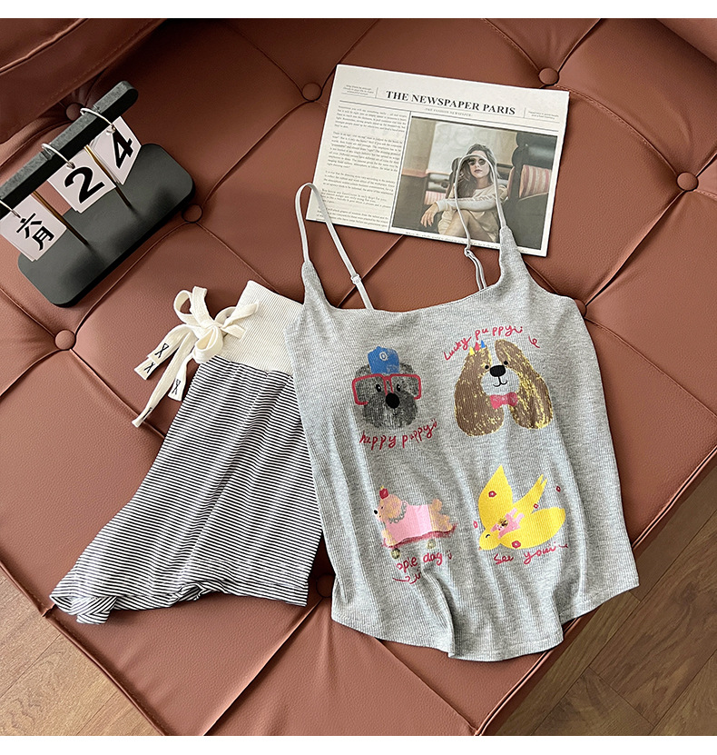 소녀를 위한 닥스훈트 잠옷, 가슴 패드가 있는 여름 민소매 캐미솔, 섹시한 여름 스위트 홈웨어 세트스토어 가기