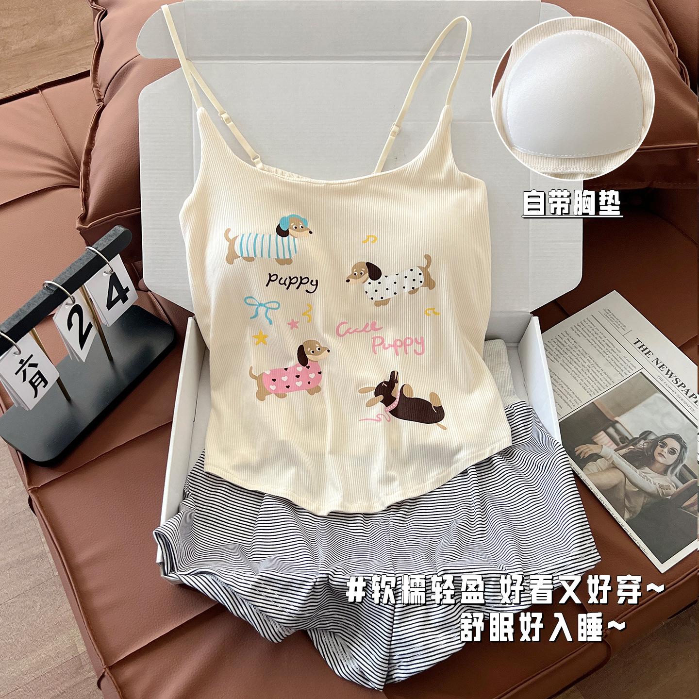 소녀를 위한 닥스훈트 잠옷, 가슴 패드가 있는 여름 민소매 캐미솔, 섹시한 여름 스위트 홈웨어 세트