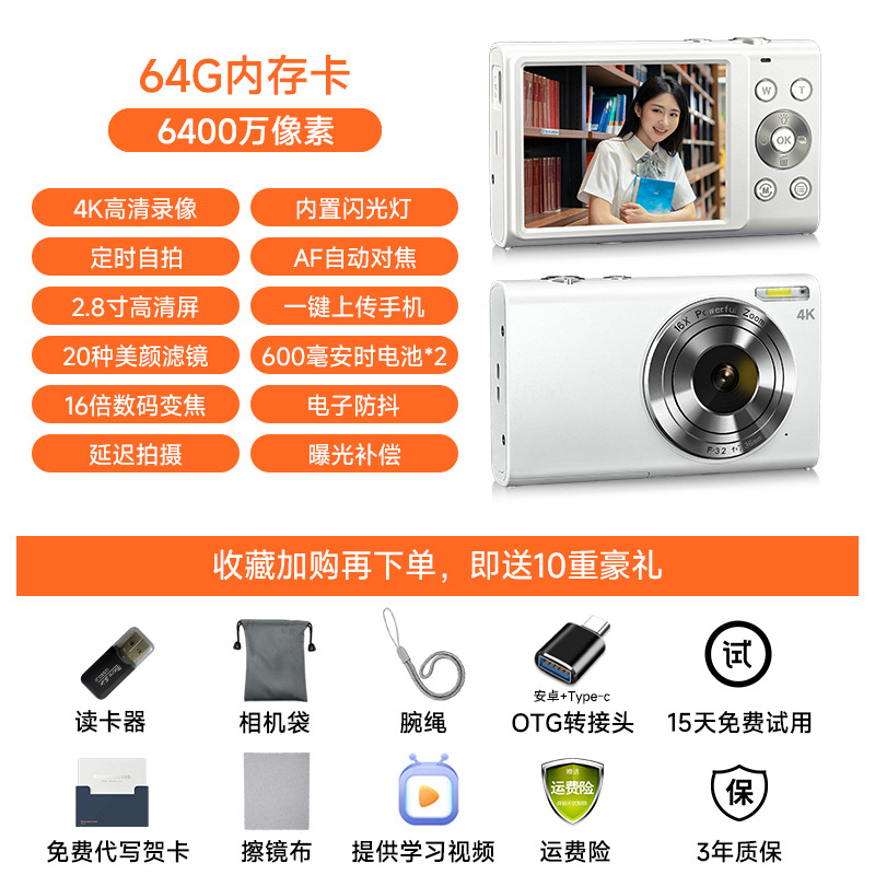 • [클래식 모델] 밀크 화이트 [싱글 카메라 + 6400만 화소 + 64G 메모리 카드] + 내장 플래시 + 듀얼 배터리 - 공식 표준 구성