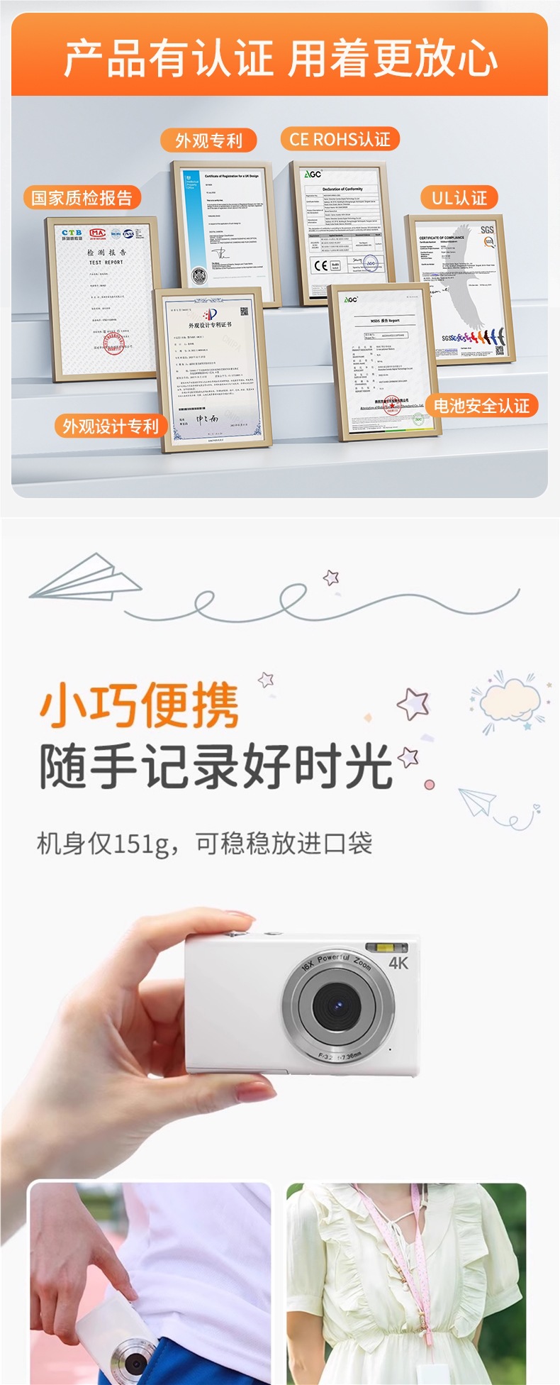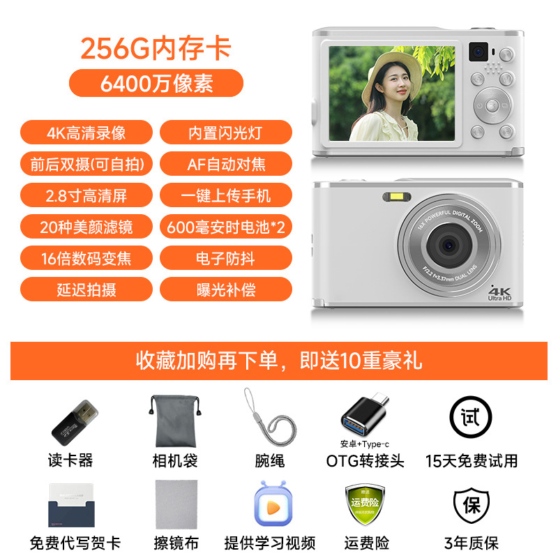 • [클래식 모델] 밀크 화이트 [싱글 카메라 + 6400만 화소 + 32G 메모리 카드] + 내장 플래시 + 듀얼 배터리 - 공식 표준 구성