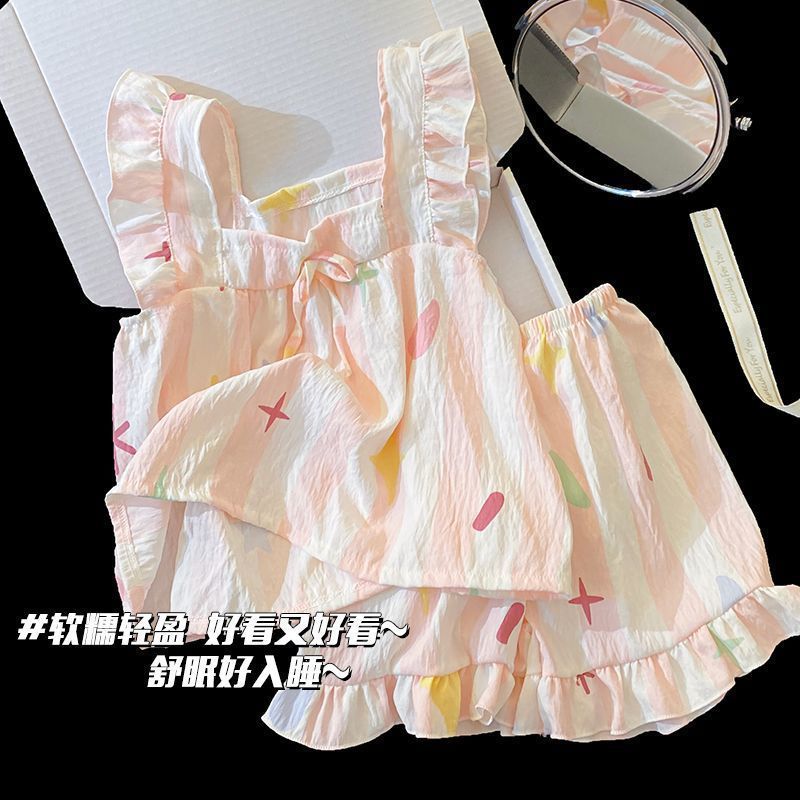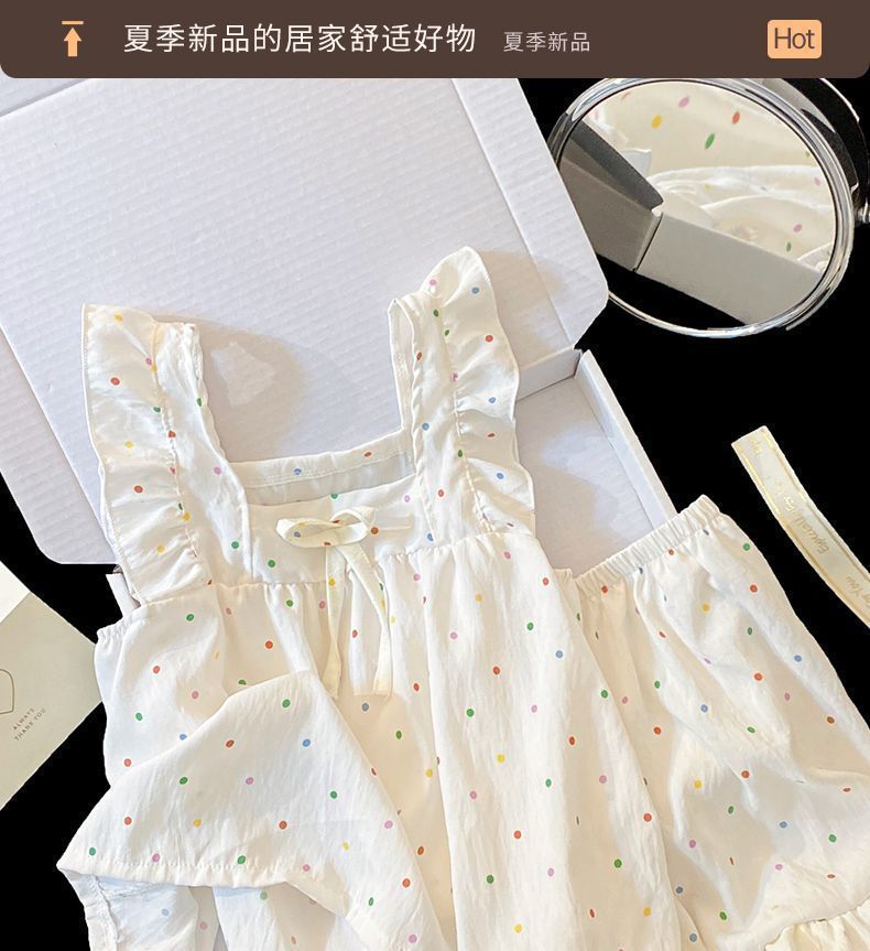 중형 및 대형 어린이 잠옷 여름 구름 면화 얇은 조끼 반바지 공주 스타일 어린 소녀 아기 가정 옷스토어 가기