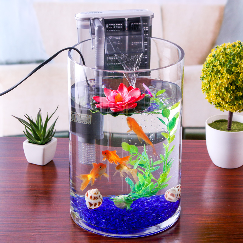 두꺼운 대형 유리 직선 물고기 탱크 원통형 투명 금붕어 탱크 사무실 데스크탑 홈 작은 원형 탱크