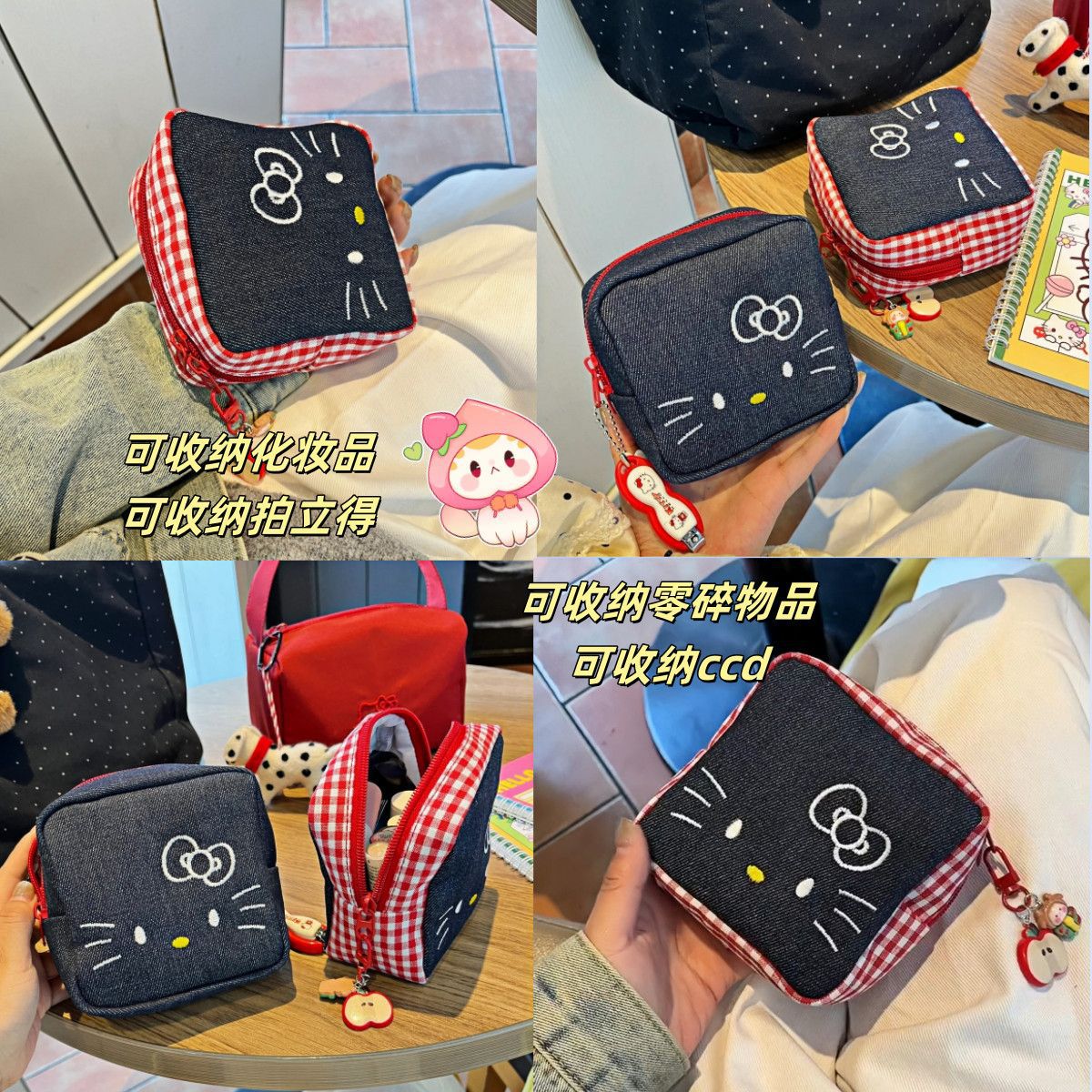 새로운 오리지널 자수 키티 작은 사각형 가방 화장품 가방 귀여운 만화 아줌마 냅킨 폴라로이드 카메라 보관 가방스토어 가기