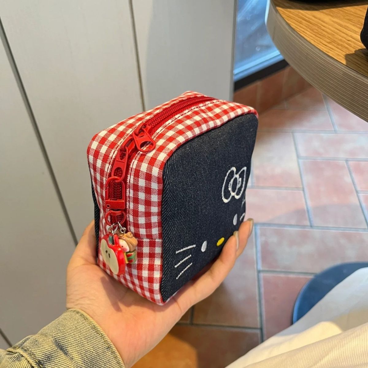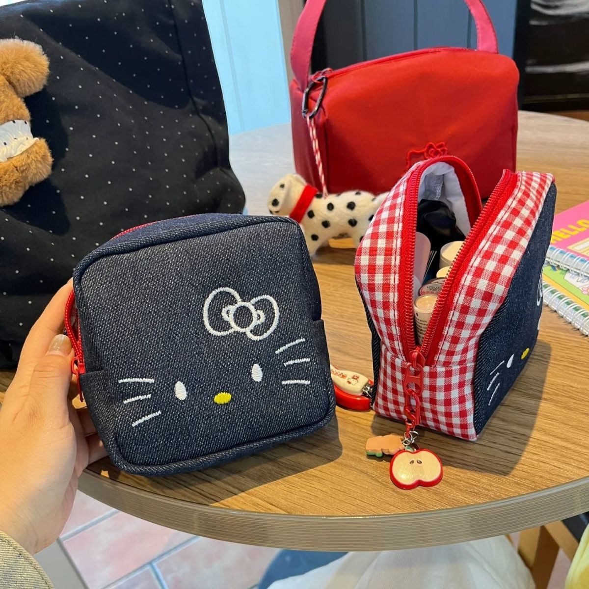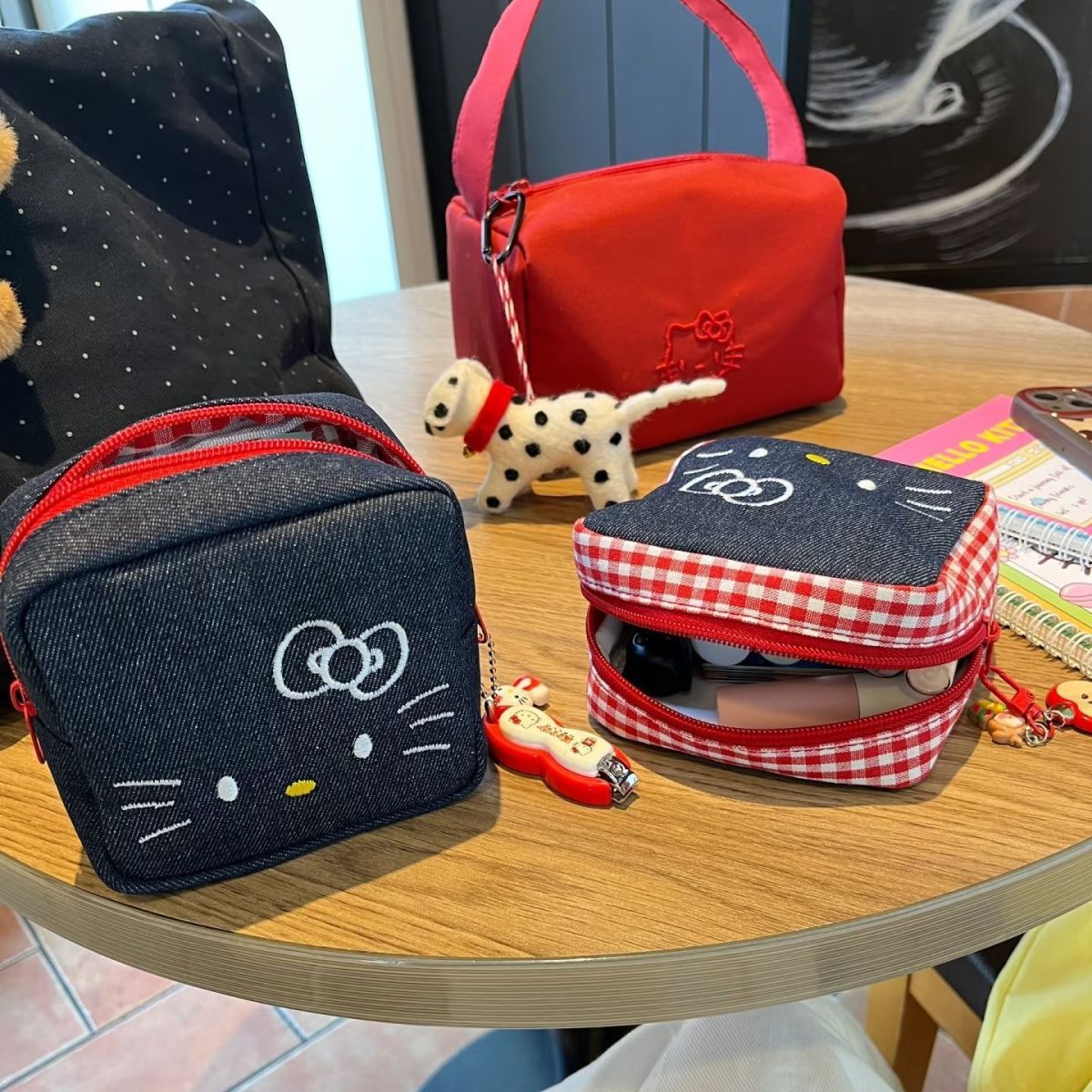 새로운 오리지널 자수 키티 작은 사각형 가방 화장품 가방 귀여운 만화 아줌마 냅킨 폴라로이드 카메라 보관 가방
