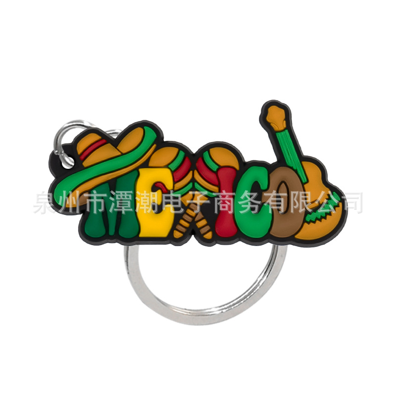 국경 간 뜨거운 판매 PVC 부드러운 고무 키 체인 멕시코 장식 학생 학교 가방 커플 자동차 키 쥬얼리 선물