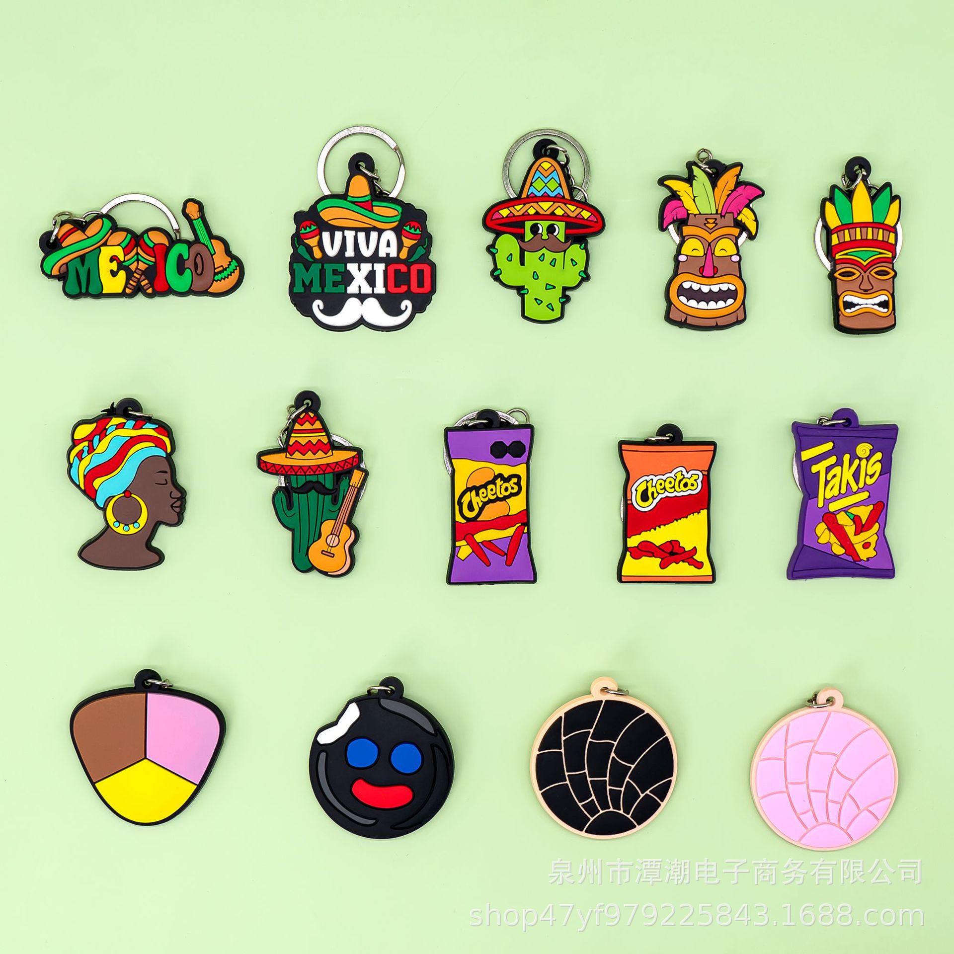 국경 간 뜨거운 판매 PVC 부드러운 고무 키 체인 멕시코 장식 학생 학교 가방 커플 자동차 키 쥬얼리 선물스토어 가기