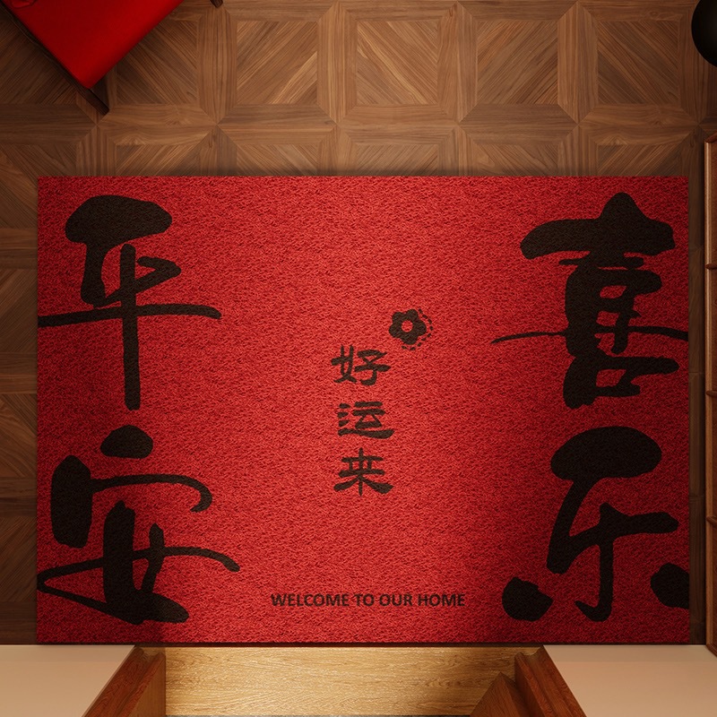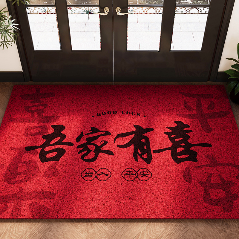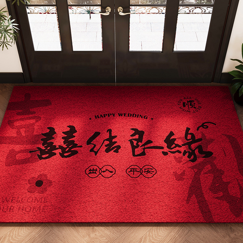 현관문 바닥매트, 축제 집들이 빨간색 문매트, 얼룩 방지 및 내마모성 와이어 링 바닥매트, 절단 가능한 현관문 먼지 제거 바닥매트