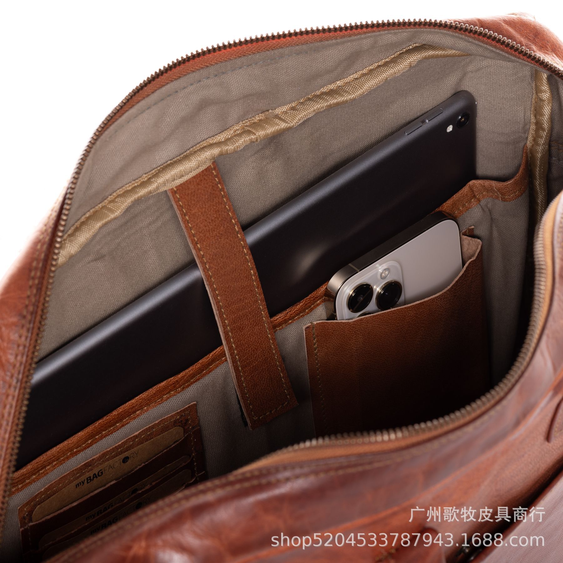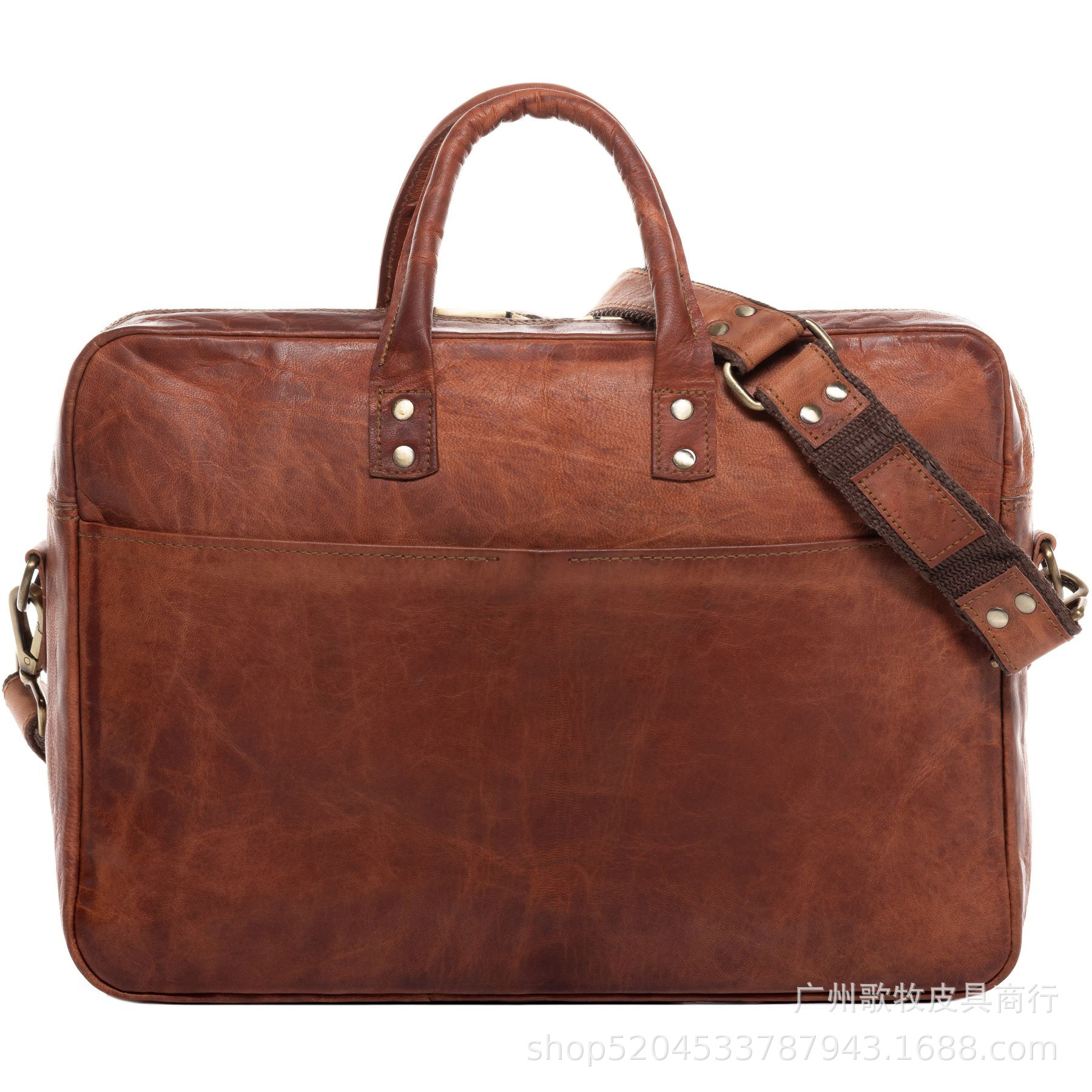 유럽과 미국의 오일 왁스 Crazy Horse 남성용 정품 가죽 노트북 가방 크로스 보더 레트로 숄더 대용량 15inch 컴퓨터 가방스토어 가기