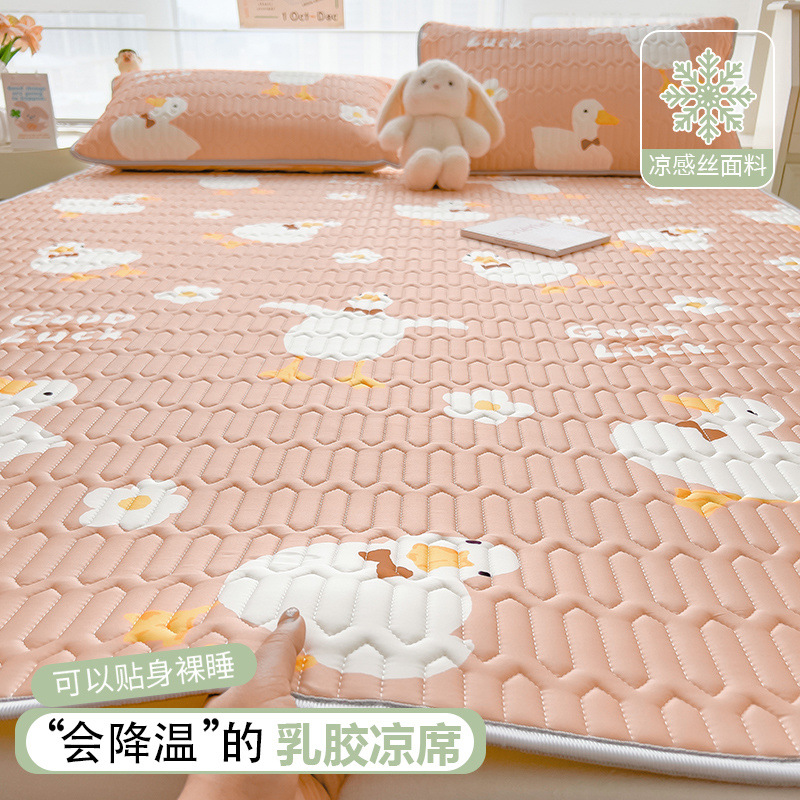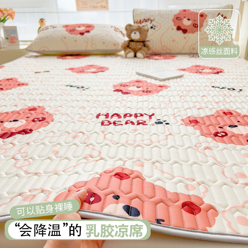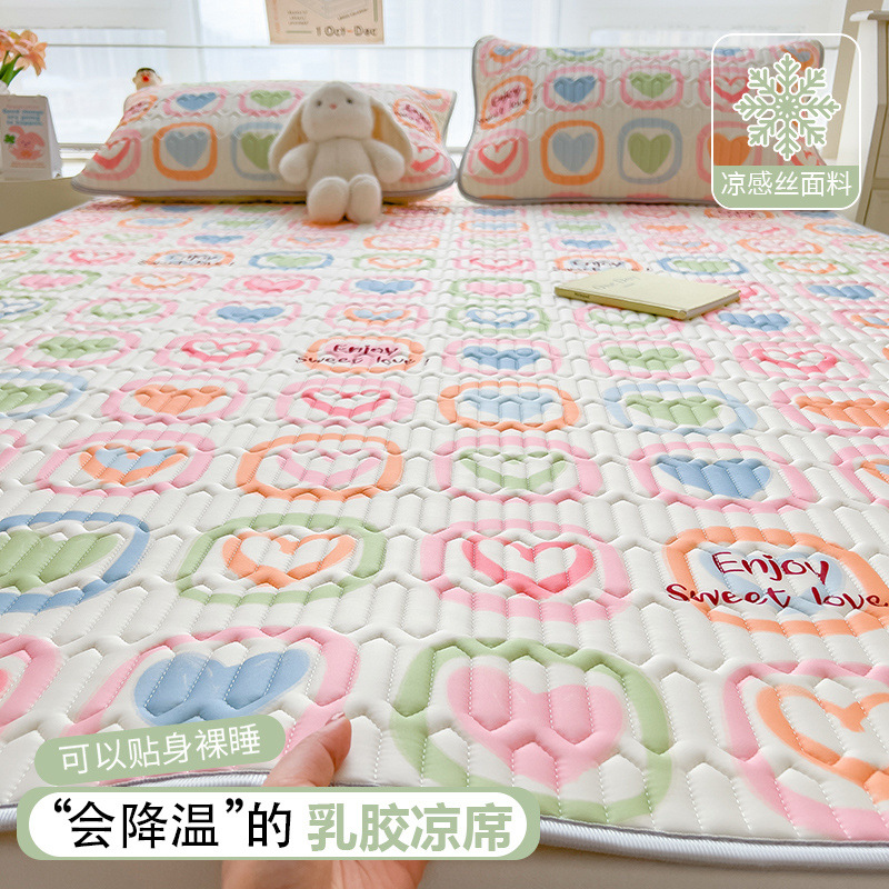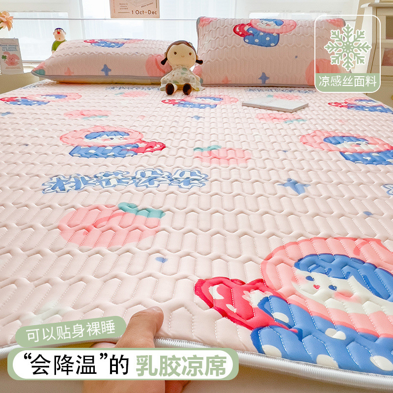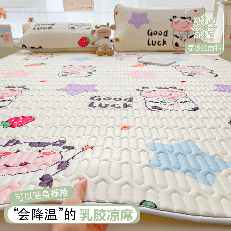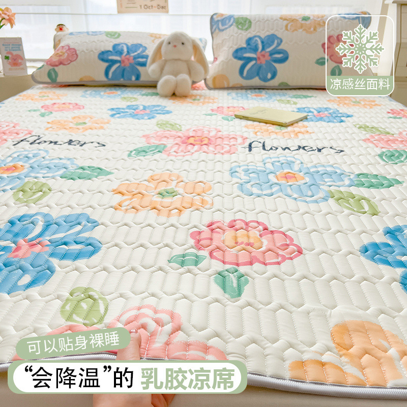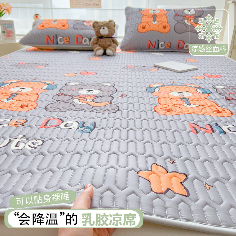 아이들을 위한 아이스 실크 라텍스 매트 3~4피스 세트, 세탁 가능한 침대 시트, 싱글 매트리스, 에어컨 매트, 여름용 가정용 에어컨 매트스토어 가기