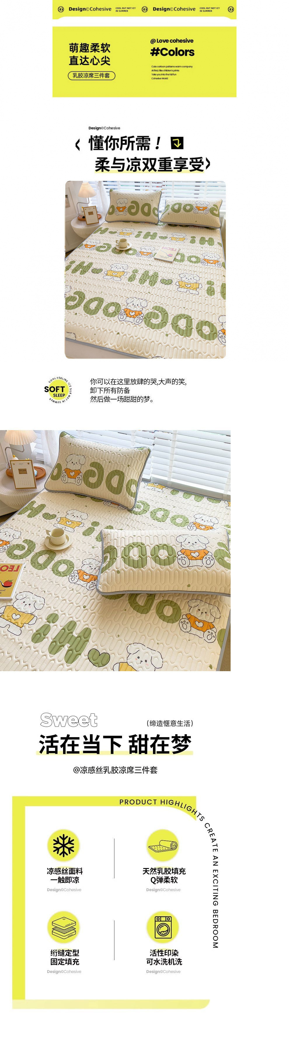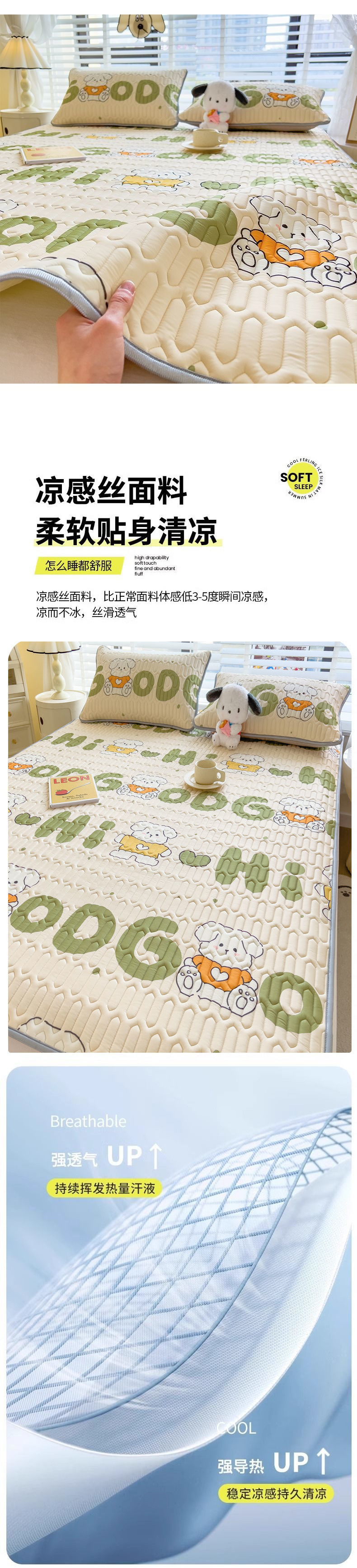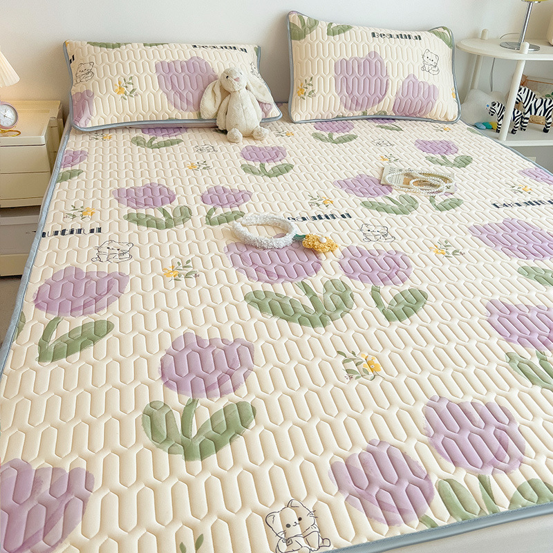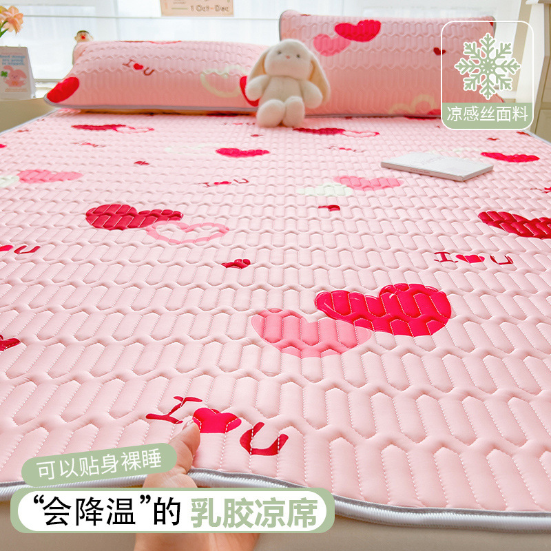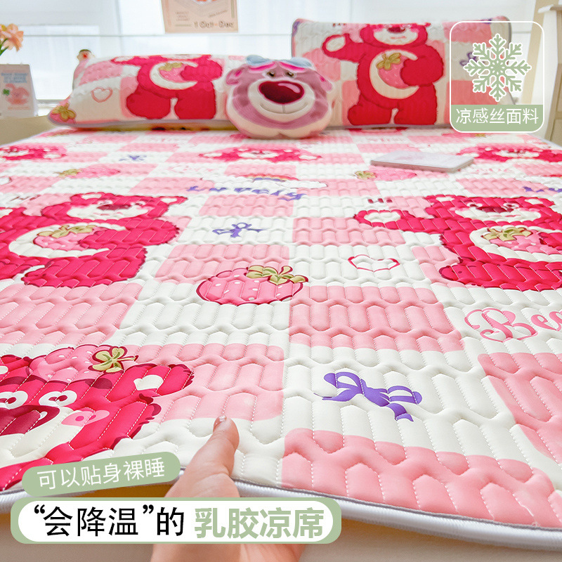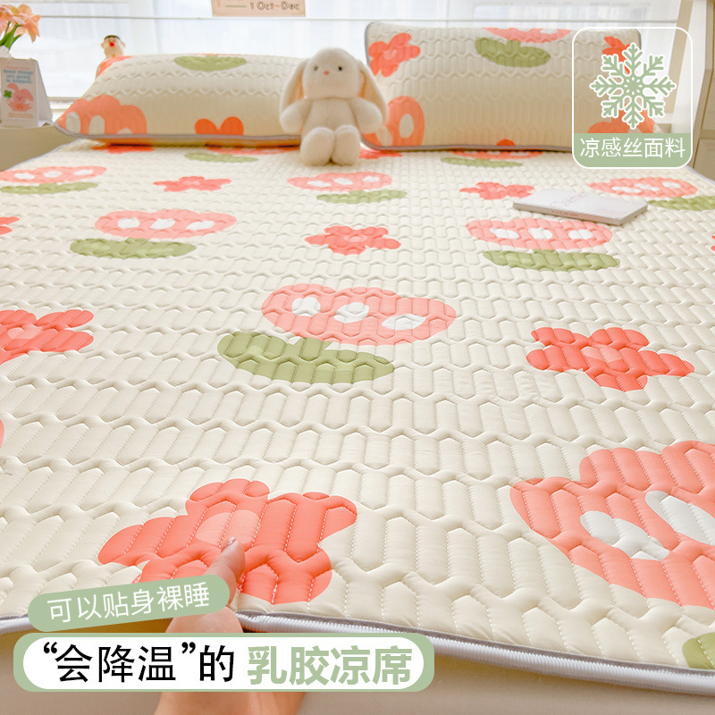 아이들을 위한 아이스 실크 라텍스 매트 3~4피스 세트, 세탁 가능한 침대 시트, 싱글 매트리스, 에어컨 매트, 여름용 가정용 에어컨 매트스토어 가기