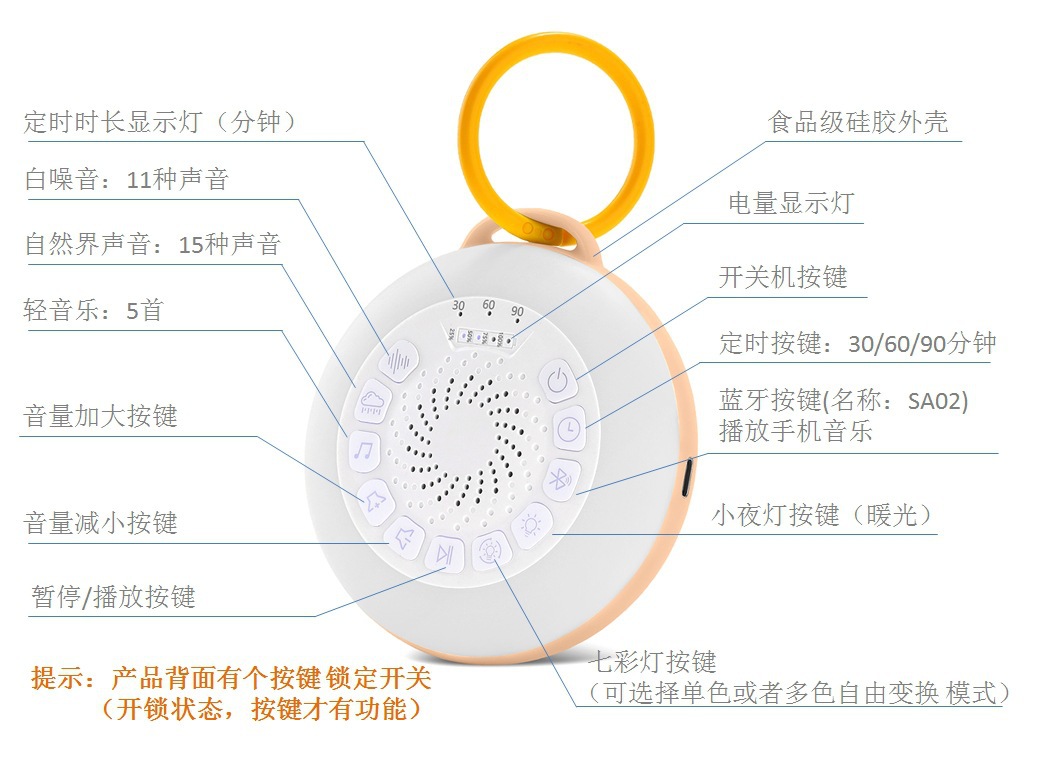 국경 간 소형 스피커, 백색 소음, 블루투스 스피커, 침실 침대 옆 스마트 분위기 요람, 자동차 야간 조명, 아기를 달래는 도구