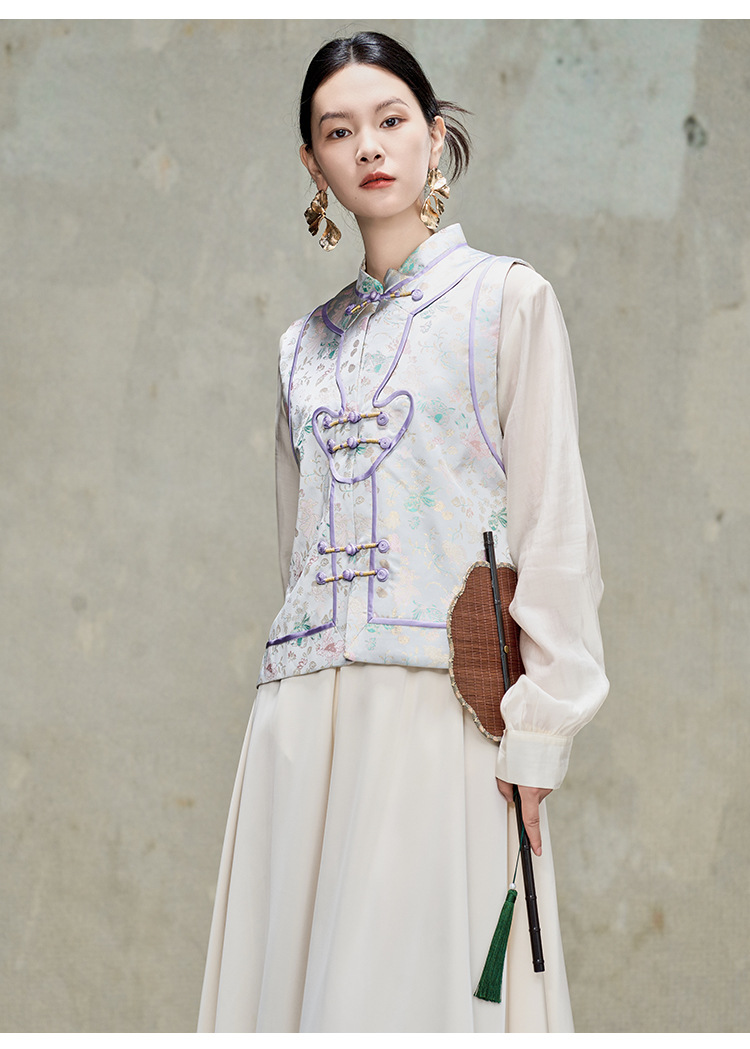 여성을위한 새로운 중국 스타일 실크 송 브로케이드 조끼 2025 새로운 멀 베리 실크 중국 스타일 개선 당나라 양복 조끼 탑스토어 가기
