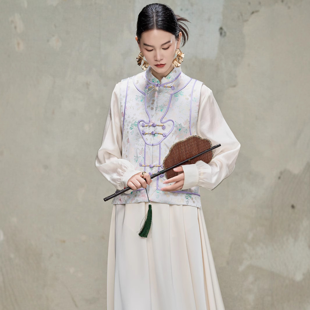 여성을위한 새로운 중국 스타일 실크 송 브로케이드 조끼 2025 새로운 멀 베리 실크 중국 스타일 개선 당나라 양복 조끼 탑