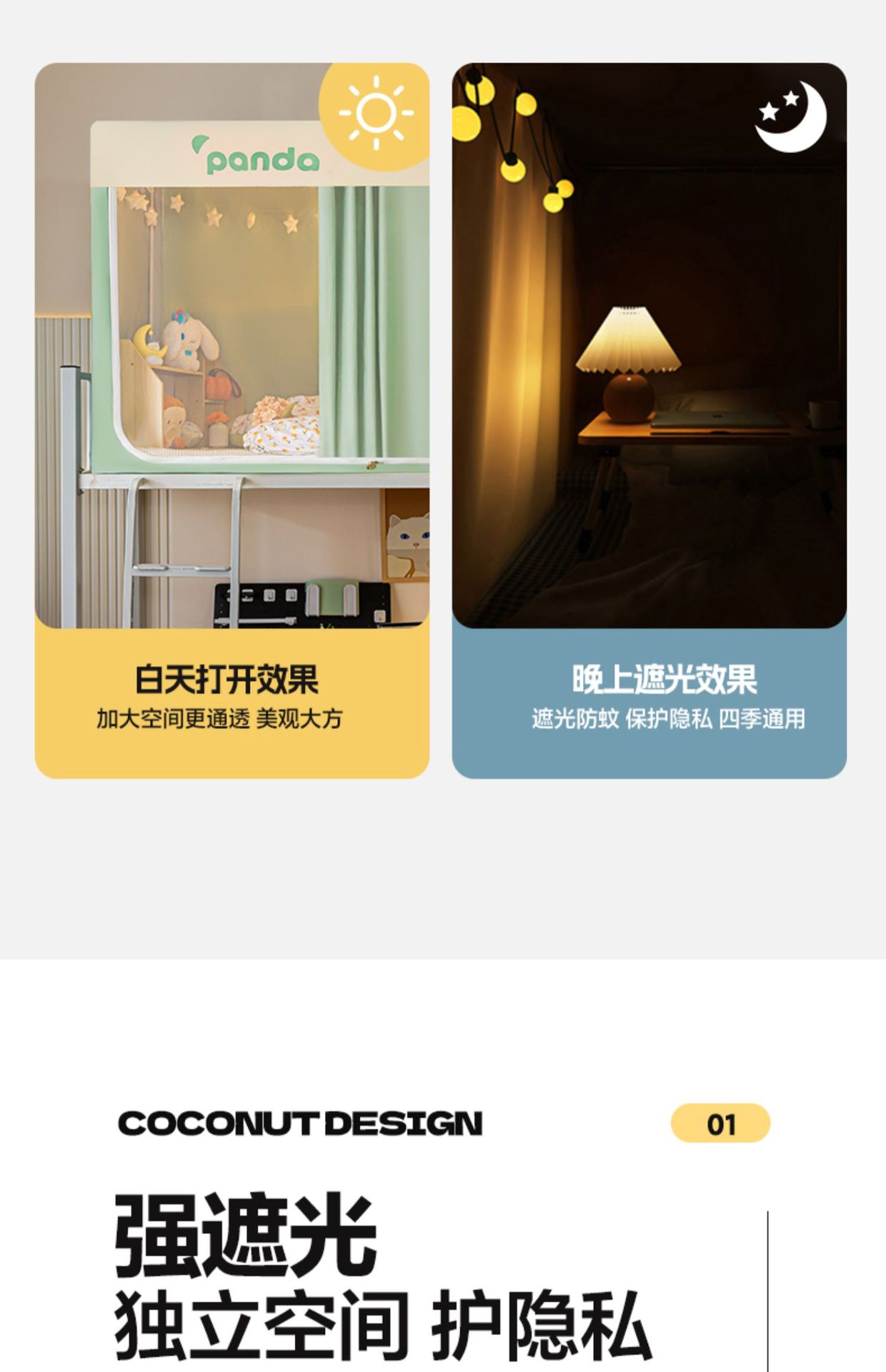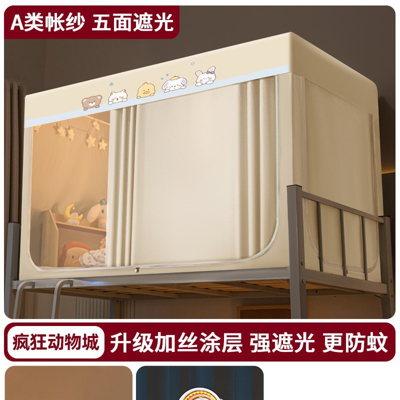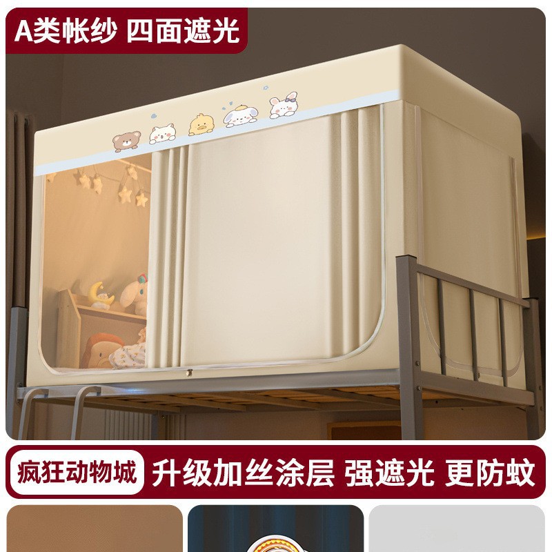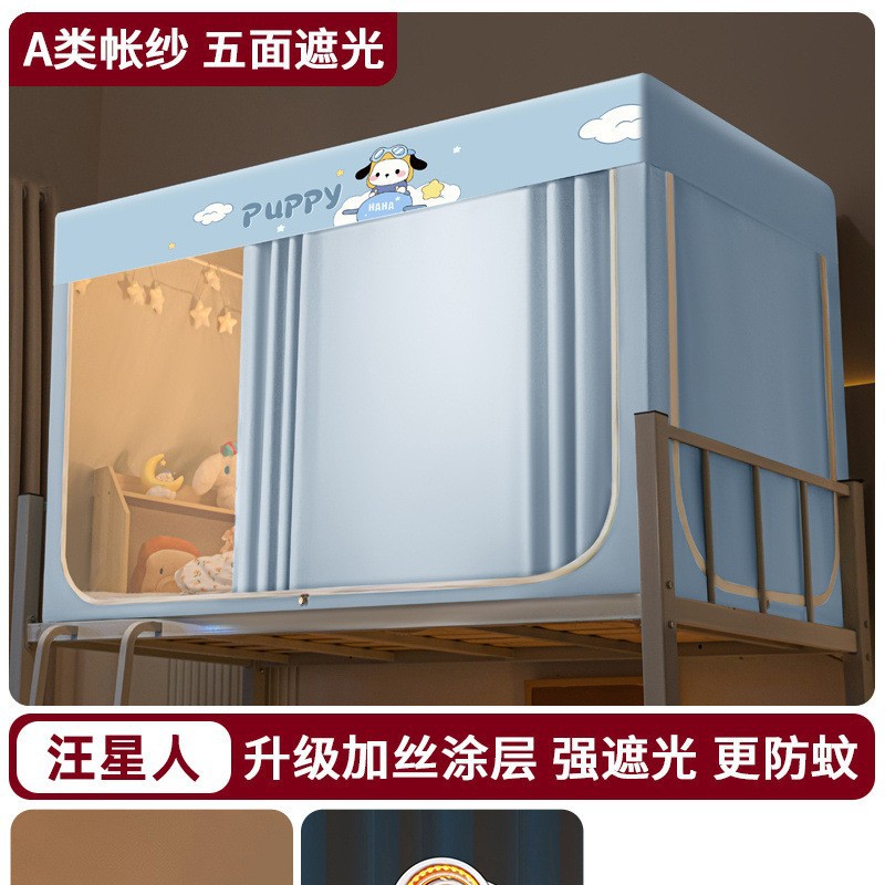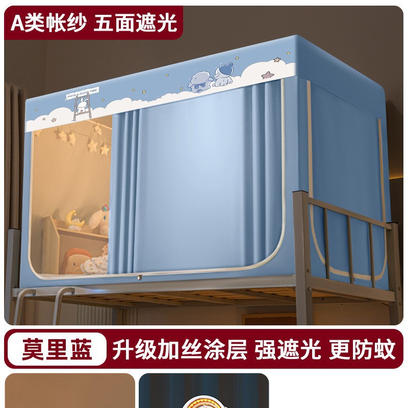 강력한 차광 학생 기숙사 모기장 및 침대 커튼 일체형 싱글 침대 및 이층 침대 설치가 필요 없는 풀 커버리지 기숙사 침대 커튼스토어 가기