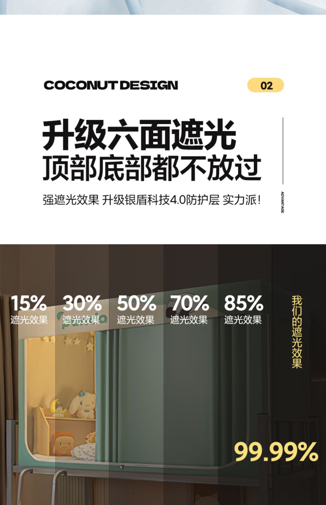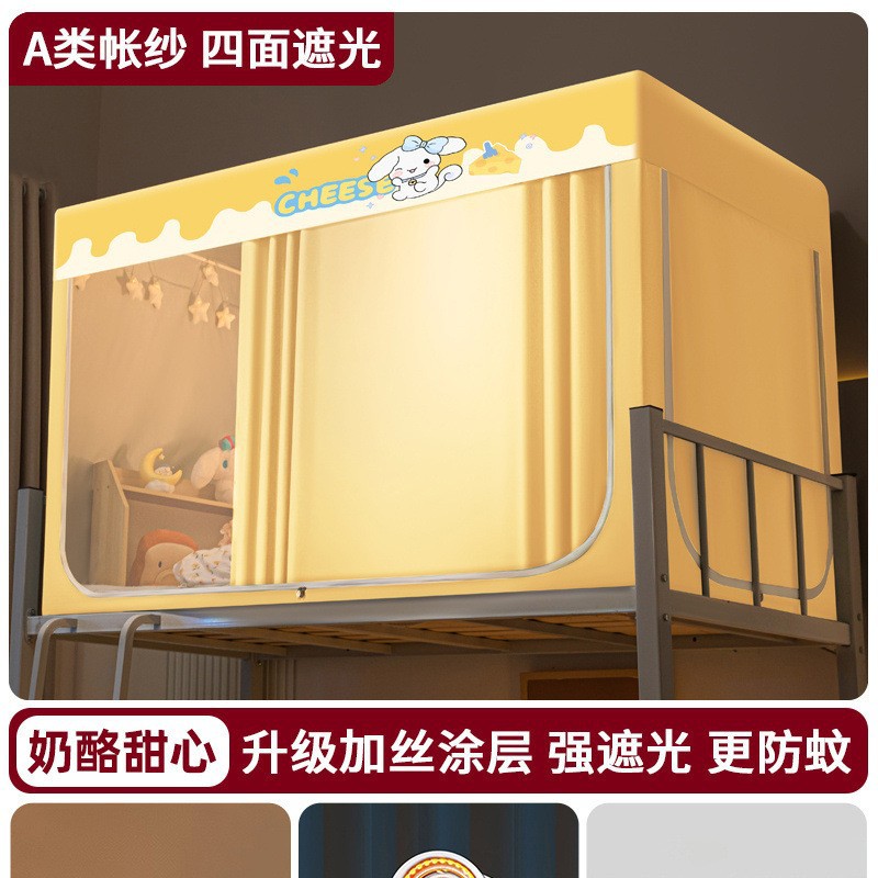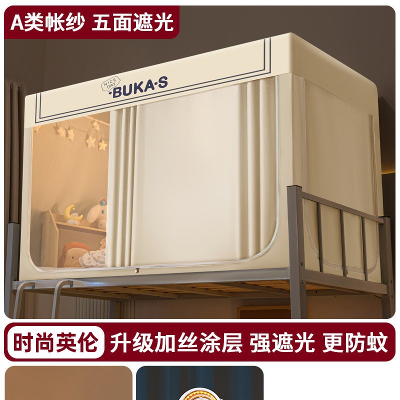 강력한 차광 학생 기숙사 모기장 및 침대 커튼 일체형 싱글 침대 및 이층 침대 설치가 필요 없는 풀 커버리지 기숙사 침대 커튼
