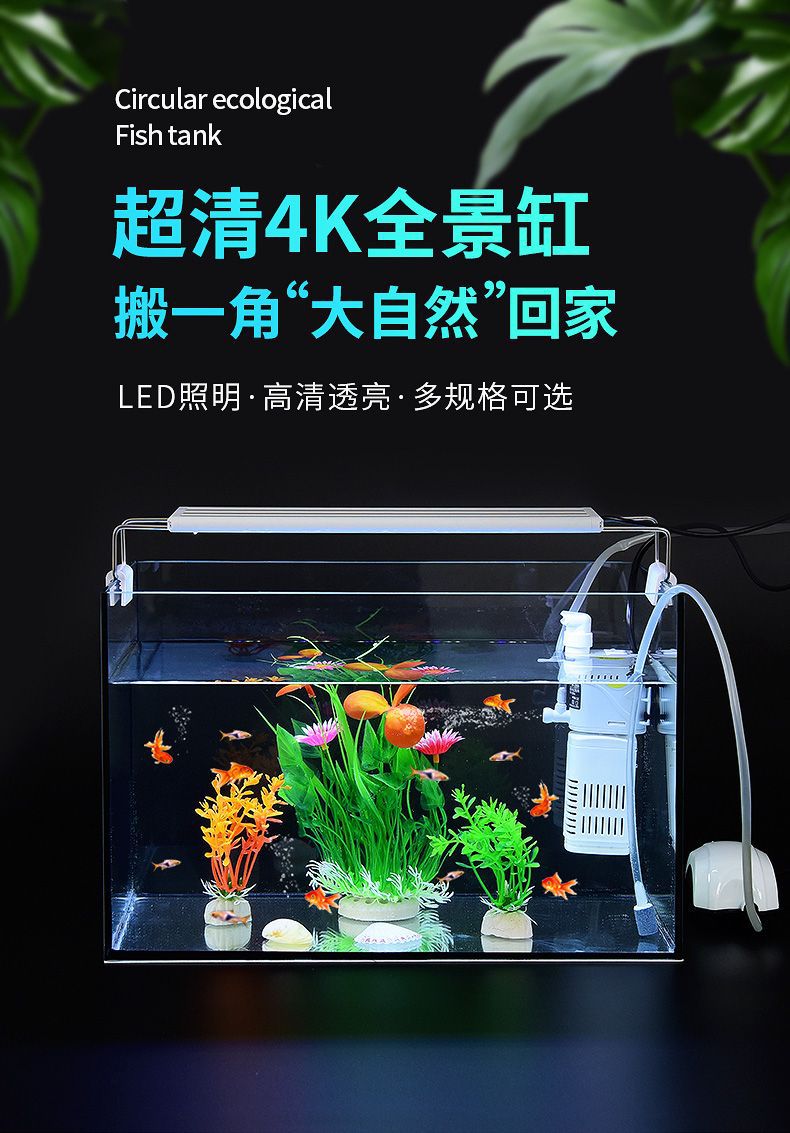 물고기 탱크 투명 직각 중소형 거실 발코니 데스크탑 자체 순환 가정용 조경 생태 수족관스토어 가기