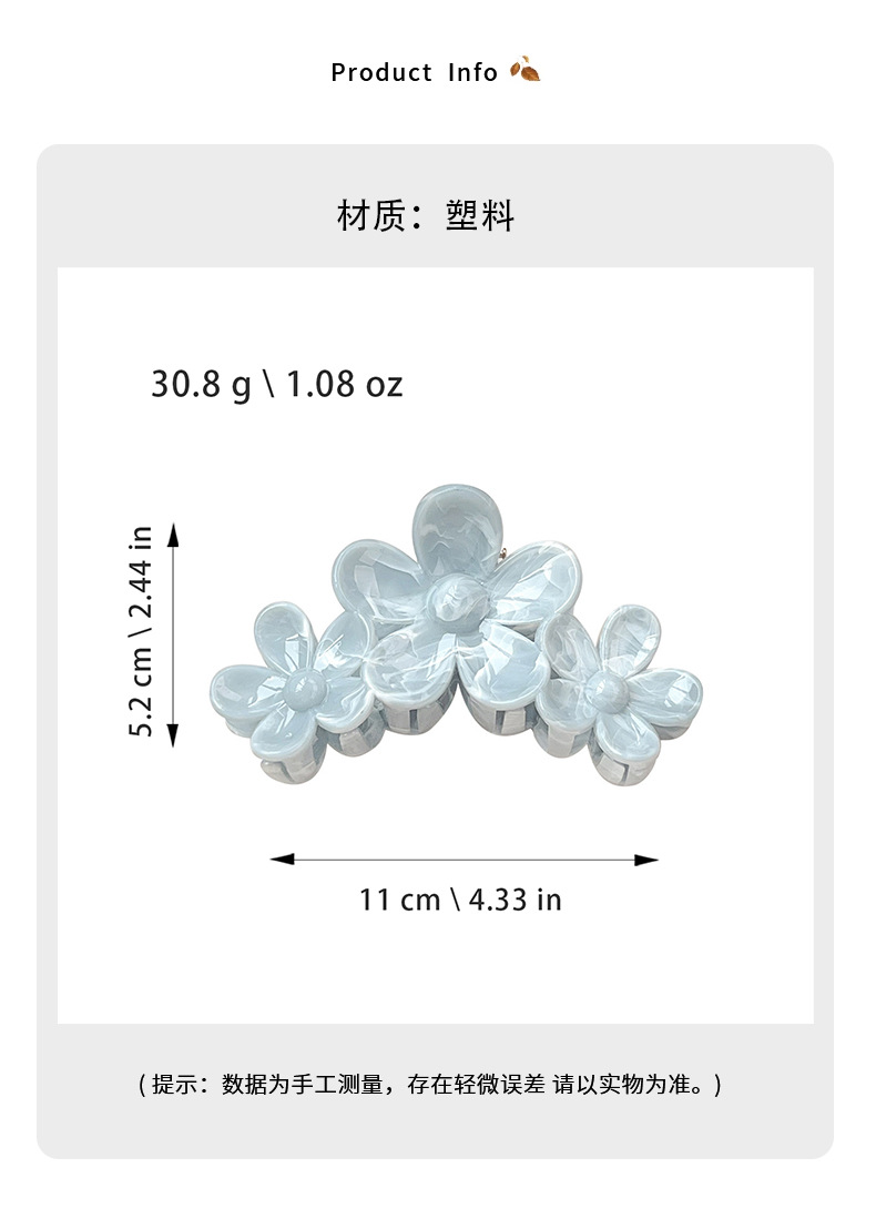 뒷머리용 신선한 꽃 집게, 얼룩진 대형 집게, 고급 헤어 액세서리, 새로운 여성용 상어 집게