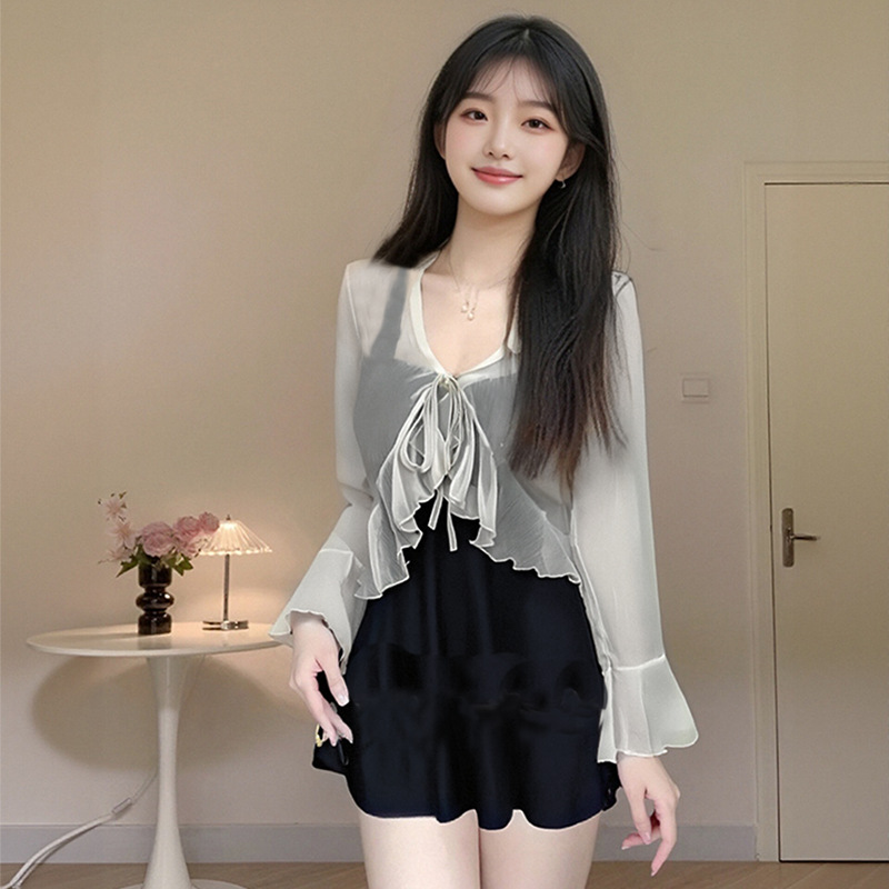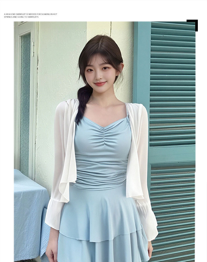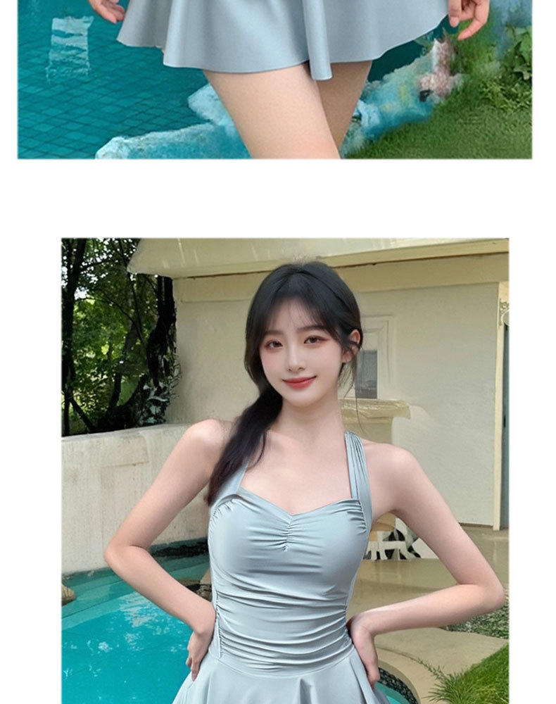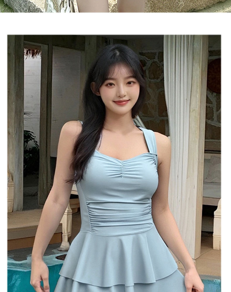 여성용 수영복 2025 새로운 순수한 욕망 스타일 배꼽 커버 백리스 원피스 스커트 스타일 온천 휴가 수영복 도매스토어 가기