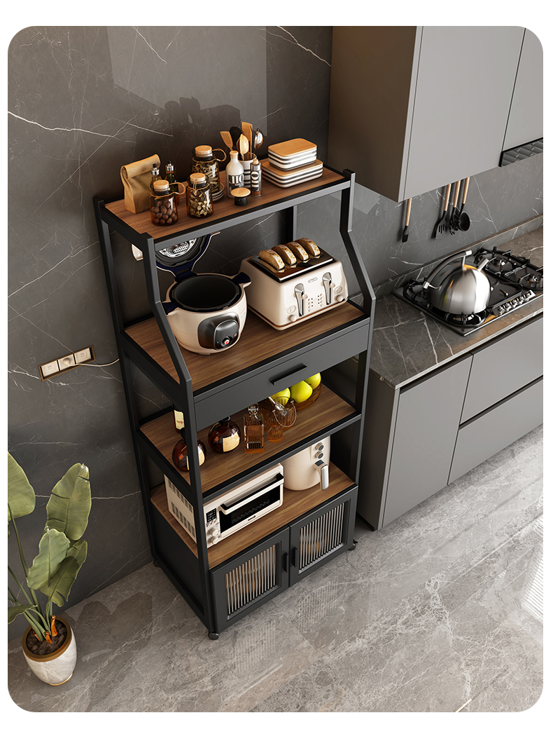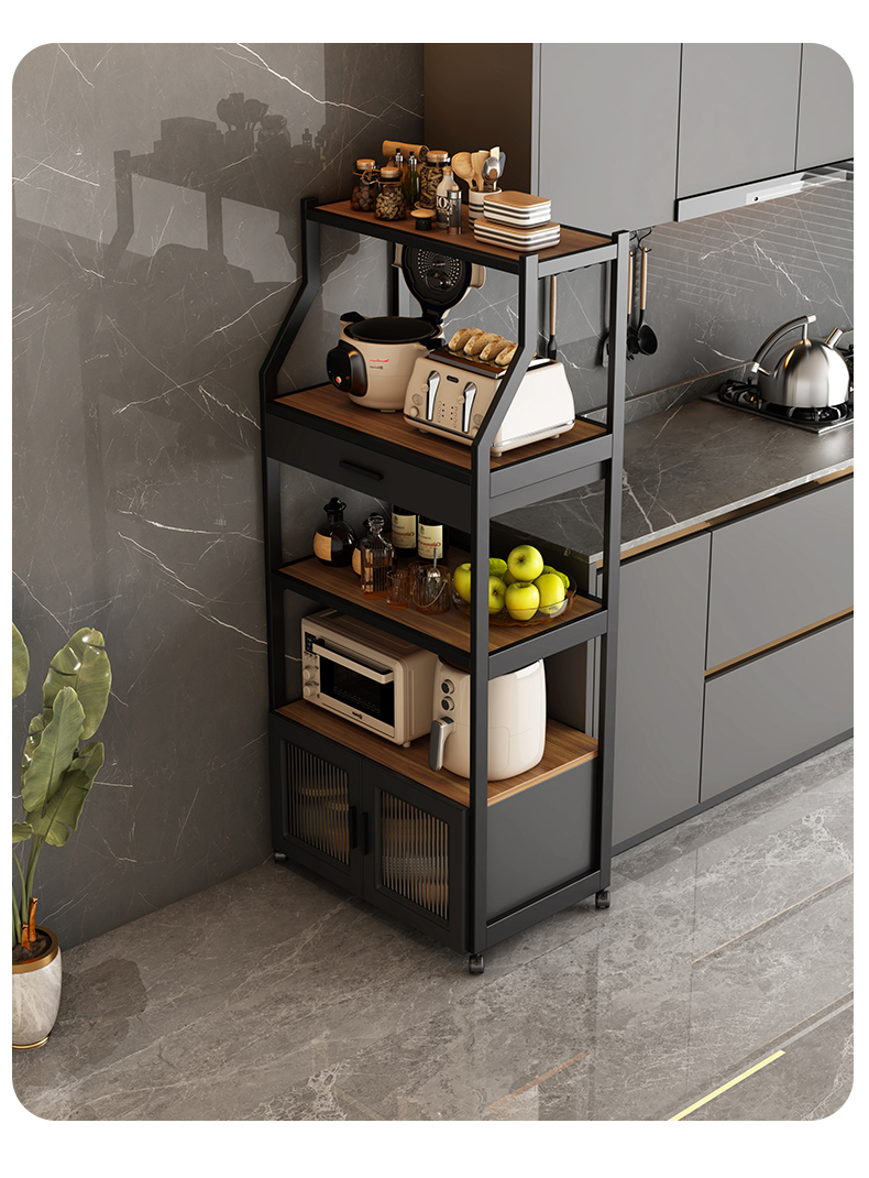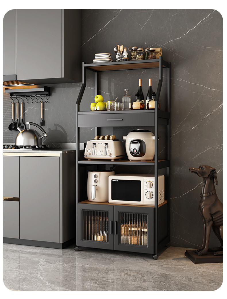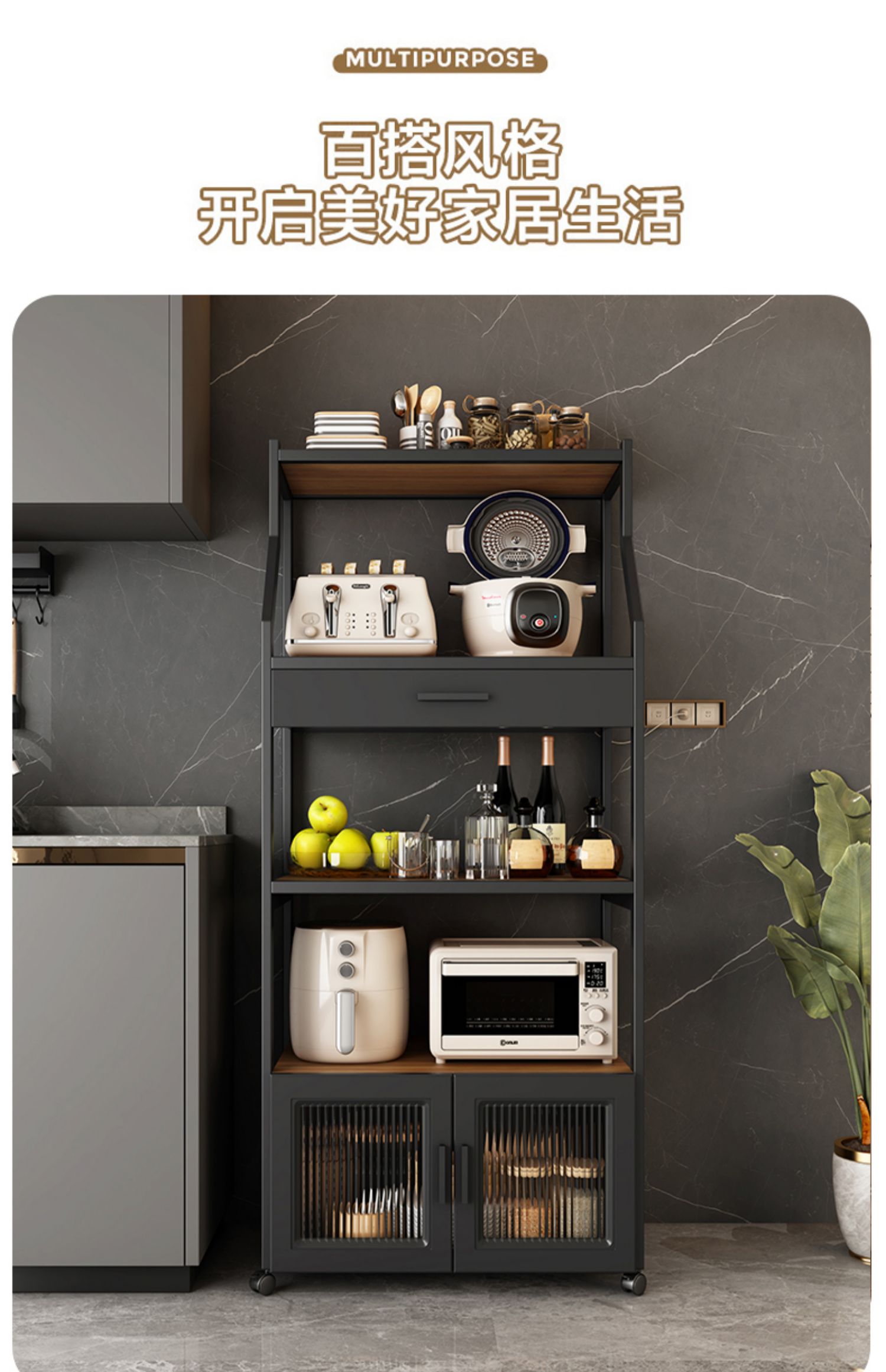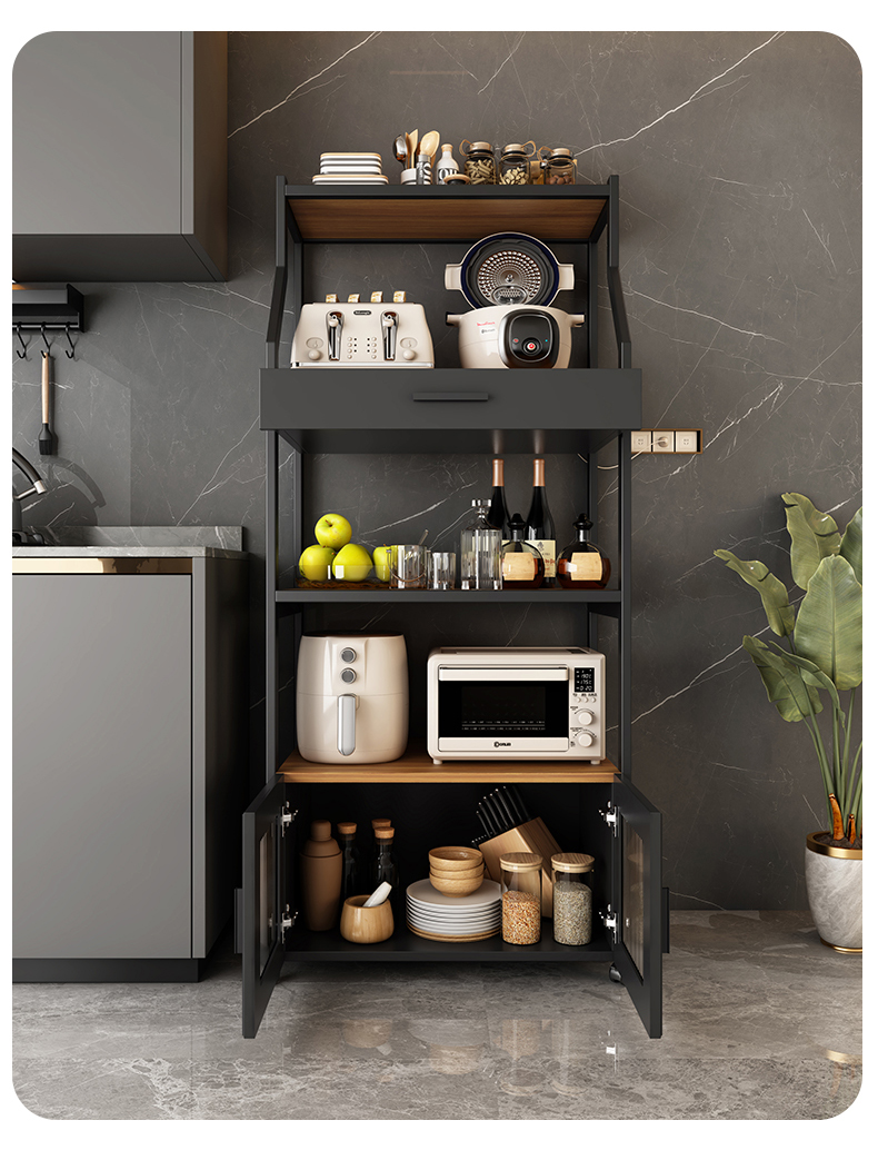 문이 달린 주방 선반, 바닥에서 천장까지 이어지는 다층 오븐, 전자레인지, 냄비, 전기 제품, 다기능 수납 캐비닛스토어 가기