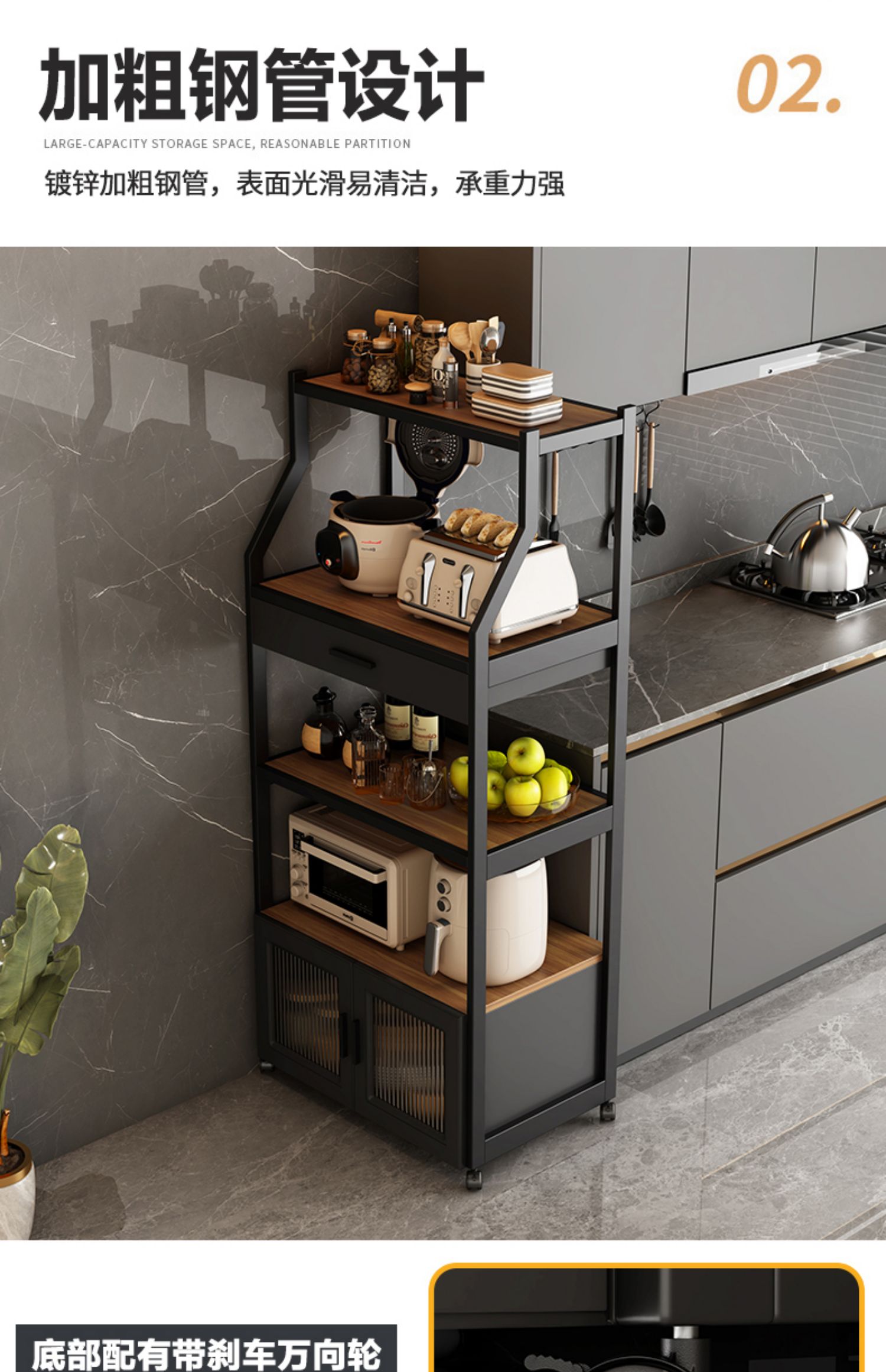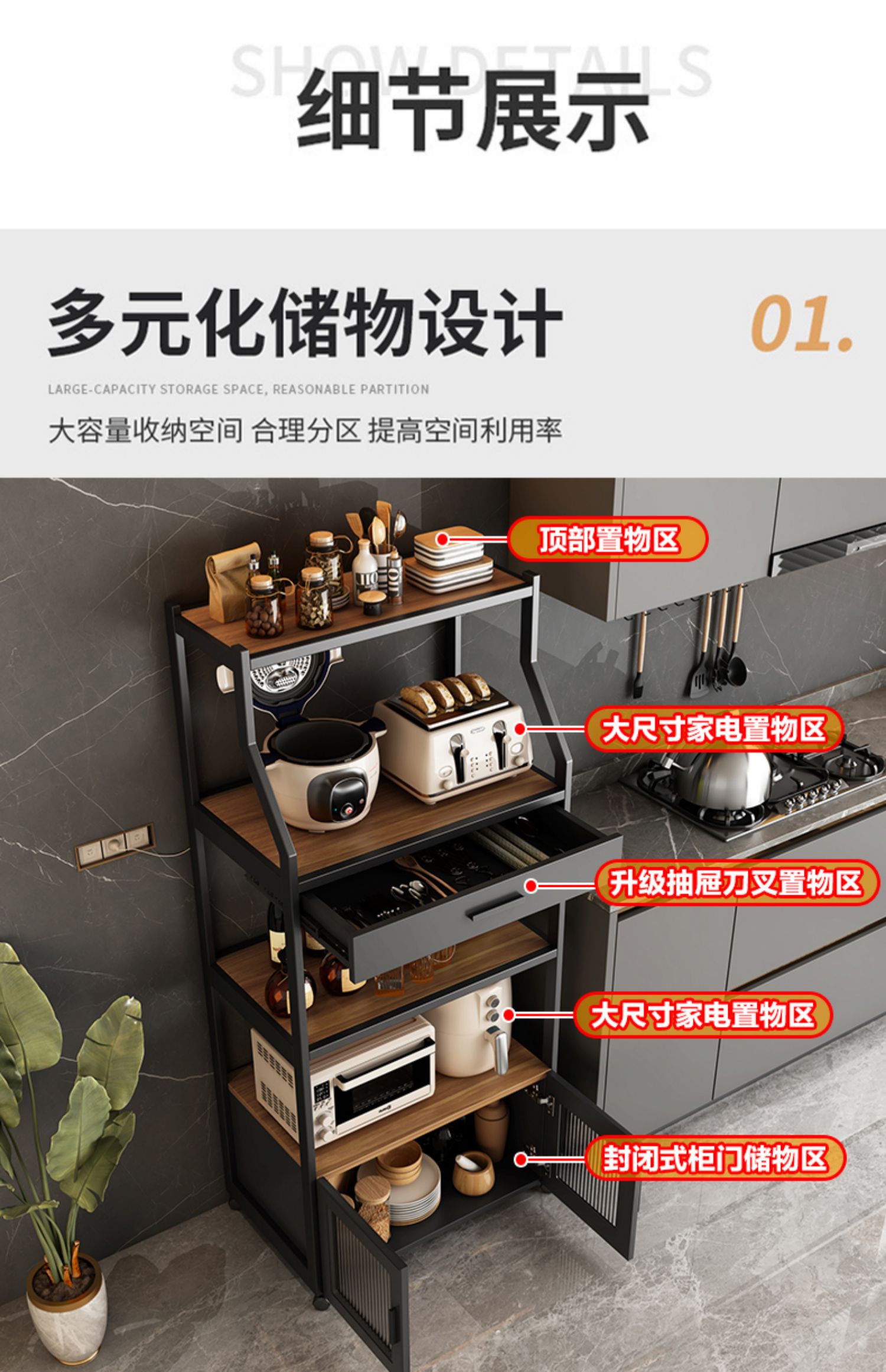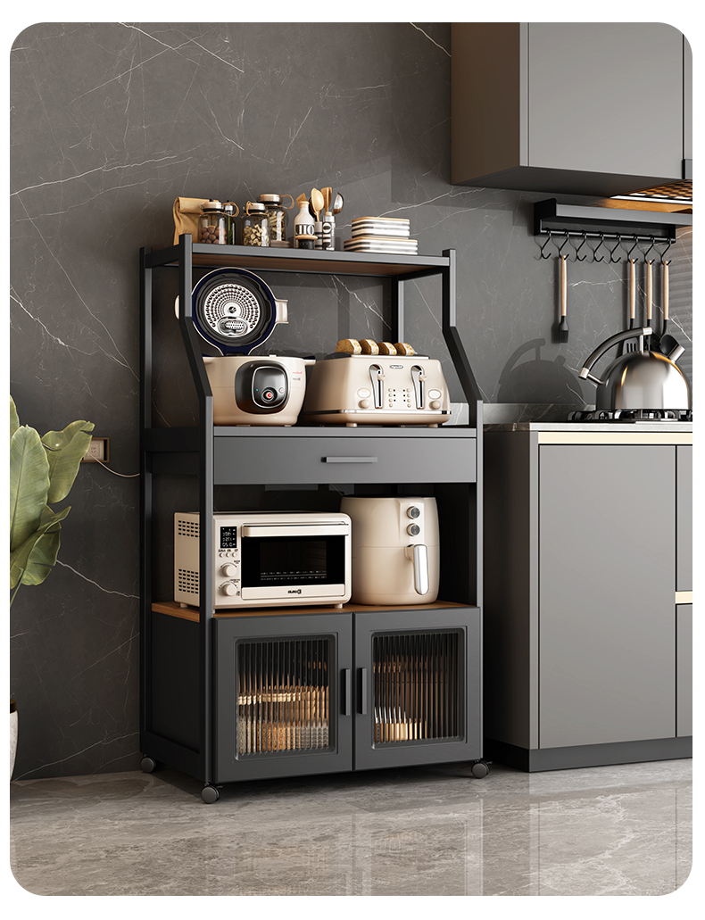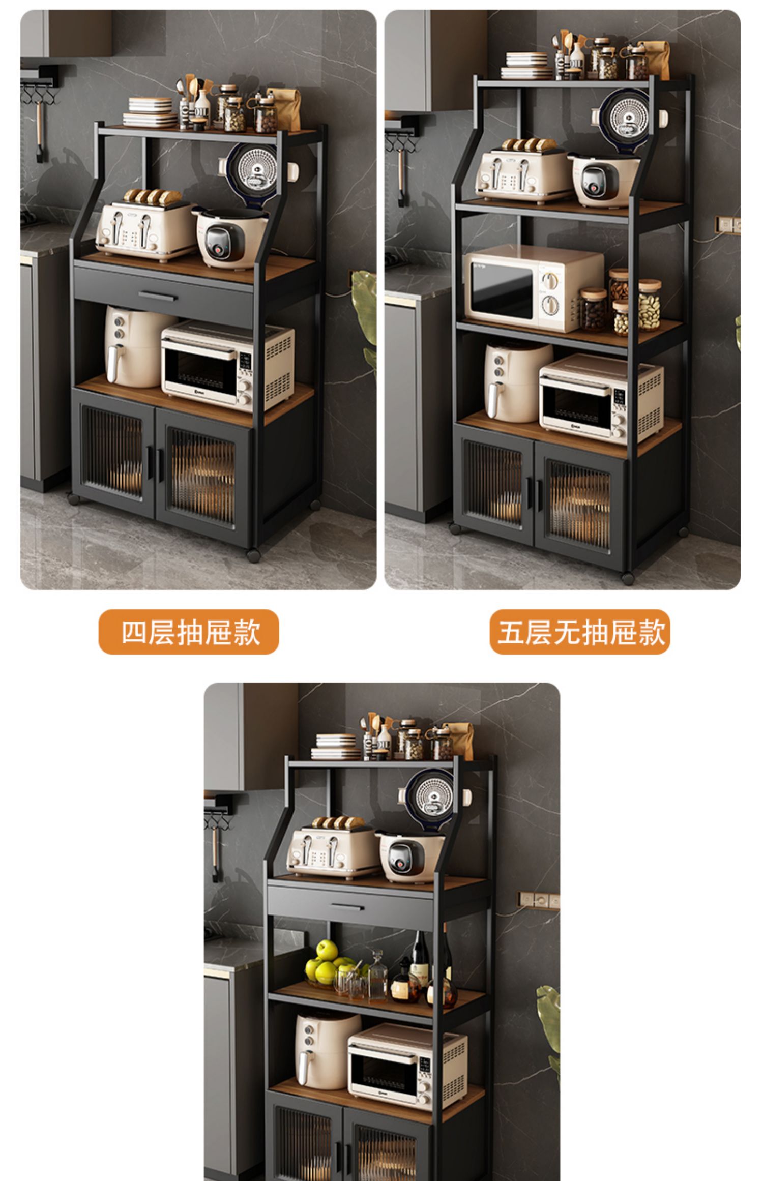 문이 달린 주방 선반, 바닥에서 천장까지 이어지는 다층 오븐, 전자레인지, 냄비, 전기 제품, 다기능 수납 캐비닛스토어 가기