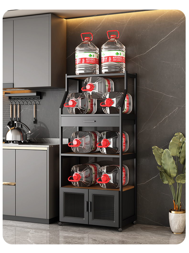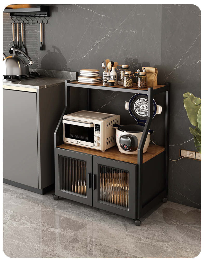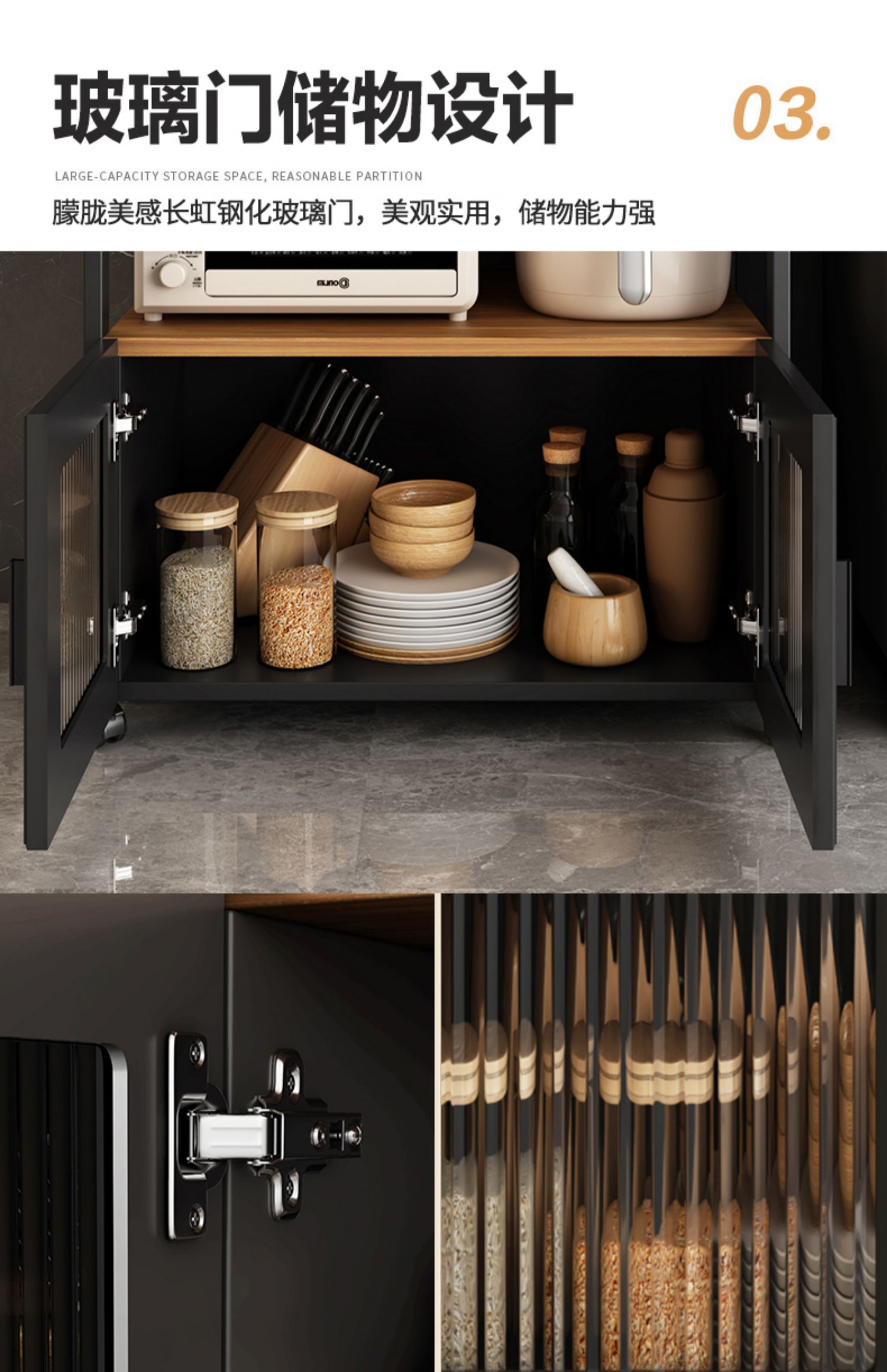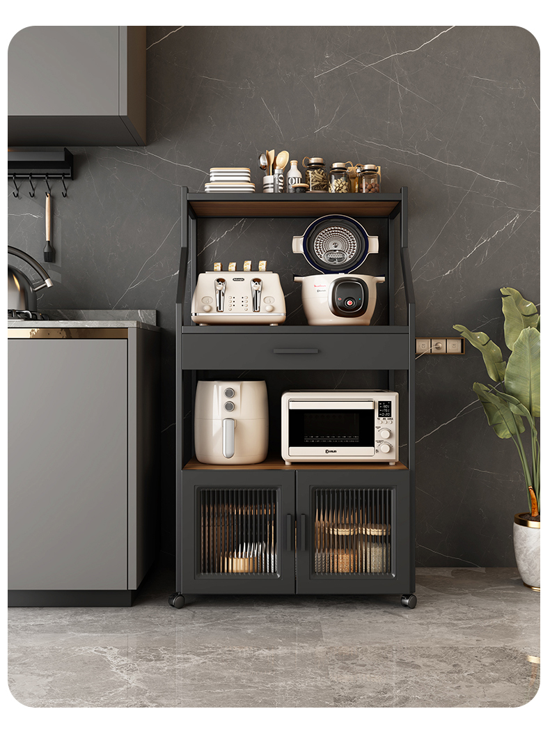 문이 달린 주방 선반, 바닥에서 천장까지 이어지는 다층 오븐, 전자레인지, 냄비, 전기 제품, 다기능 수납 캐비닛스토어 가기